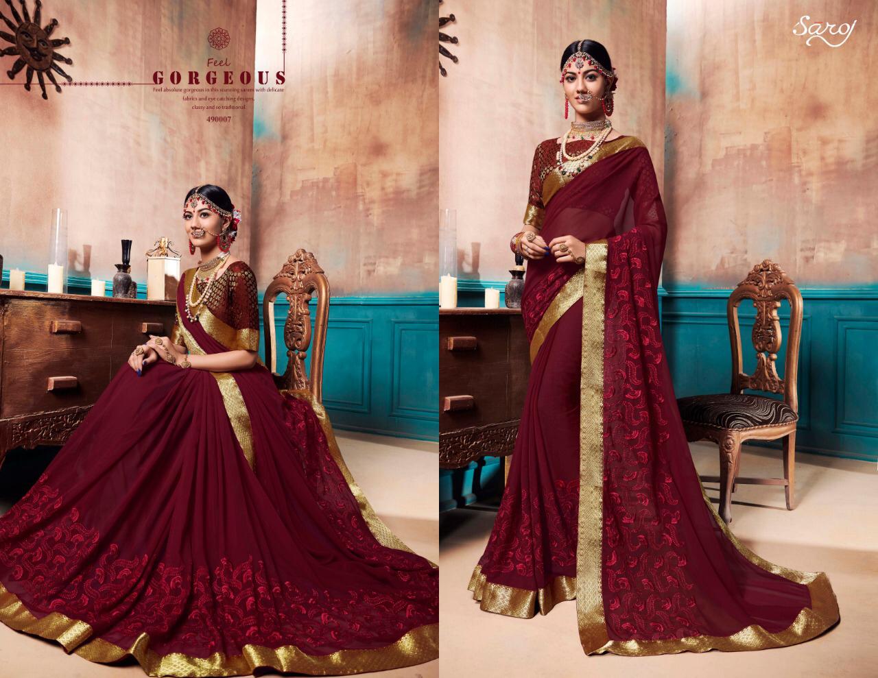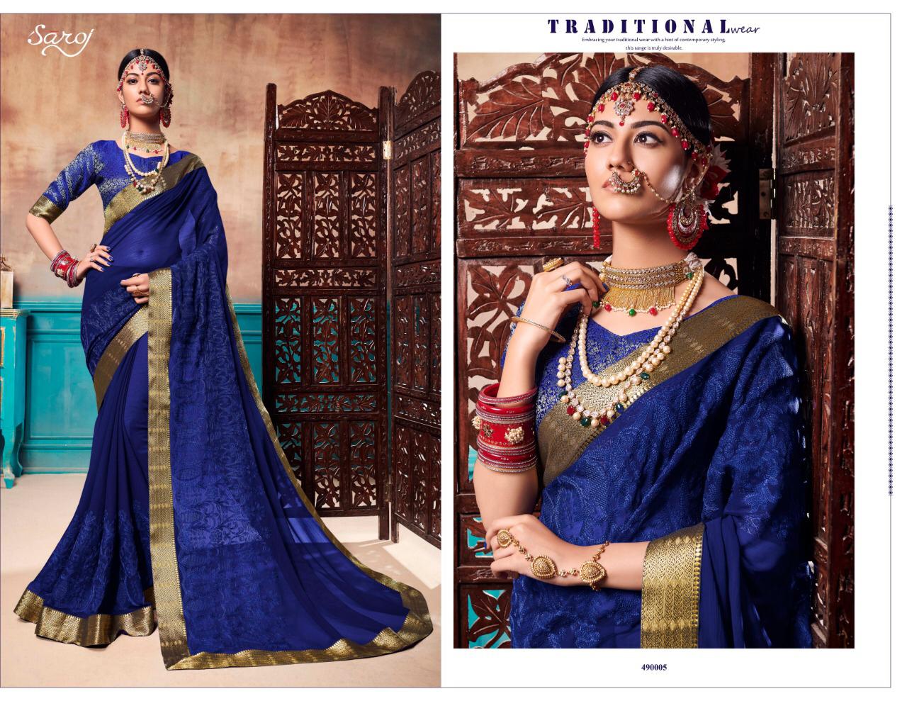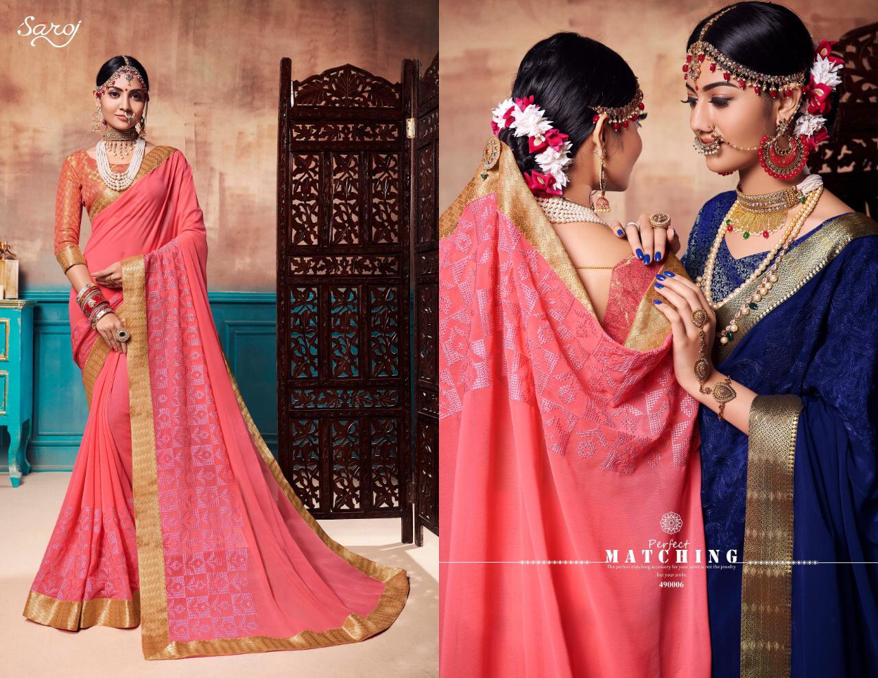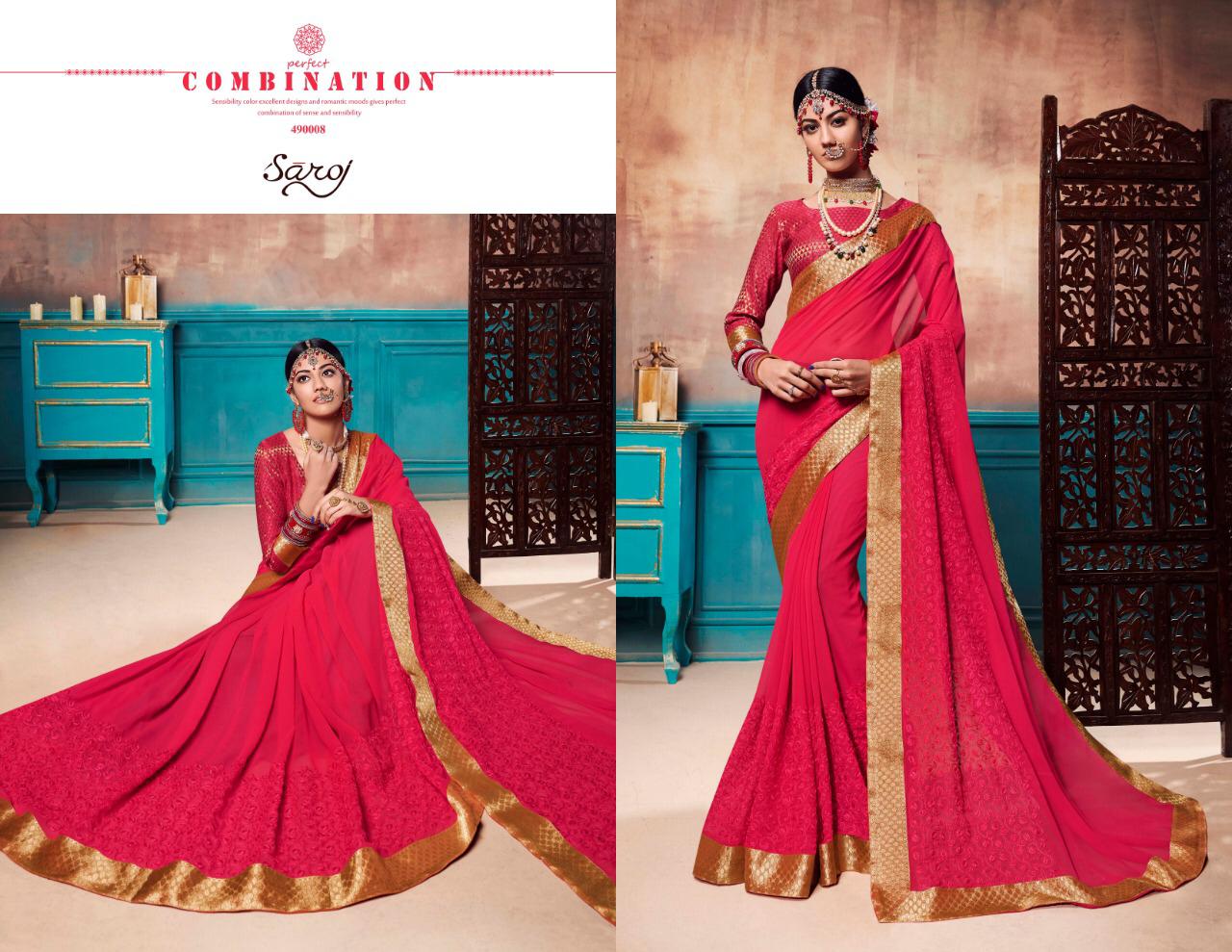 Buy Online Sunshine By Saroj 490001 Series Fancy Chiffon Emb Saree Collection Wholesaler Surat 8 Pcs of Full Catalogue at Wholesale Price. Looking for Sunshine By Saroj 490001 Series Fancy Chiffon Emb Saree Collection Wholesaler Surat Full Catalouge at Best Price? Buy Now Sunshine By Saroj 490001 Series Fancy Chiffon Emb Saree Collection Wholesaler Surat at Wholesale Rate of Rs 7880 with Total 8 Pcs from authroized dealer and supplier of SAROJ SAREE Brand. Cost of Each piece is just only Rs 985 which is very low and affordable price to resale the product in your retail store ,This is Surat based Wholesale Supplier & Dealer of SAROJ SAREE Brand. Click on Brand name to Know more about SAROJ SAREE Brand's products.Call or Whatsapp on 9898838984 for booking or enquiry