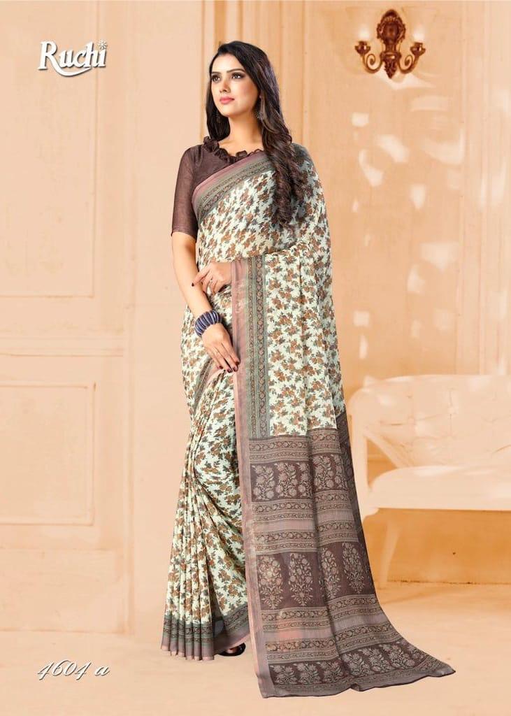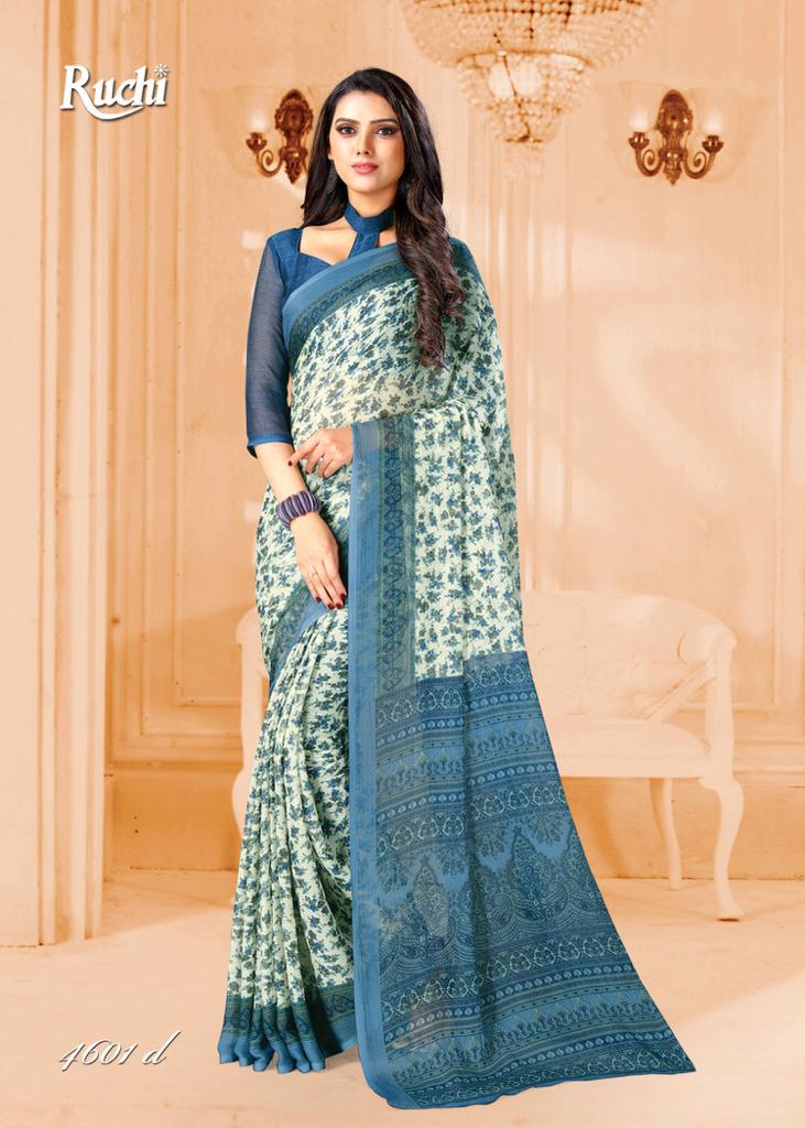 Buy Online Super Kesar Chiffon 46th Edition By Ruchi Saree Manufacturer Traders Surat 20 Pcs of Full Catalogue at Wholesale Price. Looking for Super Kesar Chiffon 46th Edition By Ruchi Saree Manufacturer Traders Surat Full Catalouge at Best Price? Buy Now Super Kesar Chiffon 46th Edition By Ruchi Saree Manufacturer Traders Surat at Wholesale Rate of Rs 7600 with Total 20 Pcs from authroized dealer and supplier of RUCHI SAREE Brand. Cost of Each piece is just only Rs 380 which is very low and affordable price to resale the product in your retail store ,This is Surat based Wholesale Supplier & Dealer of RUCHI SAREE Brand. Click on Brand name to Know more about RUCHI SAREE Brand's products.Call or Whatsapp on 9898838984 for booking or enquiry