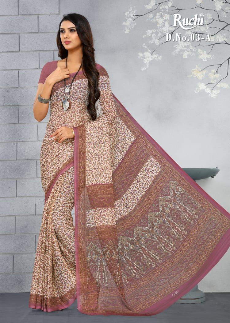Super Kesar Chiffon Uniform 1 By Ruchi Chiffon Fancy Printed Saree Catlog Wholesale Dealer Surat