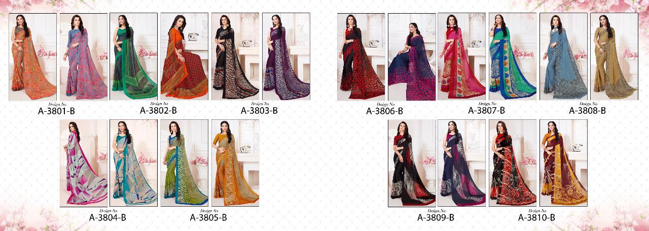 RUCHI SAREES 1) ITEM NAME: SUPER KESAR CHIFFON VOL 38 2)NO.PCS - 20 3) SETWISE PACKING Rate -370 per pcs . Set to set. GST 5 Percent Extra. Delivery 2 days |