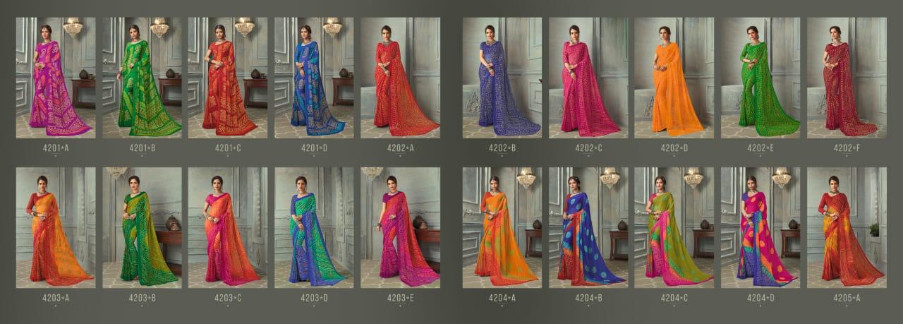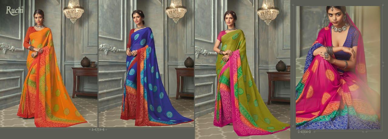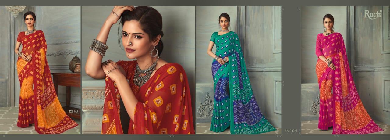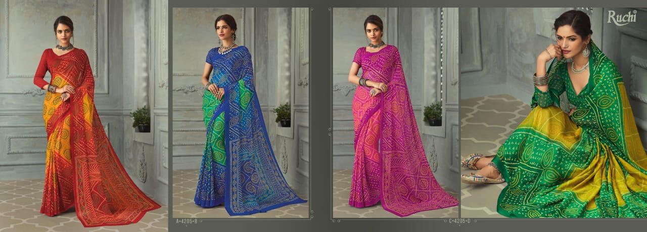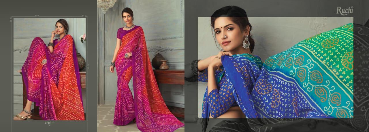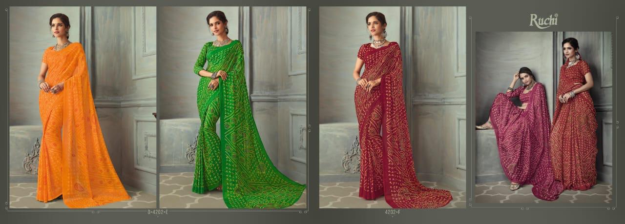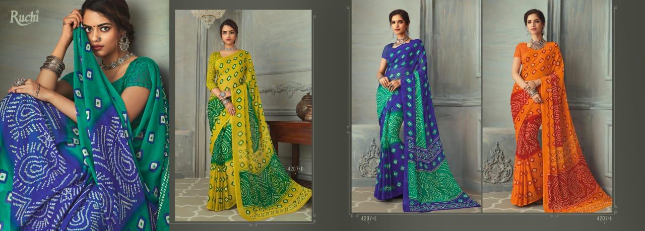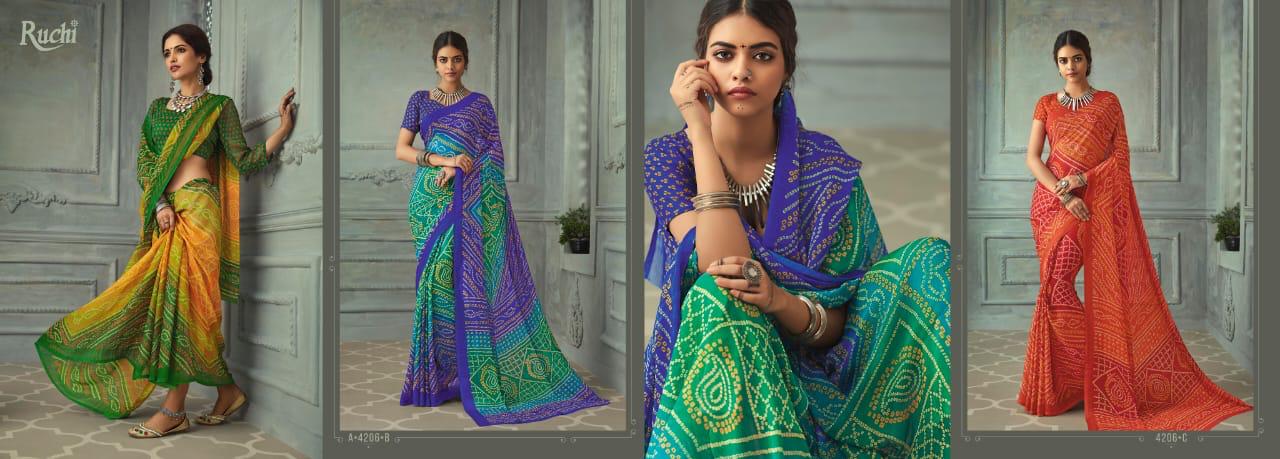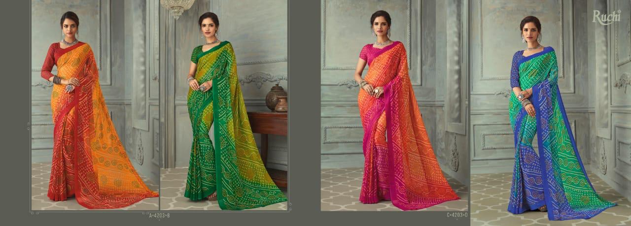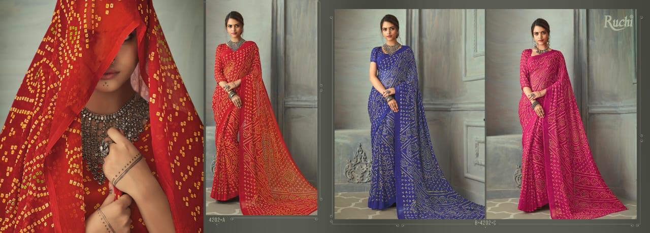 Super Kesar Chiffon Vol 42 Bandhni By Ruchi Sarees Fancy Chiffon Printed Saree Collection Wholesaler Surat