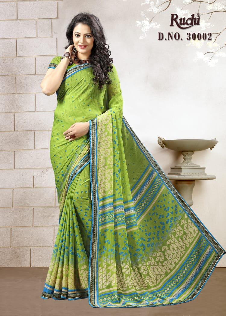 Buy Online Super Kiwi Vol 10 By Ruchi Saree 30001 Series Fancy P Chiffon Printed Saree Collection Wholesaler Surat 12 Pcs of Full Catalogue at Wholesale Price. Looking for Super Kiwi Vol 10 By Ruchi Saree 30001 Series Fancy P Chiffon Printed Saree Collection Wholesaler Surat Full Catalouge at Best Price? Buy Now Super Kiwi Vol 10 By Ruchi Saree 30001 Series Fancy P Chiffon Printed Saree Collection Wholesaler Surat at Wholesale Rate of Rs 5700 with Total 12 Pcs from authroized dealer and supplier of RUCHI SAREE Brand. Cost of Each piece is just only Rs 475 which is very low and affordable price to resale the product in your retail store ,This is Surat based Wholesale Supplier & Dealer of RUCHI SAREE Brand. Click on Brand name to Know more about RUCHI SAREE Brand's products.Call or Whatsapp on 9898838984 for booking or enquiry