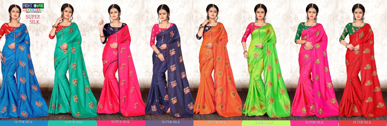 Buy Online Super Silk By Right One Fancy Sana Silk Saree With Emb Wholesale Rate Surat 8 Pcs of Full Catalogue at Wholesale Price. Looking for Super Silk By Right One Fancy Sana Silk Saree With Emb Wholesale Rate Surat Full Catalouge at Best Price? Buy Now Super Silk By Right One Fancy Sana Silk Saree With Emb Wholesale Rate Surat at Wholesale Rate of Rs 5320 with Total 8 Pcs from authroized dealer and supplier of Right one Brand. Cost of Each piece is just only Rs 665 which is very low and affordable price to resale the product in your retail store ,This is Surat based Wholesale Supplier & Dealer of Right one Brand. Click on Brand name to Know more about Right one Brand's products.Call or Whatsapp on 9898838984 for booking or enquiry