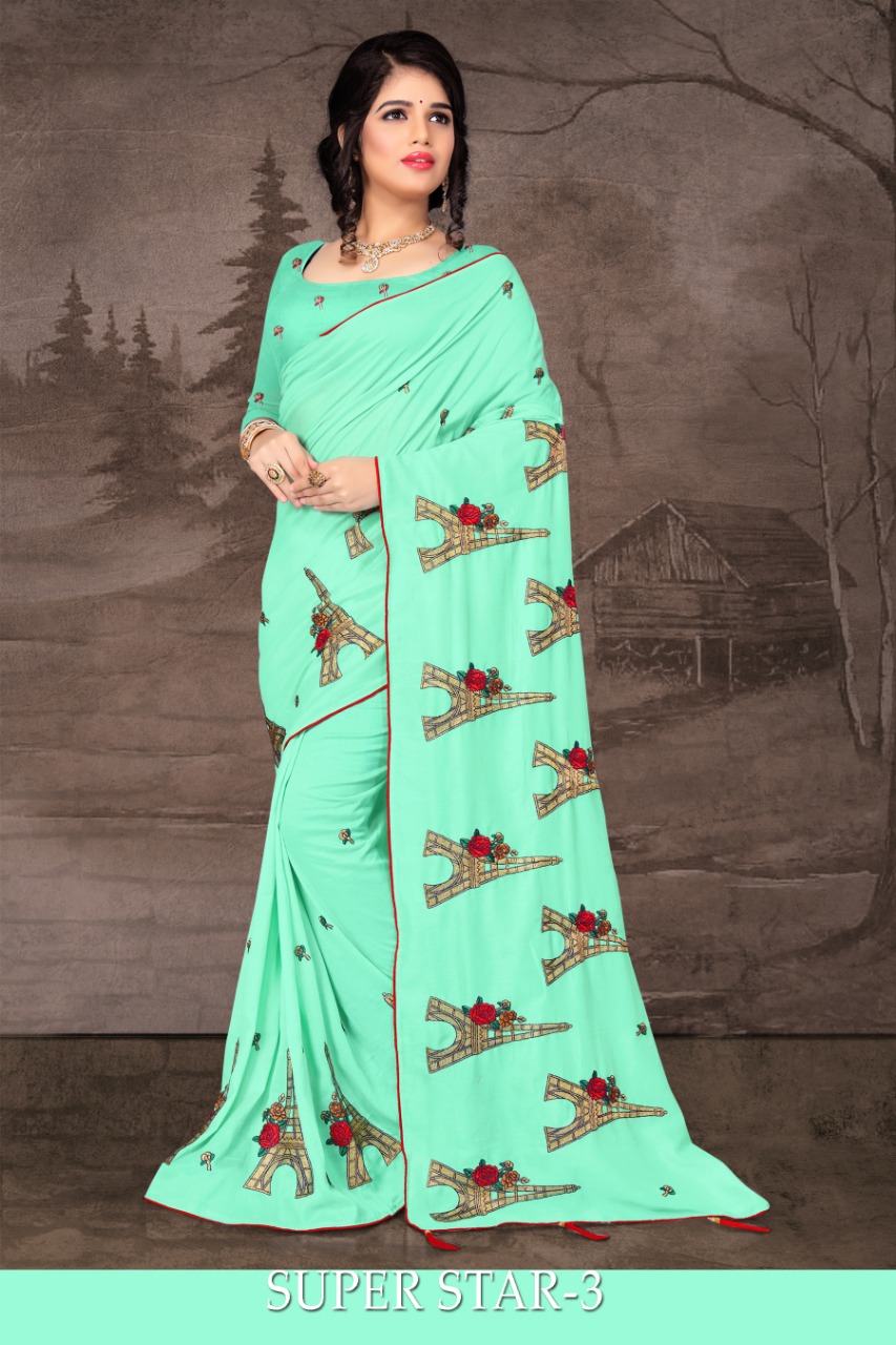 Right one fashion New poster Name- super star-3 Fabrics- vichitra Rate-715/- Set to set . GST 5 Percent Extra. Delivery 2 days |