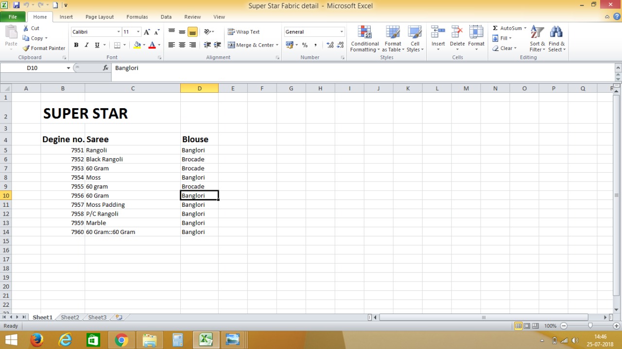 | Fabric | Banglori |