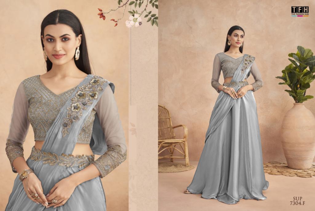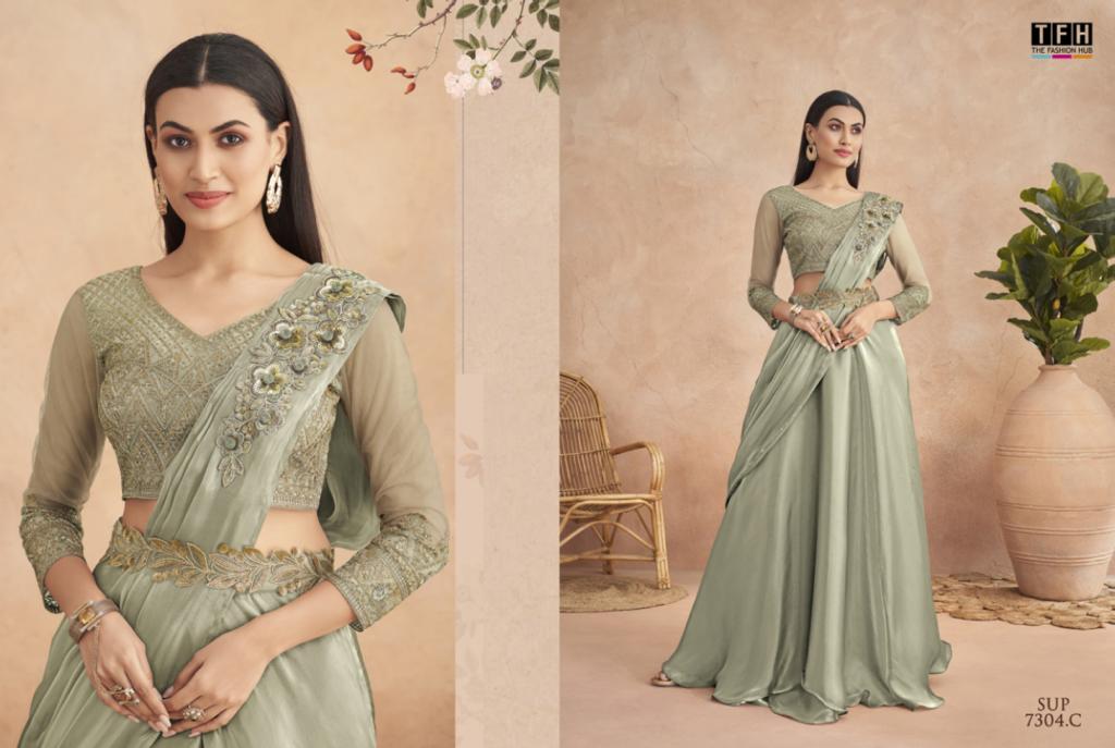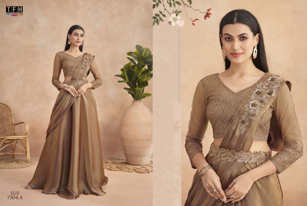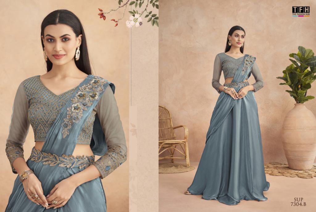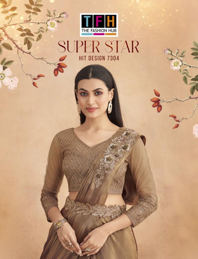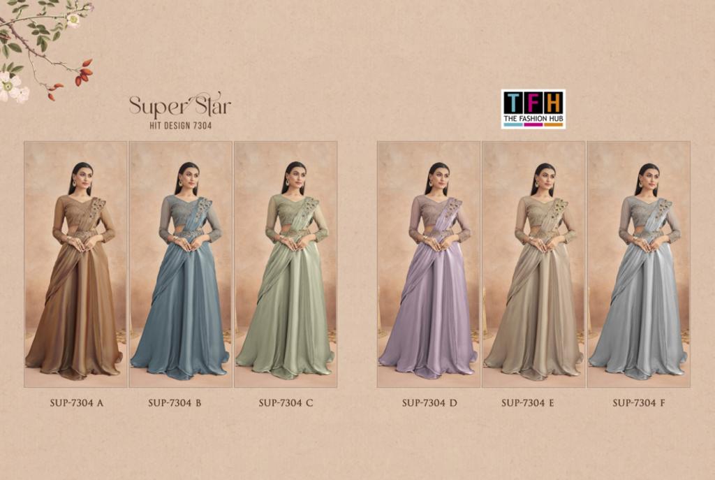 BRAND NAME Â? *TFH* CATALOG NAME Â? SUPER STAR 7304 COLOURÂ?S SERIES Â? 7304A TO 7304F PCS Â? 6 FANCY SAREE WITH BELT RATE Â? 2194/- PER PCS GST EXTRA SINGLE AVAILABLE BOOK YOUR ORDER NOW 100+single |