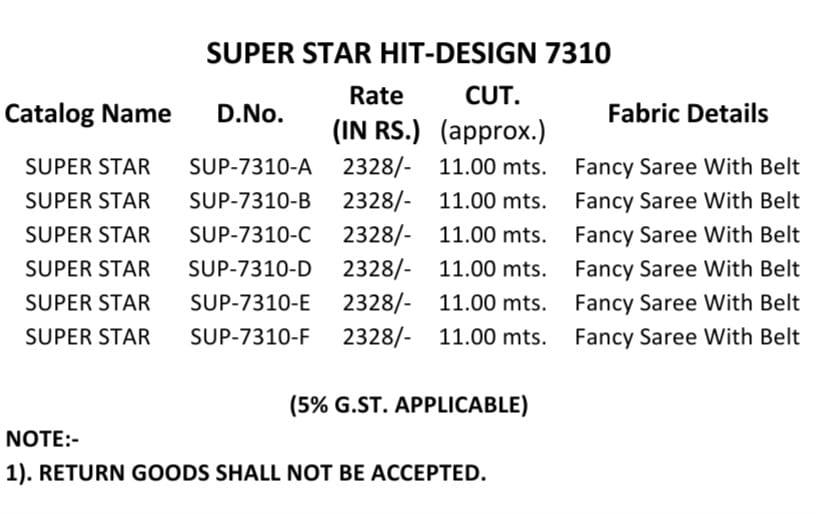 SUPER STAR HIT-DESIGN 7310 2328+GST 5% SINGLE AVAILABLE 100+Singles |