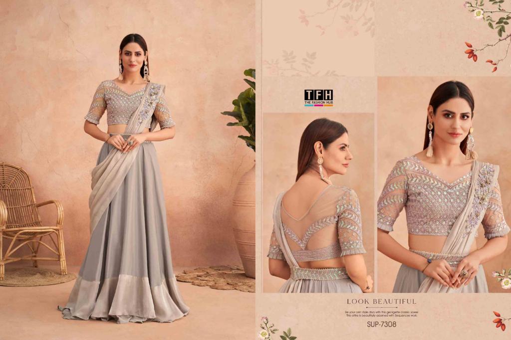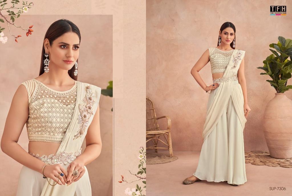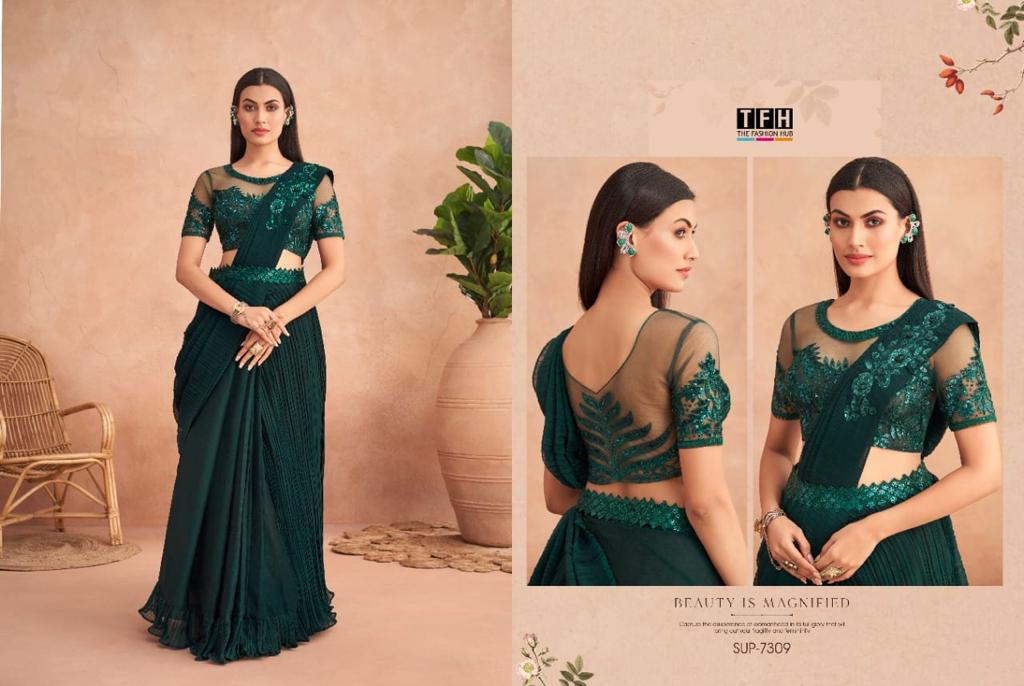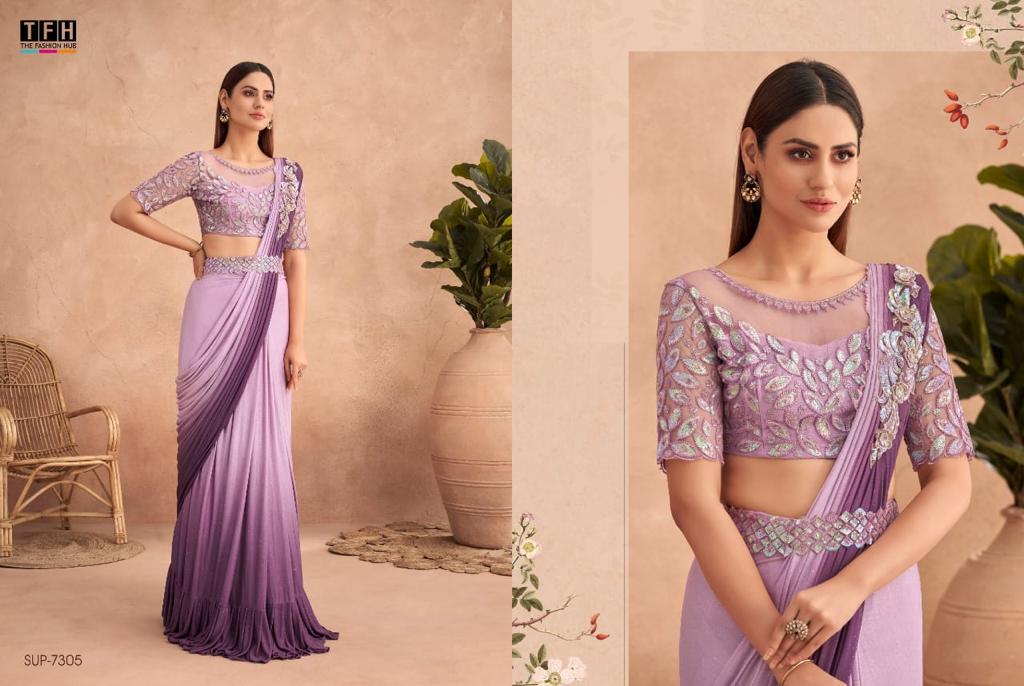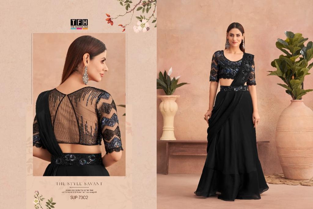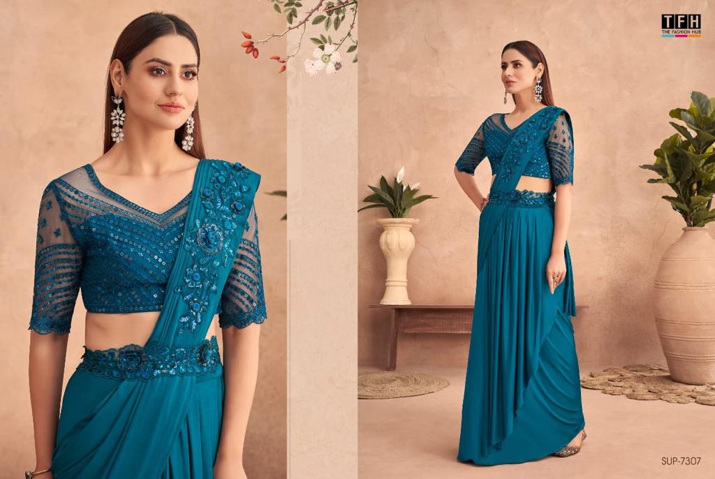 Buy Online Super Star Series 7301 To 7312 By Tfh Fancy Ready To Wear Saree With Belt Single And Set Stockiest And Supplier From Surat 12 Pcs of Full Catalogue at Wholesale Price. Looking for Super Star Series 7301 To 7312 By Tfh Fancy Ready To Wear Saree With Belt Single And Set Stockiest And Supplier From Surat Full Catalouge at Best Price? Buy Now Super Star Series 7301 To 7312 By Tfh Fancy Ready To Wear Saree With Belt Single And Set Stockiest And Supplier From Surat at Wholesale Rate of Rs 0 with Total 12 Pcs from authroized dealer and supplier of TFH Brand. Cost of Each piece is just only Rs 0 which is very low and affordable price to resale the product in your retail store ,This is Surat based Wholesale Supplier & Dealer of TFH Brand. Click on Brand name to Know more about TFH Brand's products.Call or Whatsapp on 9898838984 for booking or enquiry
