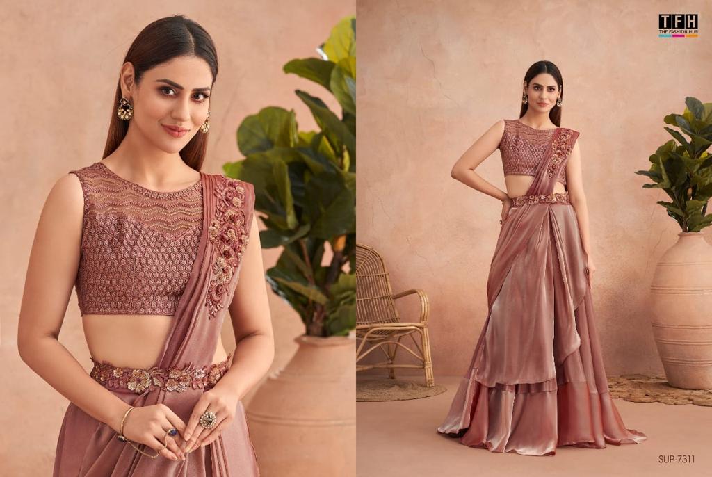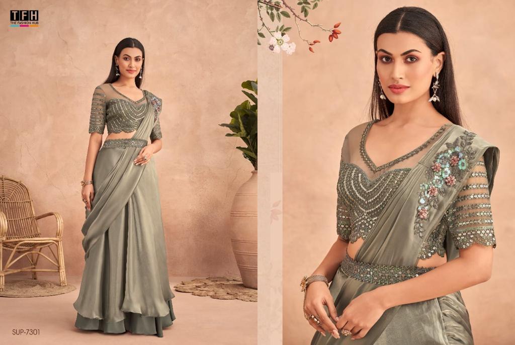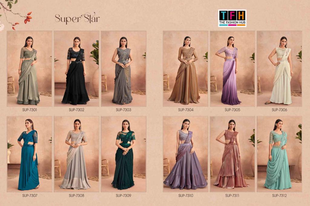 Super Star Series 7301 To 7312 By Tfh Fancy Ready To Wear Saree With Belt Single And Set Stockiest And Supplier From Surat