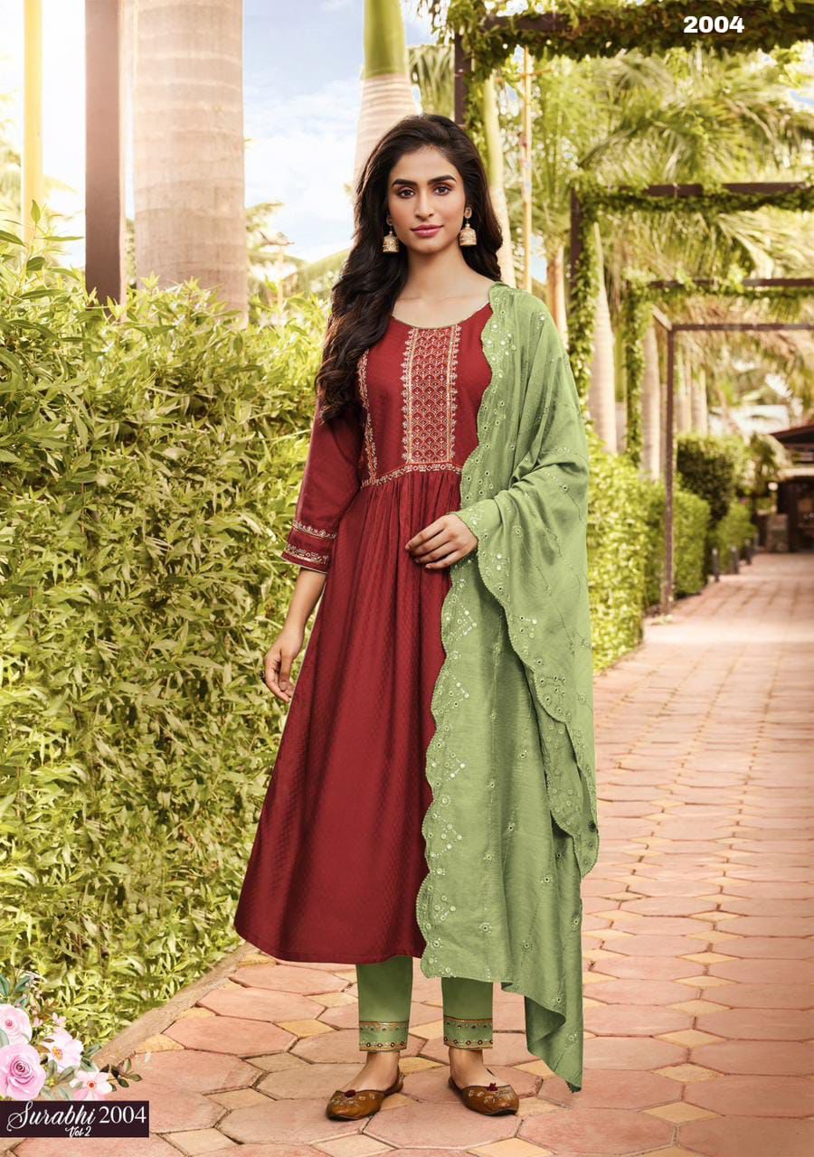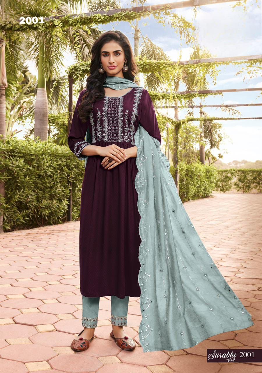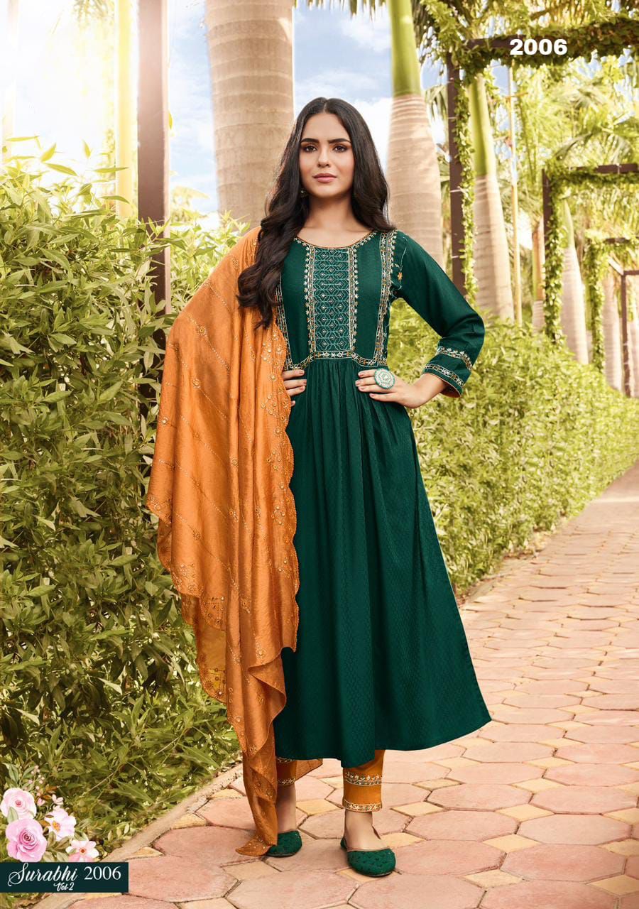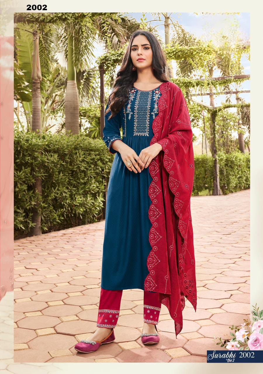 Surabhi Vol 2 Rayon Fancy Kurti Bottom Duppata Collection