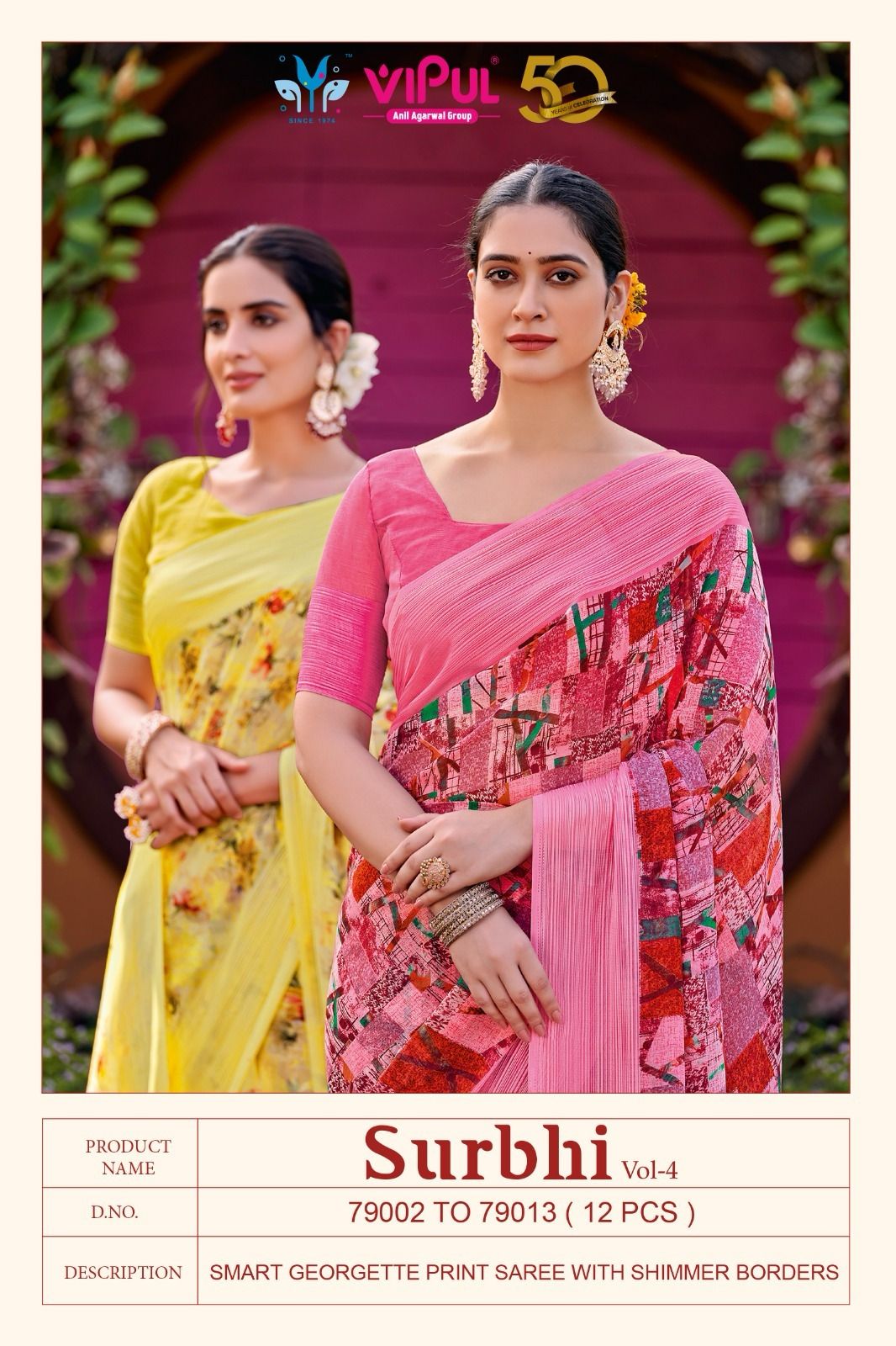 BRAND NAME Â? VIPUL CATALOG NAME Â? SURBHI VOL-04 SERIES - 79002 TO 79013 Fabric- Georgette RATE - 769/- PER PCS GST EXTRA BOOKÂ YOURÂ ORDERÂ NOW 100+ SINGLE |