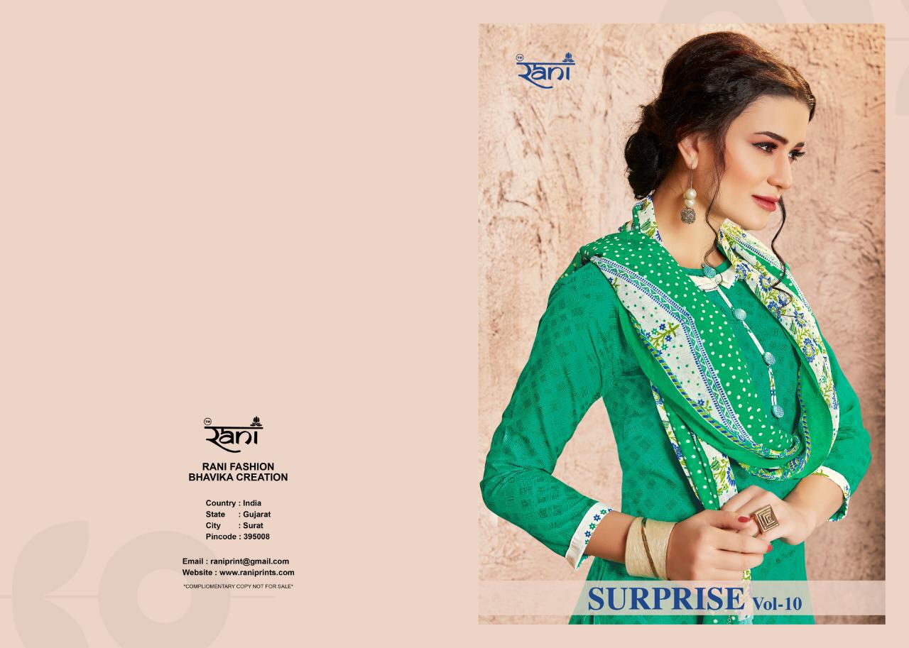 *#RANI GROUP* *#The_No_1_Brand* *#chiffon_Dupatta_Special* *#Unbeatable_Price* *#Patiyala_Collection* *NEW PRINTS* *NEW COLOURS* *SUPER HIT COLLECTION* *BOOK NOW* _*...RANI GROUP*..._ _Â?PresentsÂ? ? *_Â?SURPRISE VOL-10_Â?* ? We know you loved our catlogs, and your love and support made us *#The_No_1_Brand* of ladies suits in india. *_Â?SURPRISE VOL-10_Â?* ?Description? ?Top: sami loun print 2.4 mtr ?Dupatta: -marbal chiffon print 2.25 mtr Bottom: soft cotton print patiyala ?Beautiful 16 print design set...... ?Prise:-325/-@ Dispatching on 22/2/19 |