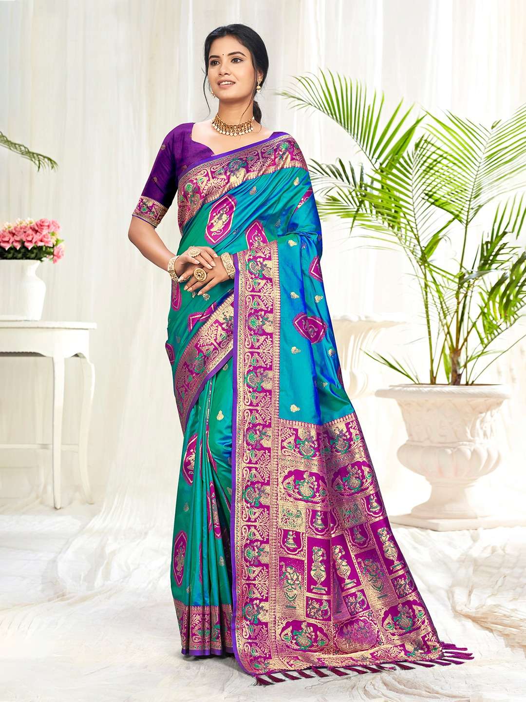 Brand - Bunawat Catalogue Name : SURSANGAM VOL-6 Saree Fabric : SILK Blouse Fabric : SILK Price : 1145 GST 5% Extra. Single avaialble. Ready to ship. |