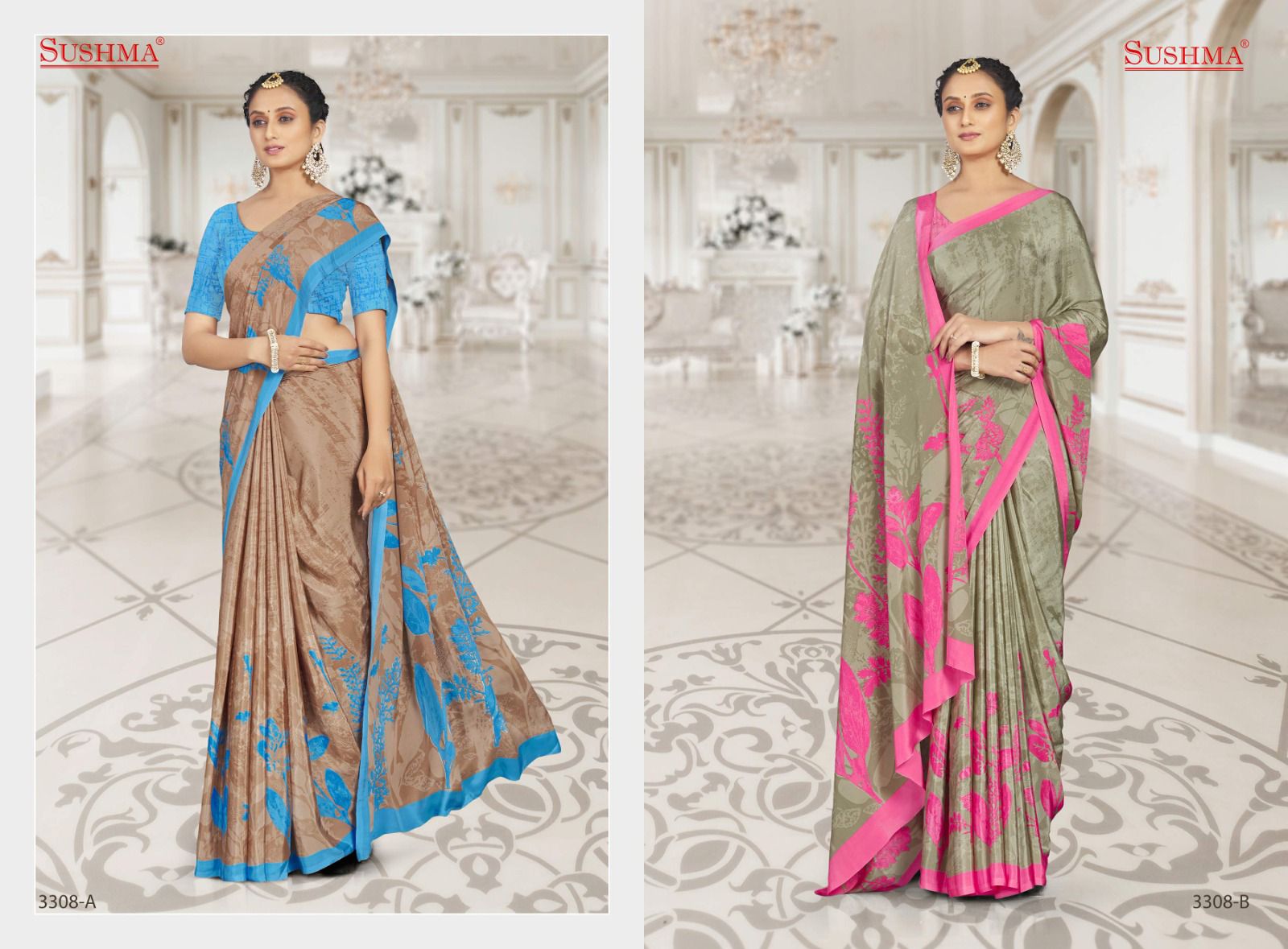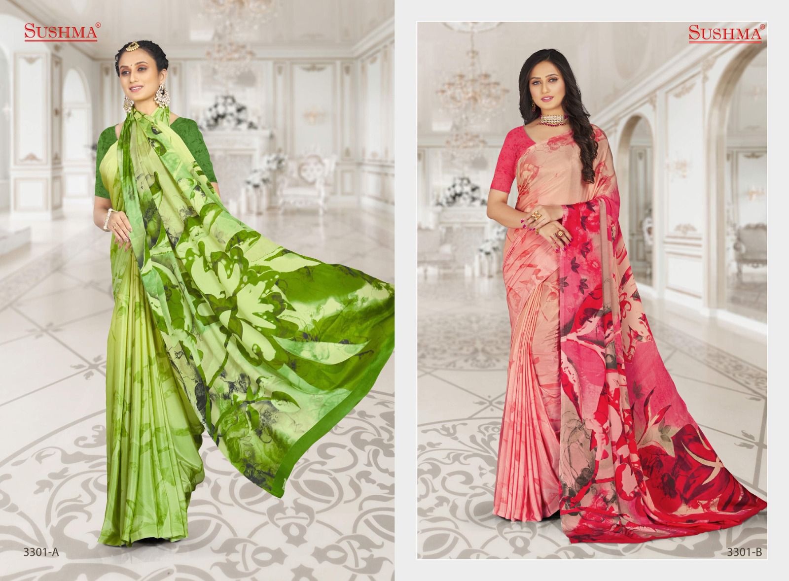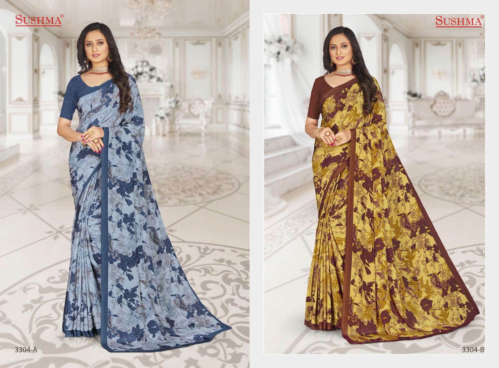 Brand - Sushma *FASHION 33 CATALOG* FASHION CRAPE 615/- GST 5% SHIP EXTRA 6.30 MTRS 18 SAREES Single available 100+Singles |