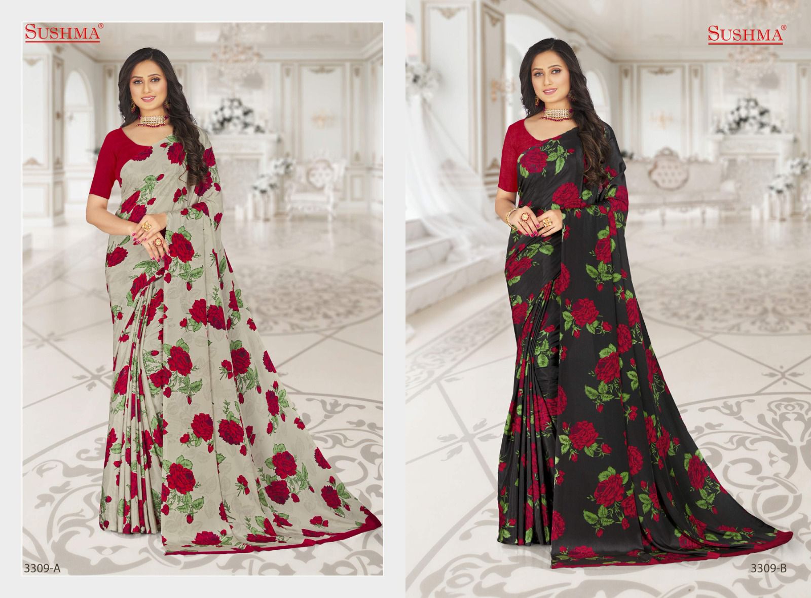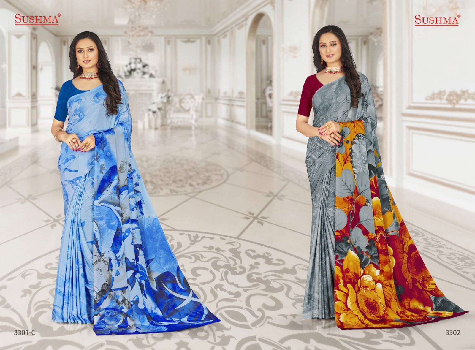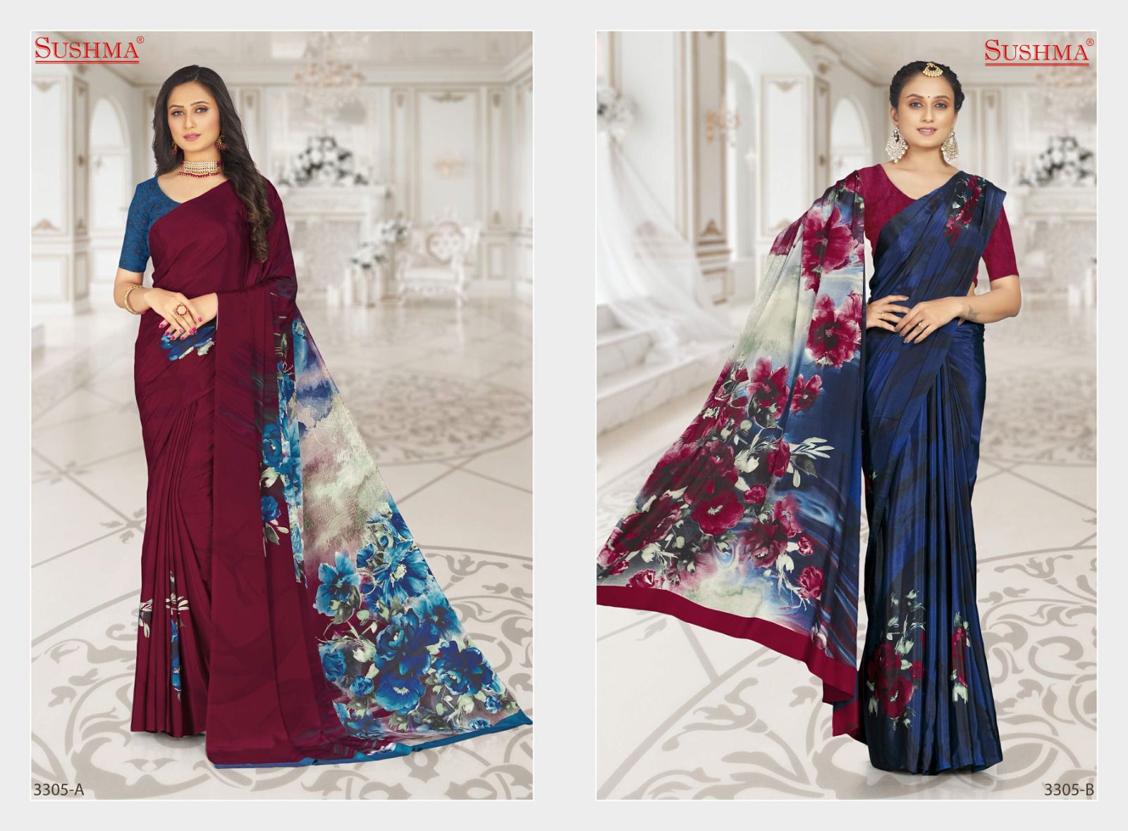Brand - Sushma *FASHION 33 CATALOG* FASHION CRAPE 615/- GST 5% SHIP EXTRA 6.30 MTRS 18 SAREES Single available 100+Singles |