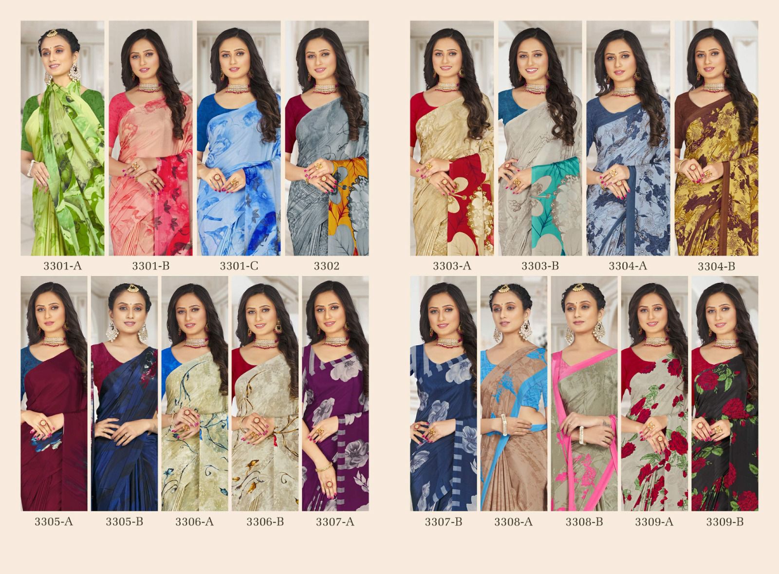 Buy Online Sushma New Fancy Catalog Fashion 33 Crape Sarees Collection Surat 18 Pcs of Full Catalogue at Wholesale Price. Looking for Sushma New Fancy Catalog Fashion 33 Crape Sarees Collection Surat Full Catalouge at Best Price? Buy Now Sushma New Fancy Catalog Fashion 33 Crape Sarees Collection Surat at Wholesale Rate of Rs 11070 with Total 18 Pcs from authroized dealer and supplier of Sushma Saree Brand. Cost of Each piece is just only Rs 615 which is very low and affordable price to resale the product in your retail store ,This is Surat based Wholesale Supplier & Dealer of Sushma Saree Brand. Click on Brand name to Know more about Sushma Saree Brand's products.Call or Whatsapp on 9898838984 for booking or enquiry