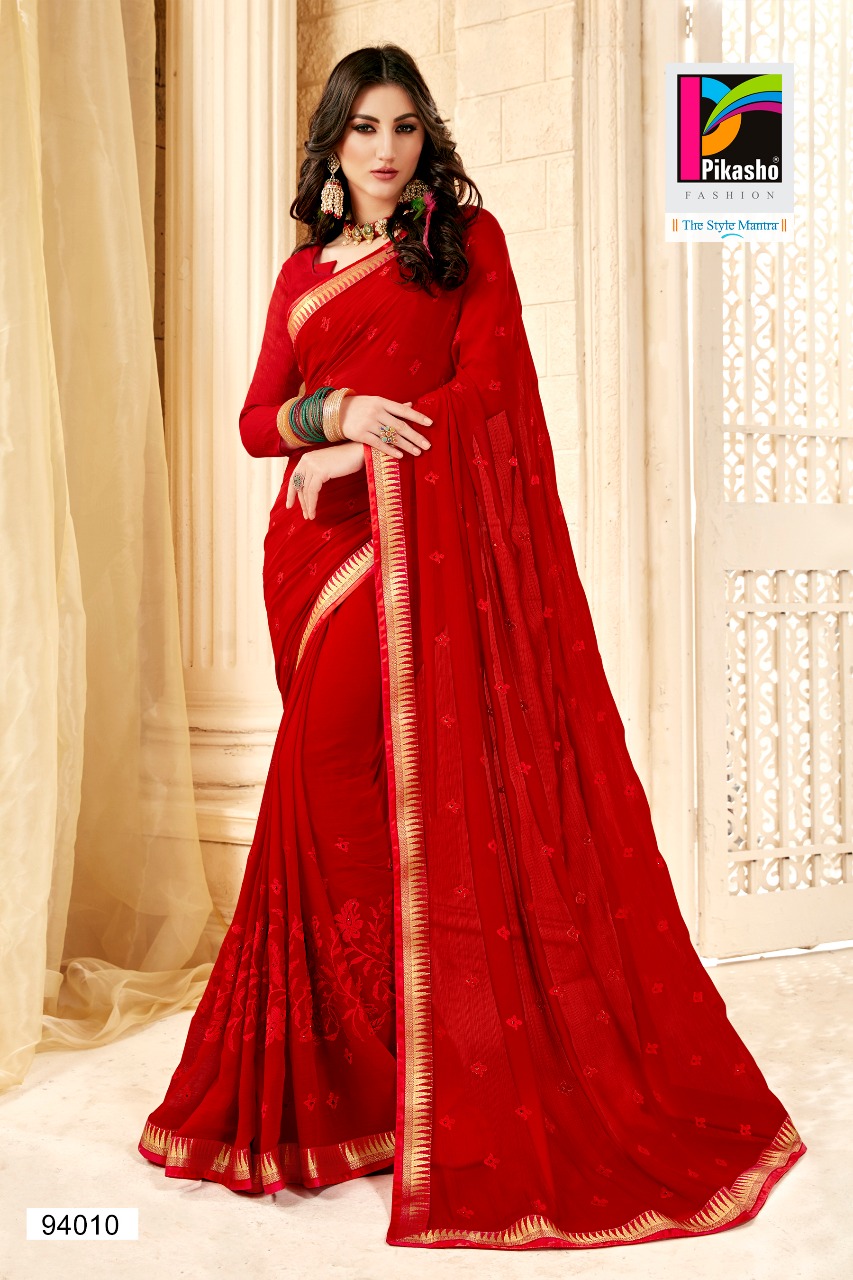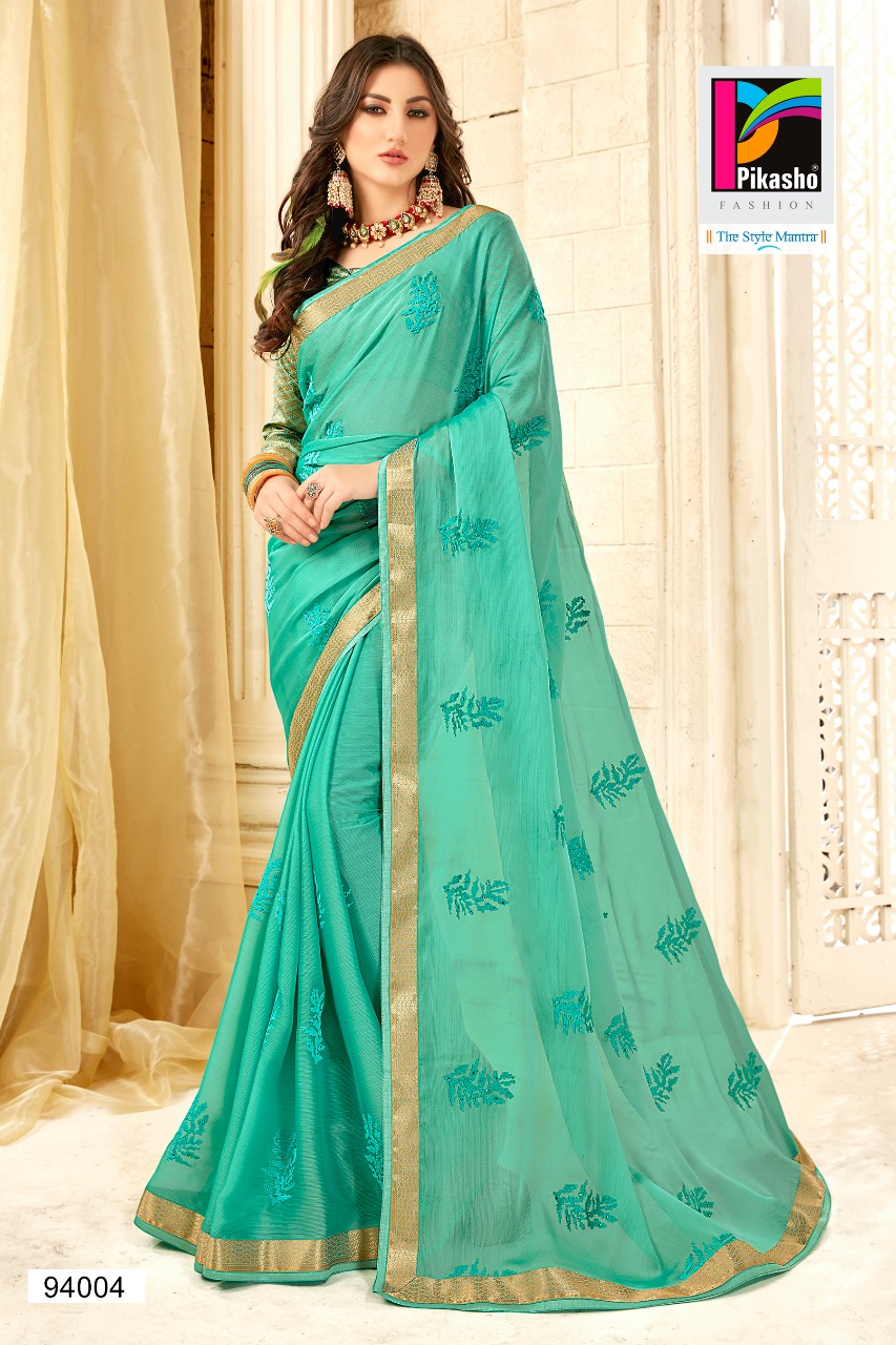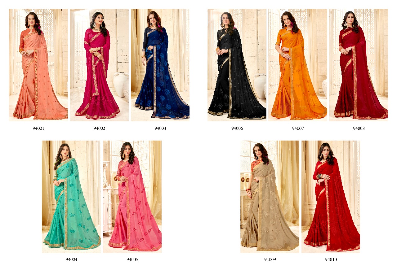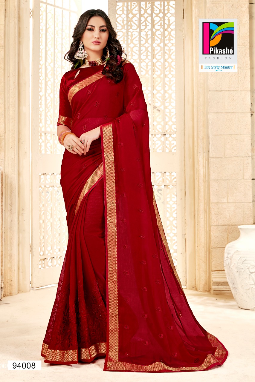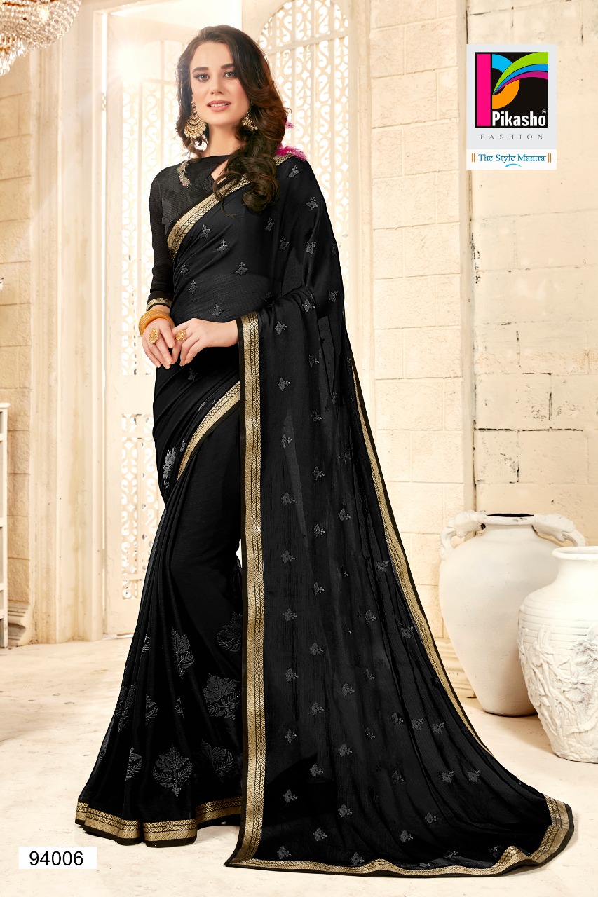 Buy Online Sushmita By Pikasho Fashion Series 94001 To 94010 Fancy Designer Party Wear Sarees Wholesale Supplier Surat 10 Pcs of Full Catalogue at Wholesale Price. Looking for Sushmita By Pikasho Fashion Series 94001 To 94010 Fancy Designer Party Wear Sarees Wholesale Supplier Surat Full Catalouge at Best Price? Buy Now Sushmita By Pikasho Fashion Series 94001 To 94010 Fancy Designer Party Wear Sarees Wholesale Supplier Surat at Wholesale Rate of Rs 9500 with Total 10 Pcs from authroized dealer and supplier of Pikasho Fashion Brand. Cost of Each piece is just only Rs 950 which is very low and affordable price to resale the product in your retail store ,This is Surat based Wholesale Supplier & Dealer of Pikasho Fashion Brand. Click on Brand name to Know more about Pikasho Fashion Brand's products.Call or Whatsapp on 9898838984 for booking or enquiry