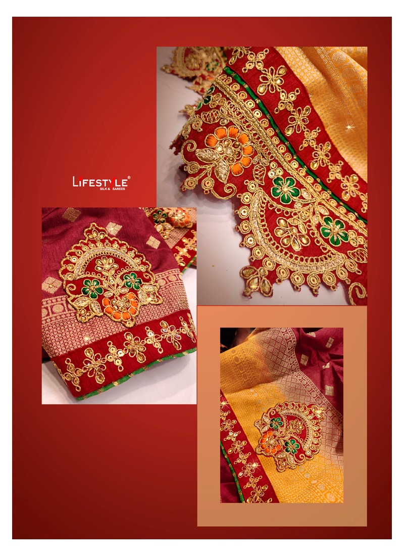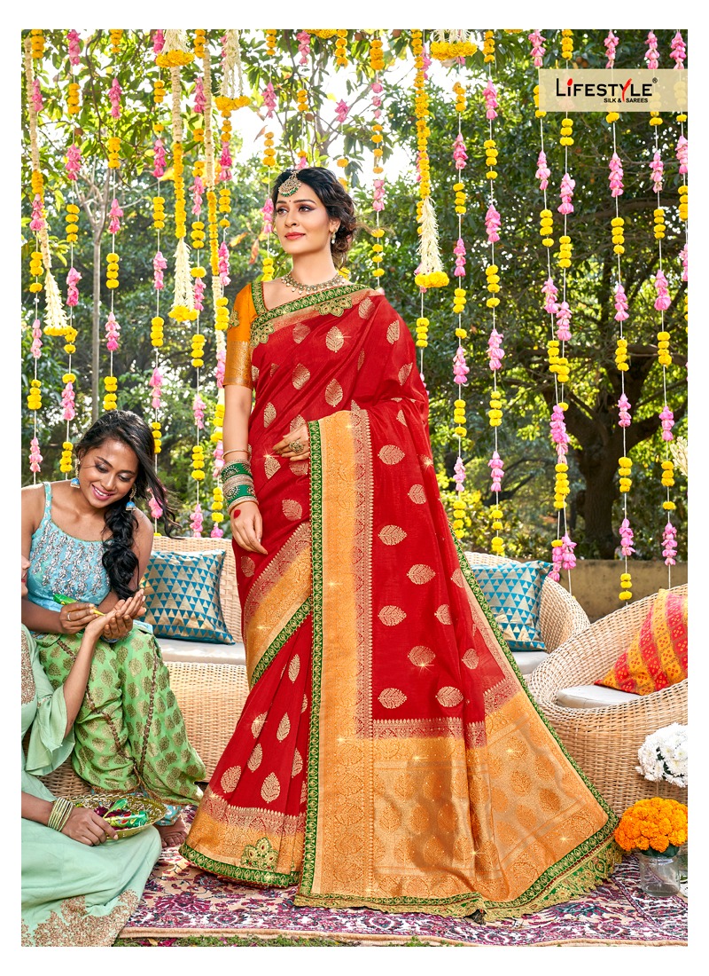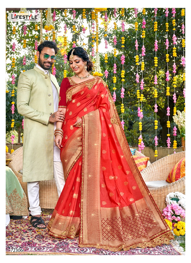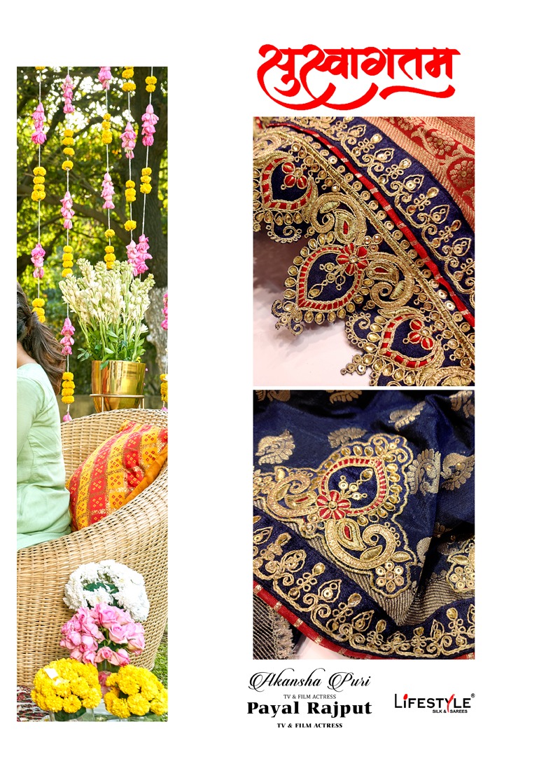 Brand = *LIFESTYLE* Catalog :- *SUSWAGATAM* Volume :- 1 Fabric :- *DOLA SILK* Packing :- BOX Ex-mill Price :- *1884/- per pcs * Set to set Cut/Length :- 6.4 RICH PALLU SAREE WITH EMBROIDERY LACE DIAMOND WORK PACKING - Today |