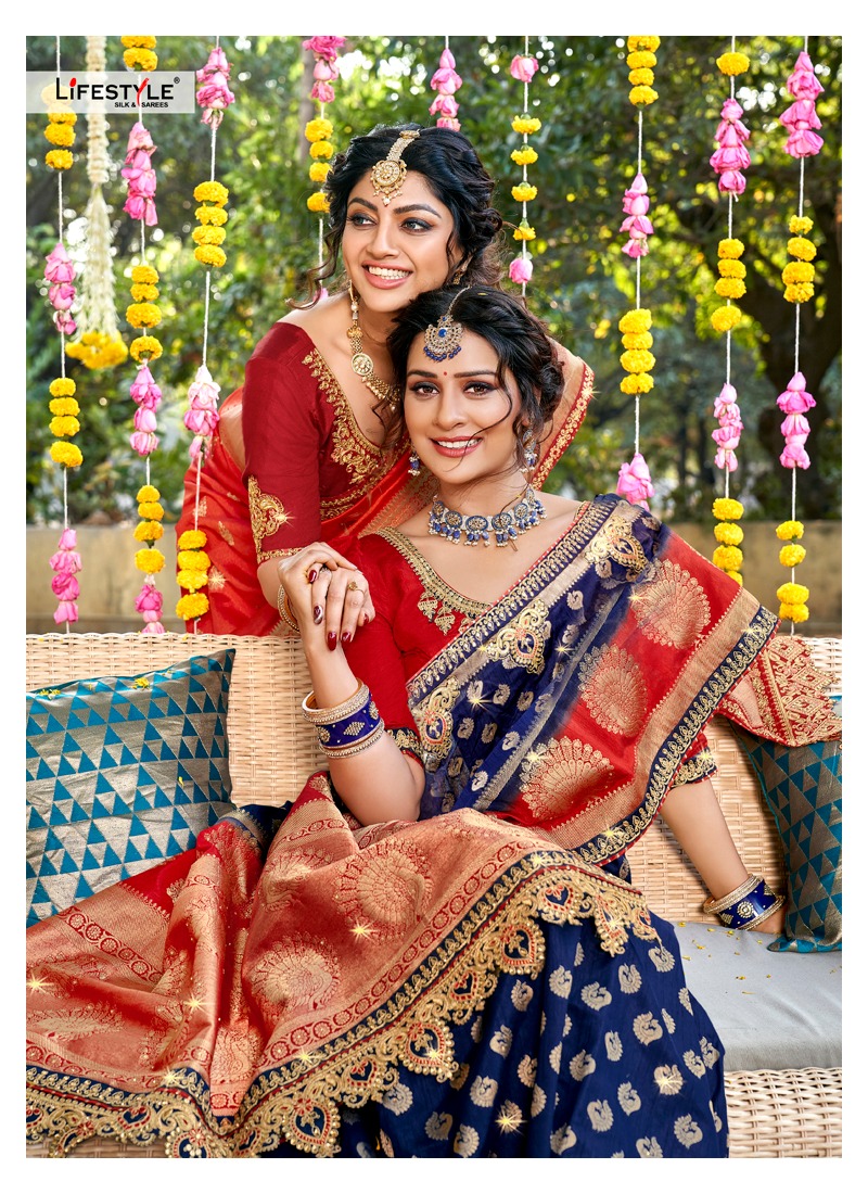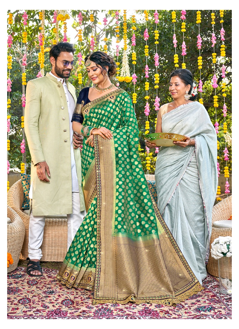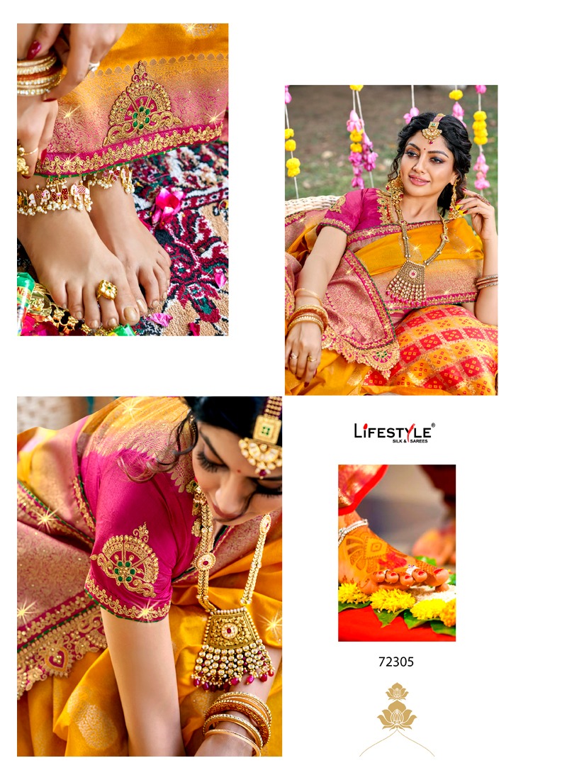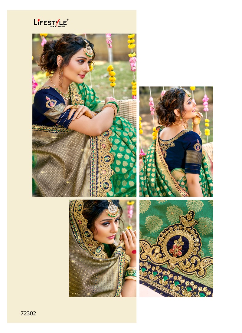 Brand = *LIFESTYLE* Catalog :- *SUSWAGATAM* Volume :- 1 Fabric :- *DOLA SILK* Packing :- BOX Ex-mill Price :- *1884/- per pcs * Set to set Cut/Length :- 6.4 RICH PALLU SAREE WITH EMBROIDERY LACE DIAMOND WORK PACKING - Today |