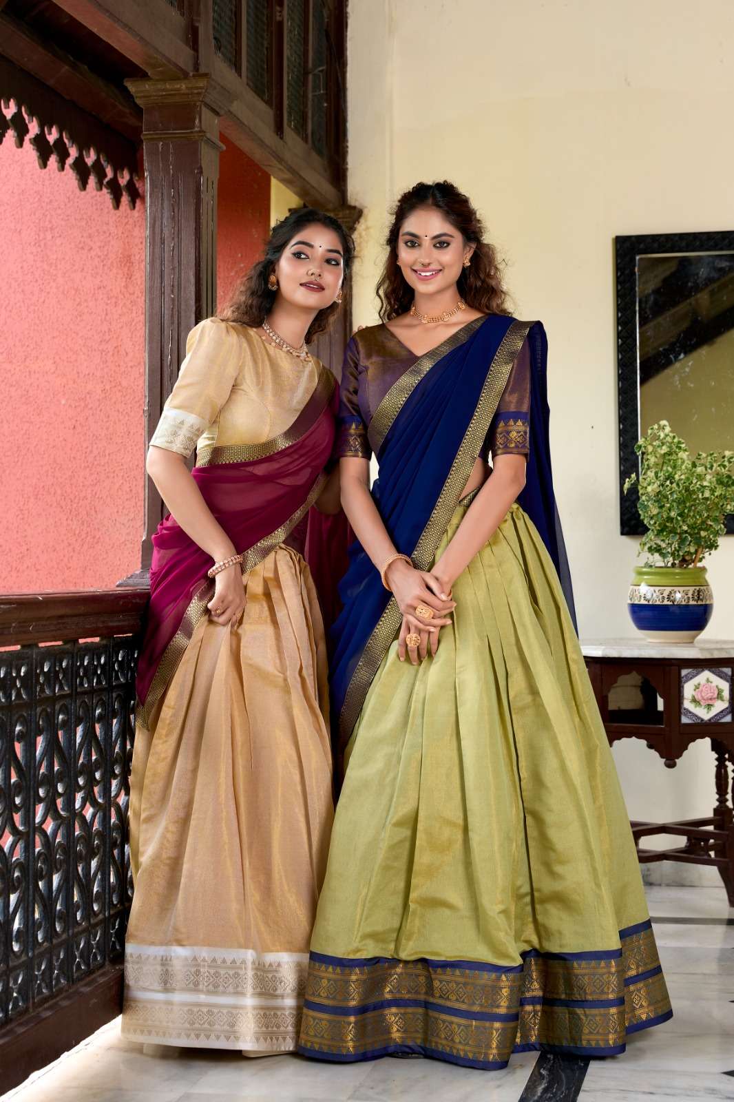 Heritage redefined in this Kanchipuram lehenga choli. Perfectly adorned with intricate zari weaving for a regal touch🪸