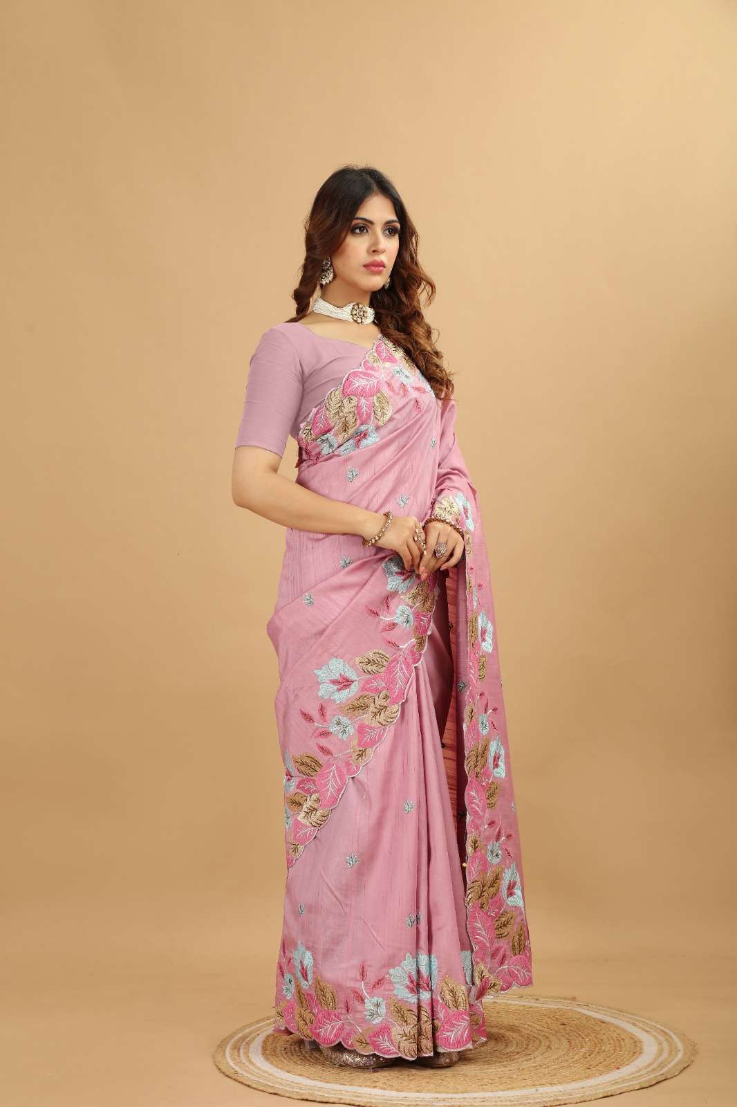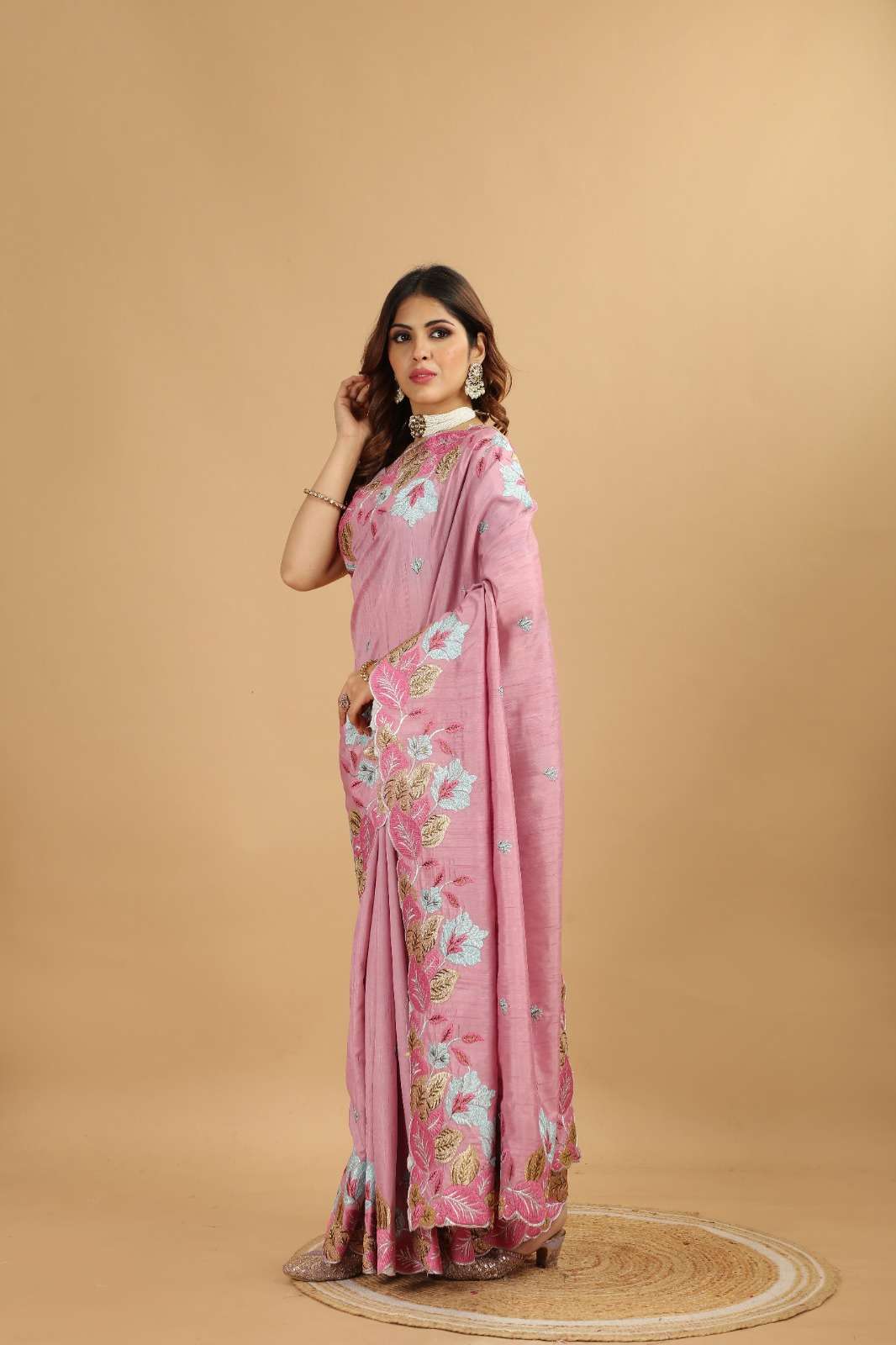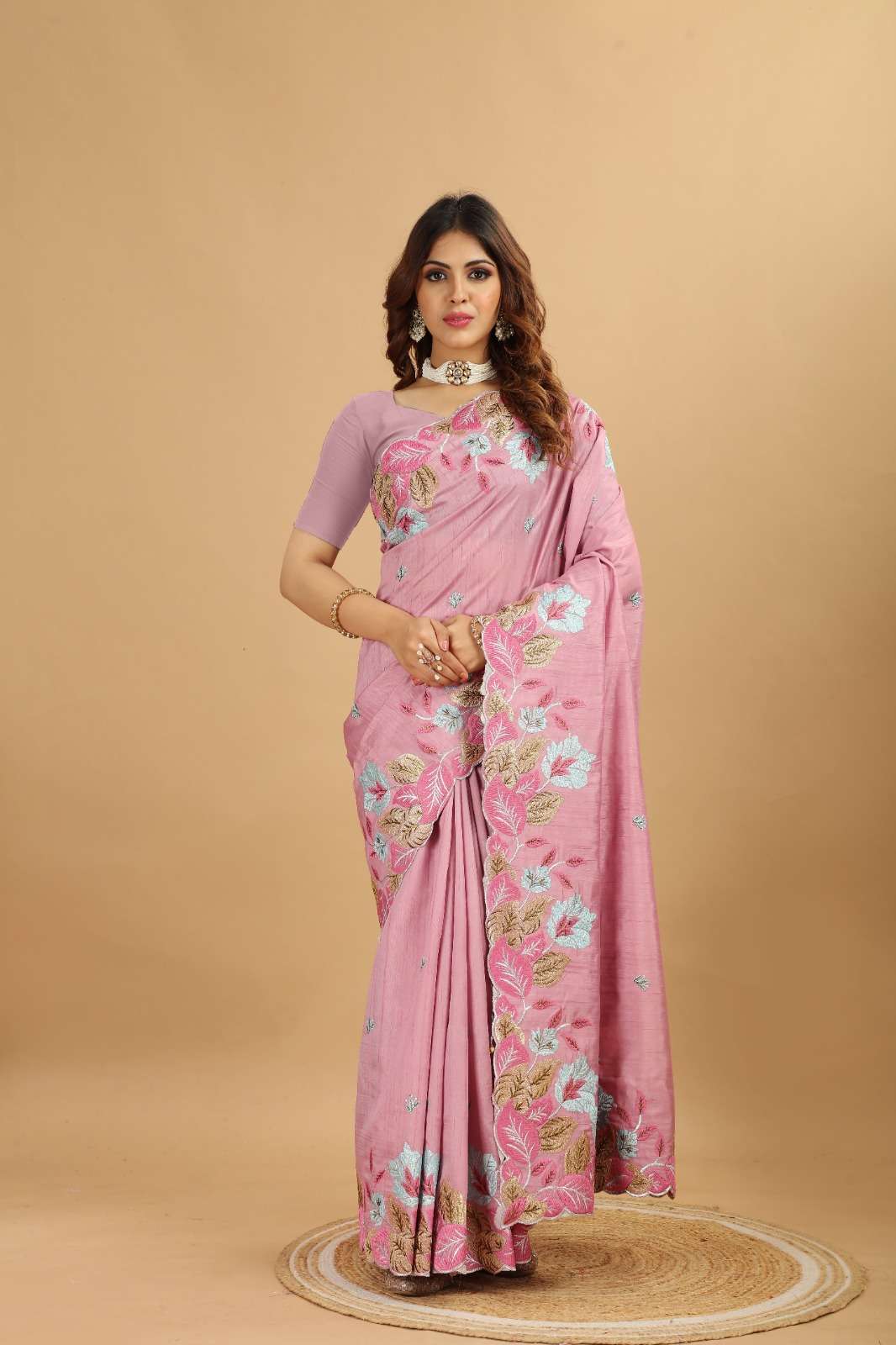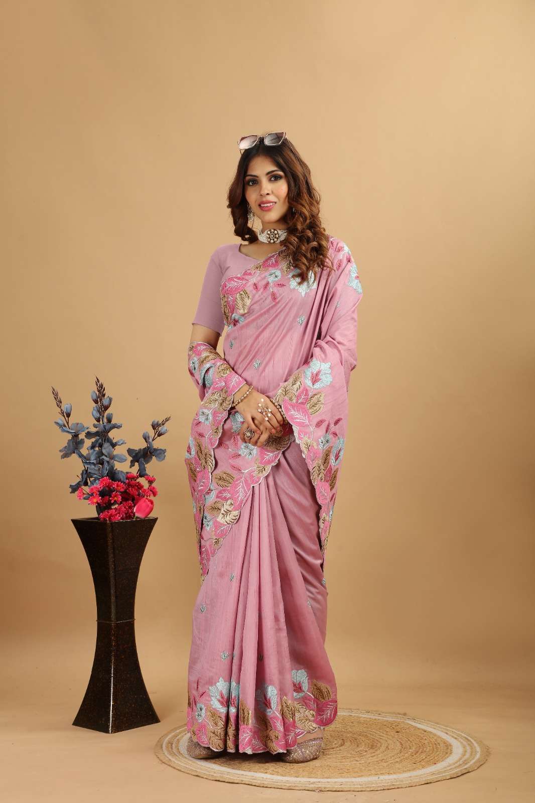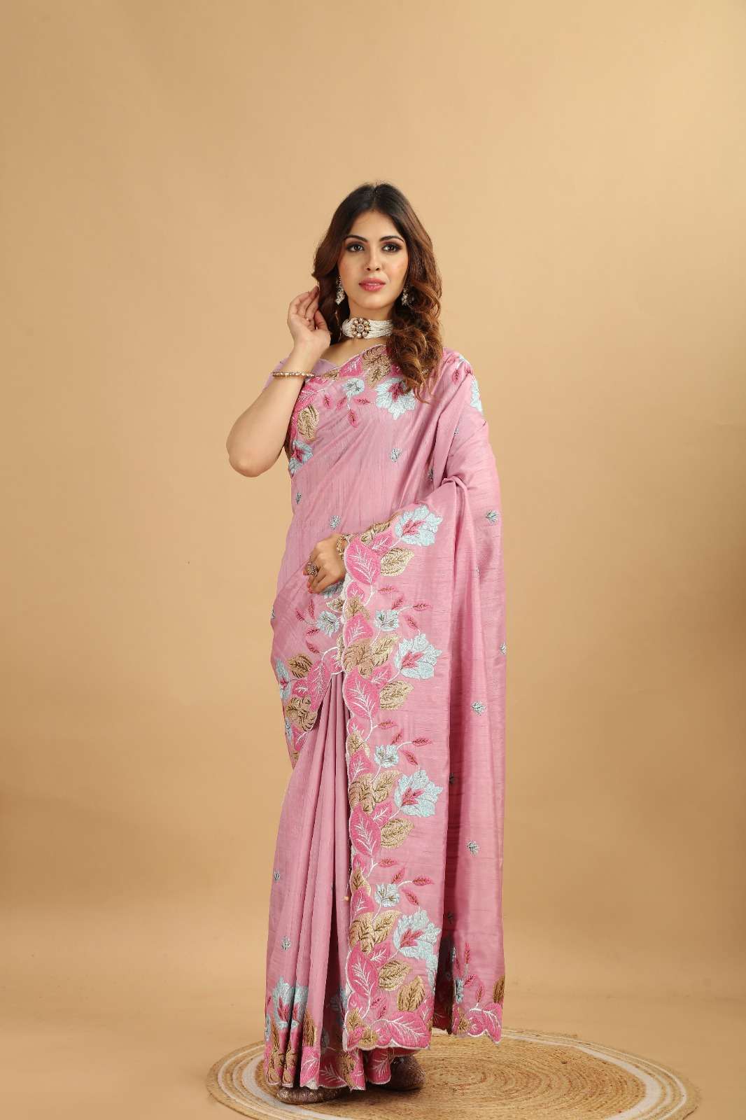 Catalog Name : *SUVIKA* No of Pcs : 1 Fabric : Organza Work : Pure Gadhwal tussur silk saree in a solid color with viscose thread embroidered work in saree Paired with Plain gadhwal tussur silk blouse of same color and fabric of saree