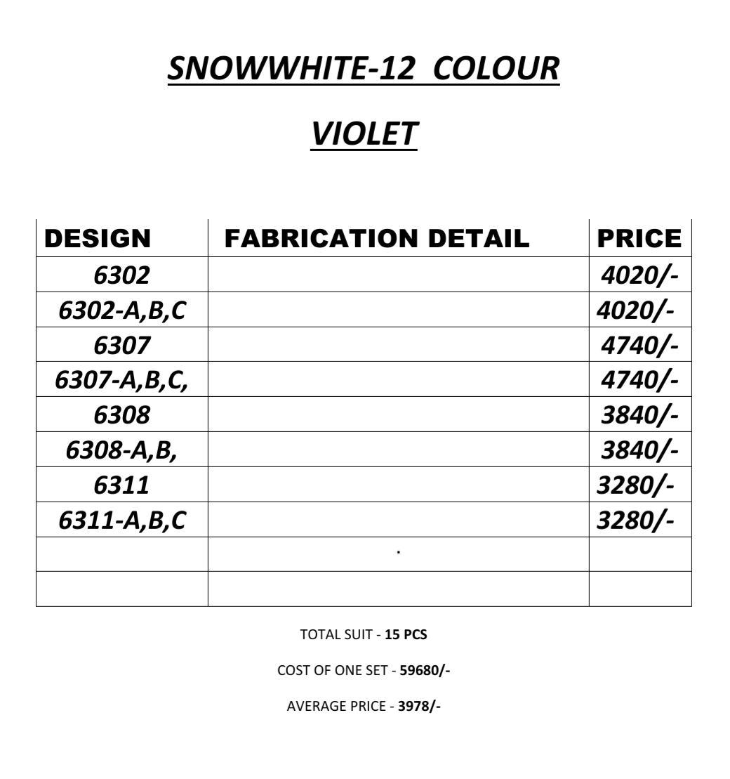 Buy Online Swagat Snowwhite 12 Colours Series 6302 Designer Party Wear Suits Wholesale Supplier Gujarat 0 Pcs of Full Catalogue at Wholesale Price. Looking for Swagat Snowwhite 12 Colours Series 6302 Designer Party Wear Suits Wholesale Supplier Gujarat Full Catalouge at Best Price? Buy Now Swagat Snowwhite 12 Colours Series 6302 Designer Party Wear Suits Wholesale Supplier Gujarat at Wholesale Rate of Rs 0 with Total 0 Pcs from authroized dealer and supplier of SWAGAT Brand. Cost of Each piece is just only Rs 0 which is very low and affordable price to resale the product in your retail store ,This is Surat based Wholesale Supplier & Dealer of SWAGAT Brand. Click on Brand name to Know more about SWAGAT Brand's products.Call or Whatsapp on 9898838984 for booking or enquiry