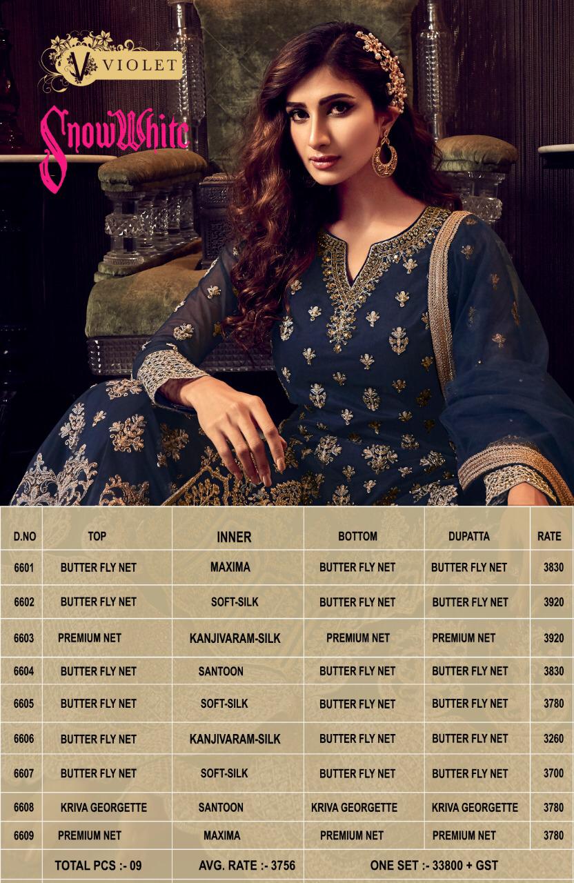 Buy Online Swagat Snowwhite Series 6601 To 6609 Designer Party Wear Suits Wholesale Supplier Gujarat 9 Pcs of Full Catalogue at Wholesale Price. Looking for Swagat Snowwhite Series 6601 To 6609 Designer Party Wear Suits Wholesale Supplier Gujarat Full Catalouge at Best Price? Buy Now Swagat Snowwhite Series 6601 To 6609 Designer Party Wear Suits Wholesale Supplier Gujarat at Wholesale Rate of Rs 33804 with Total 9 Pcs from authroized dealer and supplier of SWAGAT Brand. Cost of Each piece is just only Rs 3756 which is very low and affordable price to resale the product in your retail store ,This is Surat based Wholesale Supplier & Dealer of SWAGAT Brand. Click on Brand name to Know more about SWAGAT Brand's products.Call or Whatsapp on 9898838984 for booking or enquiry