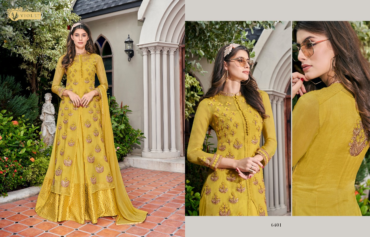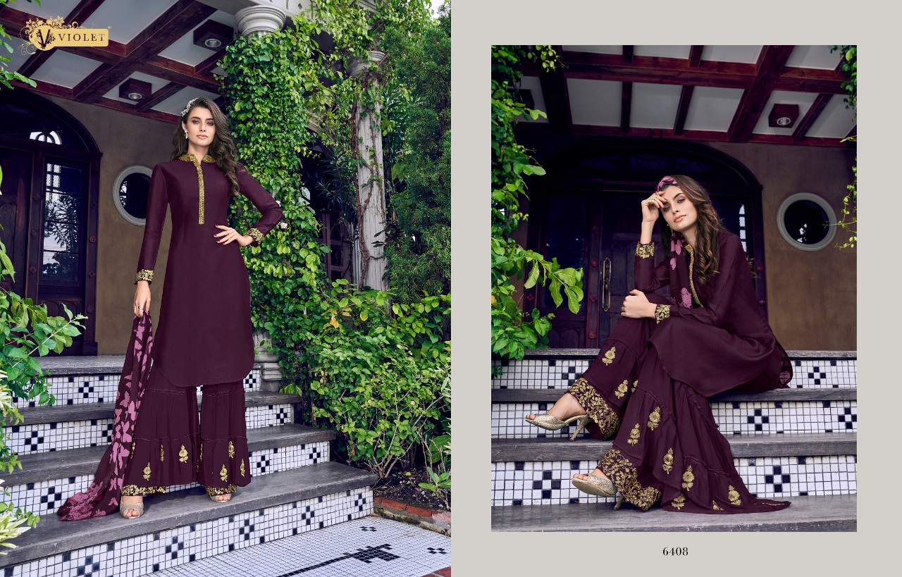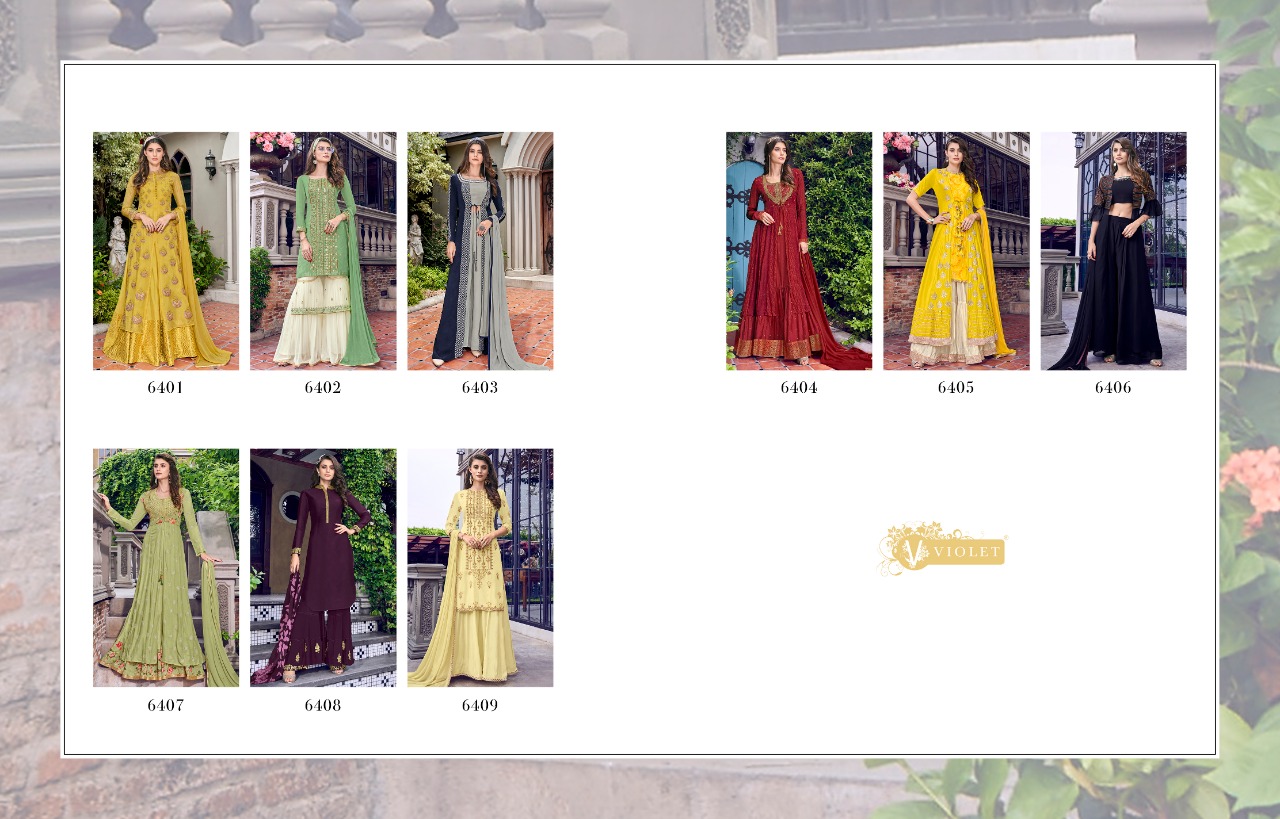 Swagat voilet series 6401 to 6409 Designer Party wear suits Wholesale supplier gujarat Set To Set And Single Single Extra 100 on company price list GST ship extra |