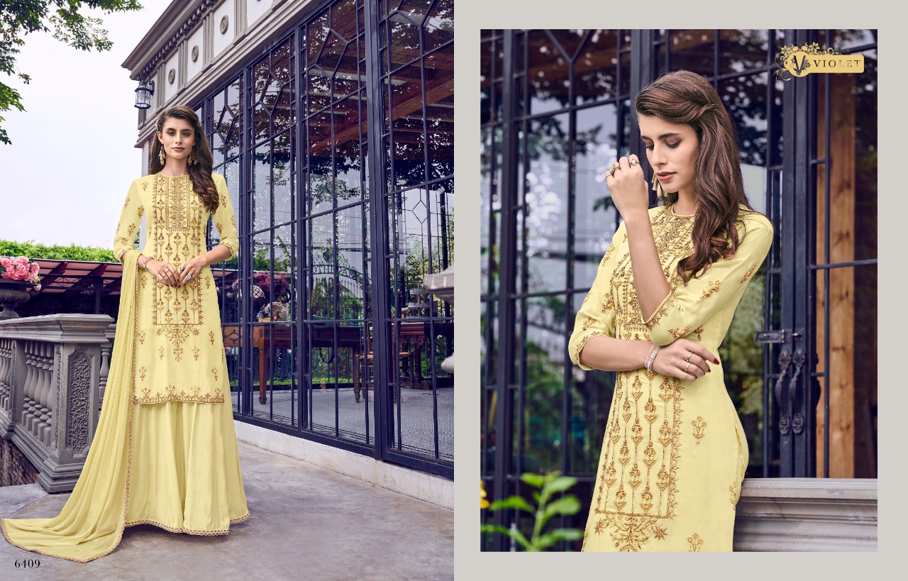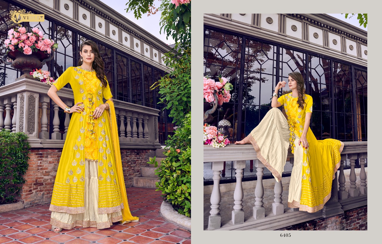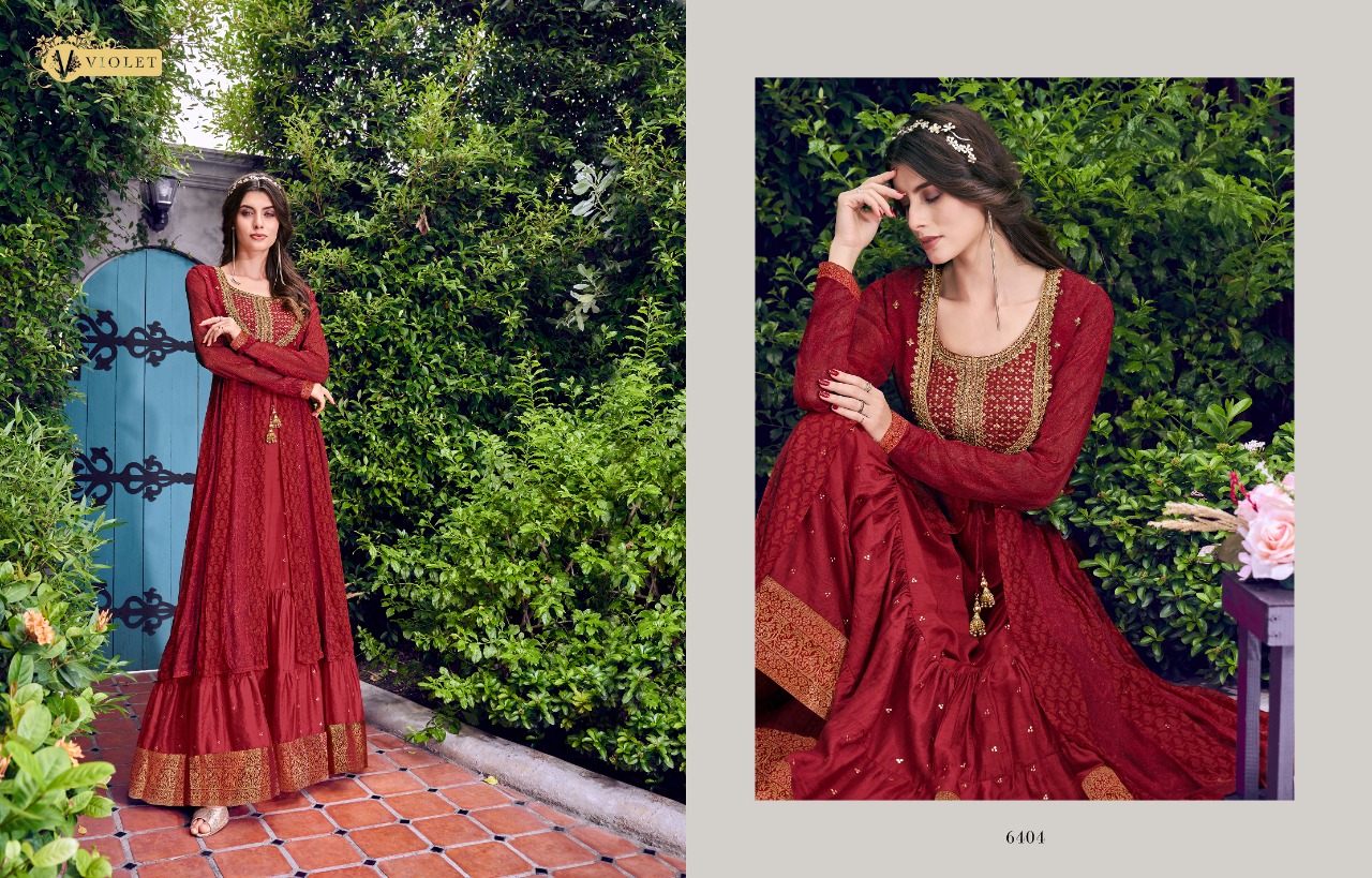Swagat voilet series 6401 to 6409 Designer Party wear suits Wholesale supplier gujarat Set To Set And Single Single Extra 100 on company price list GST ship extra |