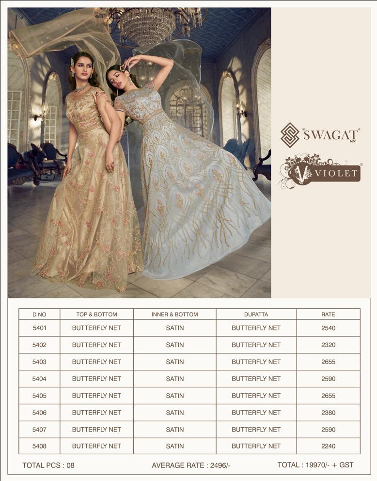 Swagat Voilet Series 5401 To 5408 Designer Party Wear Collection Single And Set Stockiest And Supplier From Surat