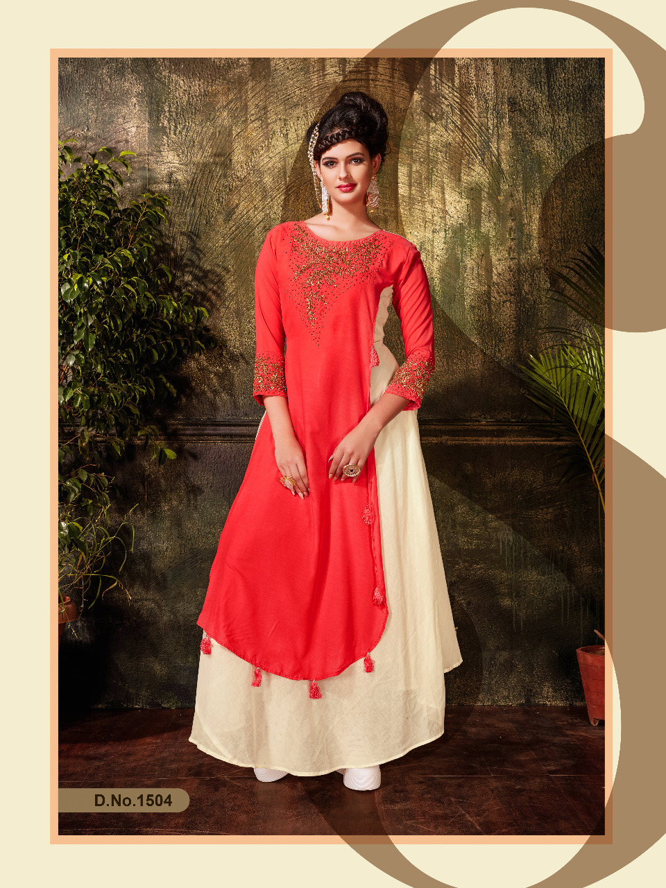 Swaragini Vol 15 Reyon Chanderi Fancy Designer Kurtis Wholesale Supplier And Dealer Gujarat