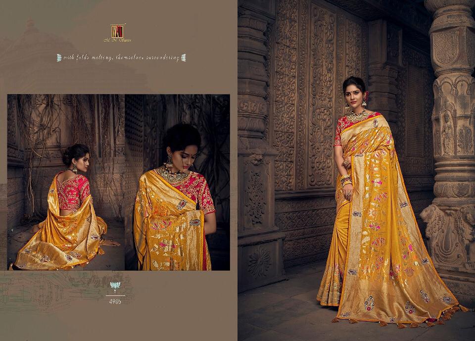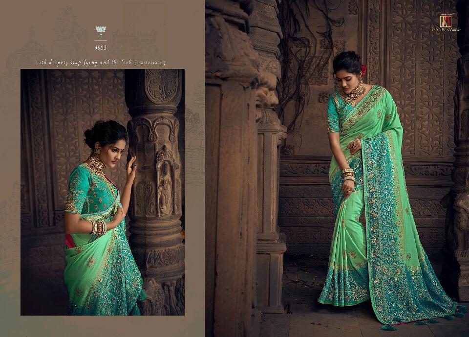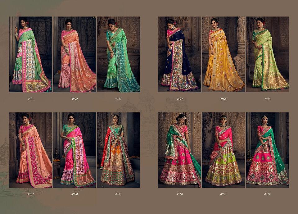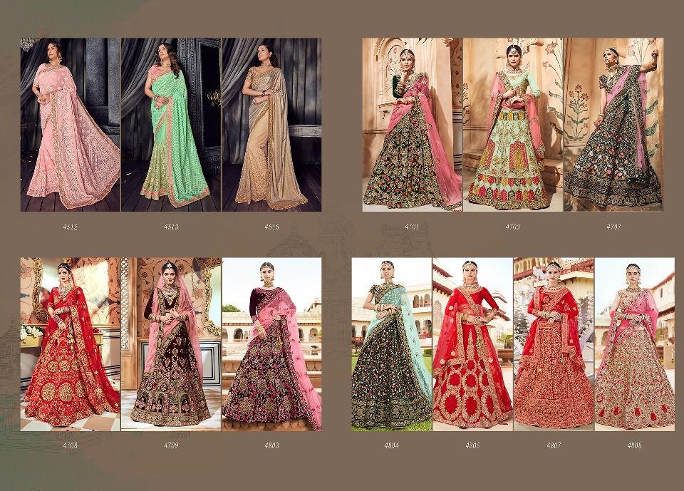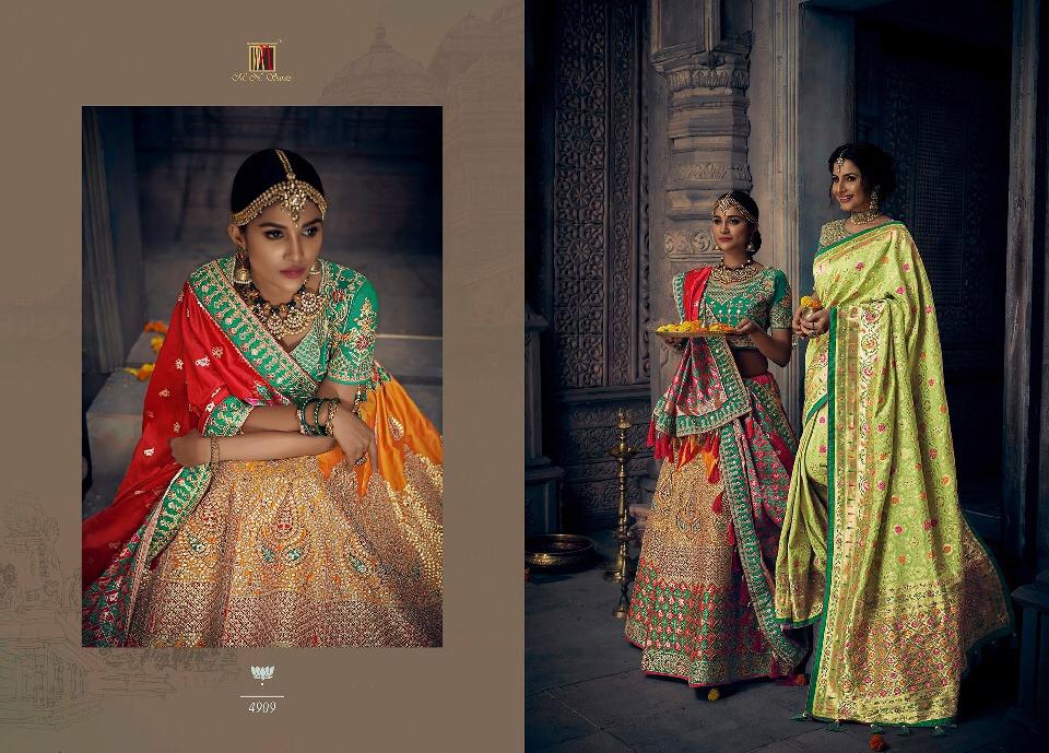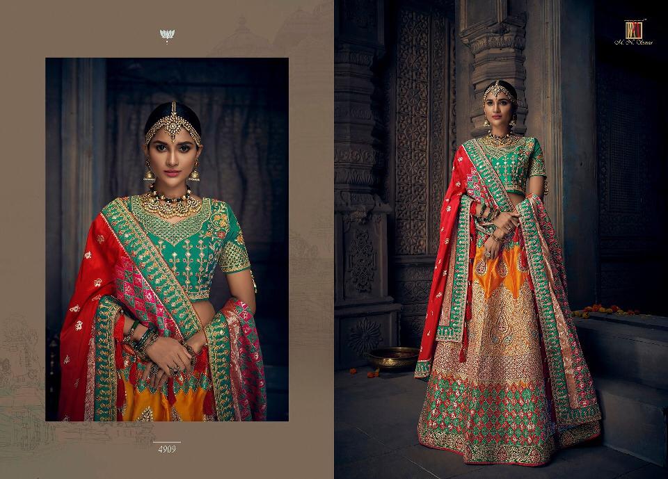 Brand - M. N. Series -4901 to 4915. Book your order now * New catlog * Singles and multipal avlbl Book now Saree gst 5% Lehenga gst 12% |