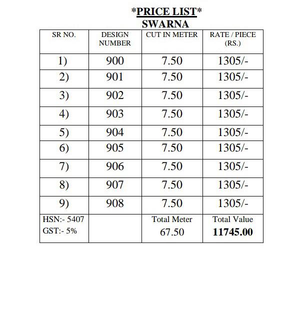 Buy Online Swarna By Bela Series 900 To 908 Designer Party Wear Suits Wholesale Supplier Gujarat 9 Pcs of Full Catalogue at Wholesale Price. Looking for Swarna By Bela Series 900 To 908 Designer Party Wear Suits Wholesale Supplier Gujarat Full Catalouge at Best Price? Buy Now Swarna By Bela Series 900 To 908 Designer Party Wear Suits Wholesale Supplier Gujarat at Wholesale Rate of Rs 11745 with Total 9 Pcs from authroized dealer and supplier of BELA Brand. Cost of Each piece is just only Rs 1305 which is very low and affordable price to resale the product in your retail store ,This is Surat based Wholesale Supplier & Dealer of BELA Brand. Click on Brand name to Know more about BELA Brand's products.Call or Whatsapp on 9898838984 for booking or enquiry