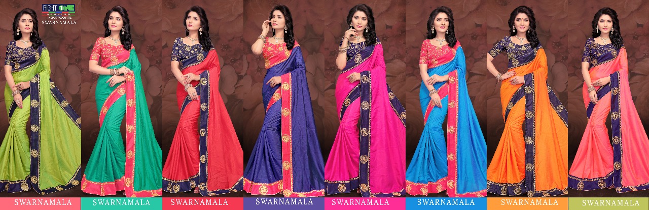 Buy Online Swarnamala By Right One Designer Party Wear Sarees Wholesale Supplier And Dealer Gujarat 8 Pcs of Full Catalogue at Wholesale Price. Looking for Swarnamala By Right One Designer Party Wear Sarees Wholesale Supplier And Dealer Gujarat Full Catalouge at Best Price? Buy Now Swarnamala By Right One Designer Party Wear Sarees Wholesale Supplier And Dealer Gujarat at Wholesale Rate of Rs 5800 with Total 8 Pcs from authroized dealer and supplier of Right one Brand. Cost of Each piece is just only Rs 725 which is very low and affordable price to resale the product in your retail store ,This is Surat based Wholesale Supplier & Dealer of Right one Brand. Click on Brand name to Know more about Right one Brand's products.Call or Whatsapp on 9898838984 for booking or enquiry