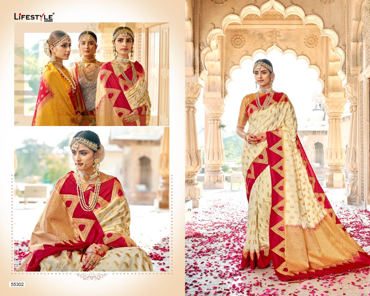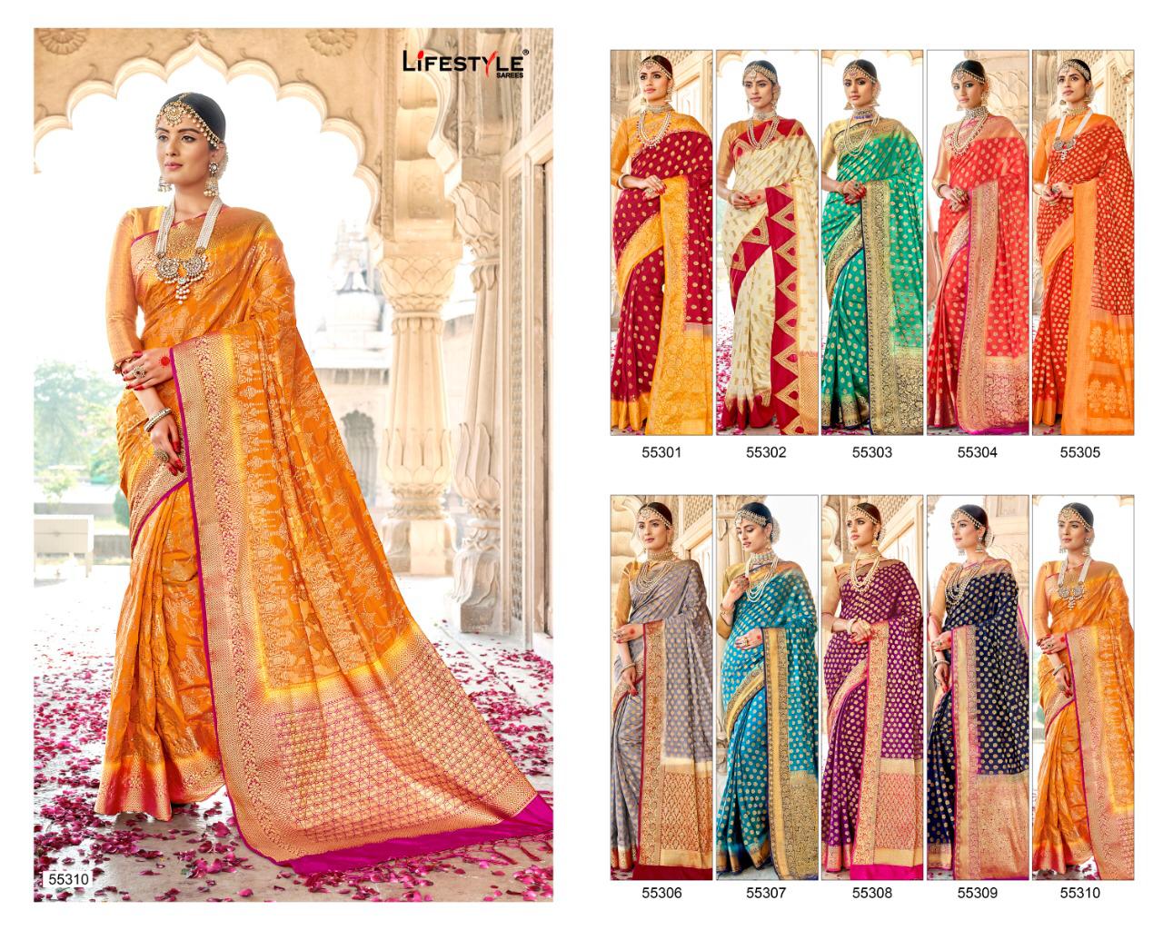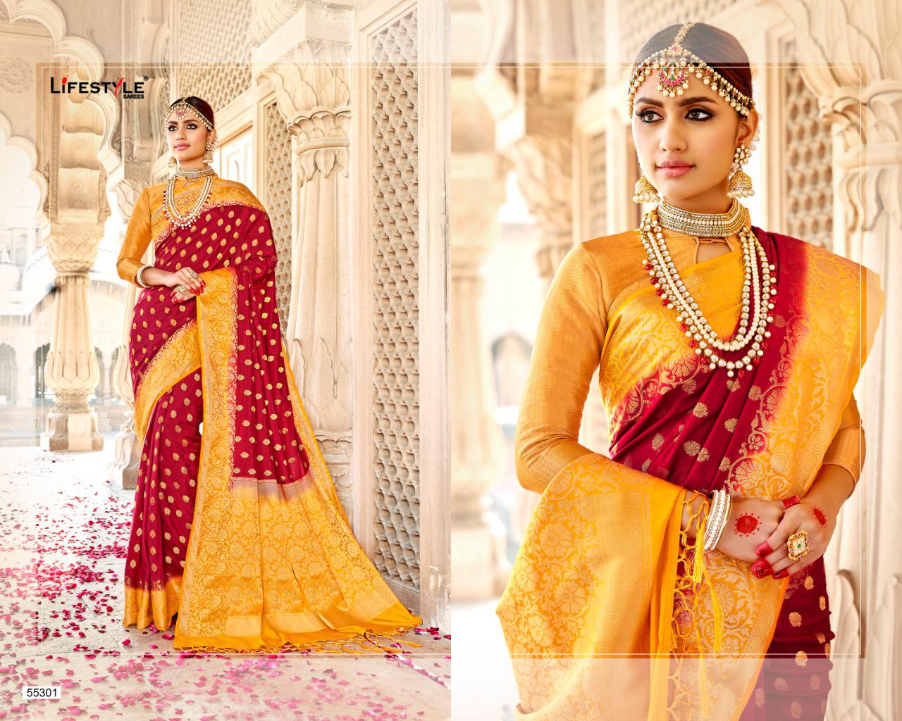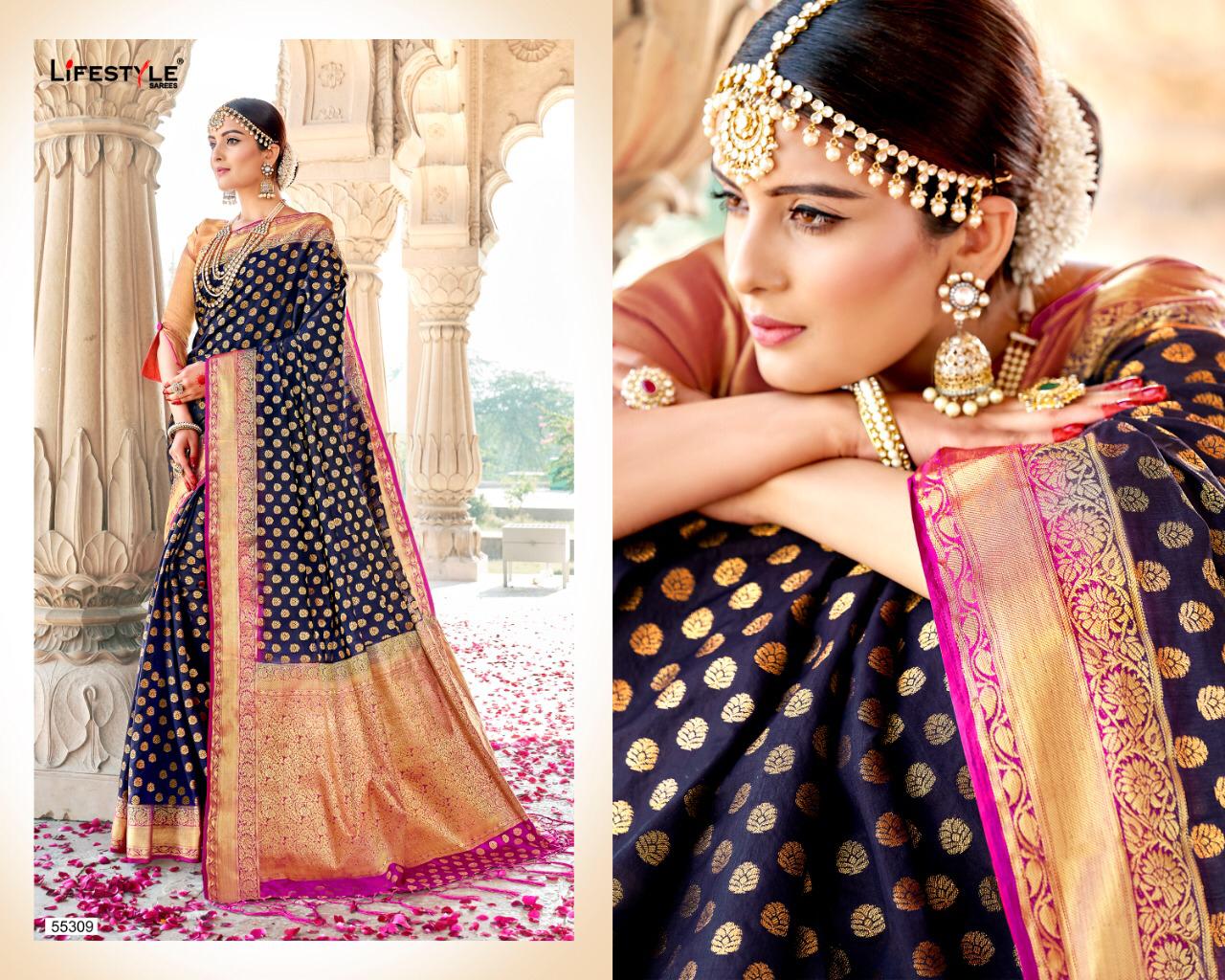 Buy Online Swarnpari By Lifestyle 55301 Series Fancy Weaving Handloom Silk Saree Collection Wholesaler Surat 10 Pcs of Full Catalogue at Wholesale Price. Looking for Swarnpari By Lifestyle 55301 Series Fancy Weaving Handloom Silk Saree Collection Wholesaler Surat Full Catalouge at Best Price? Buy Now Swarnpari By Lifestyle 55301 Series Fancy Weaving Handloom Silk Saree Collection Wholesaler Surat at Wholesale Rate of Rs 12250 with Total 10 Pcs from authroized dealer and supplier of LIFESTYLE Brand. Cost of Each piece is just only Rs 1225 which is very low and affordable price to resale the product in your retail store ,This is Surat based Wholesale Supplier & Dealer of LIFESTYLE Brand. Click on Brand name to Know more about LIFESTYLE Brand's products.Call or Whatsapp on 9898838984 for booking or enquiry