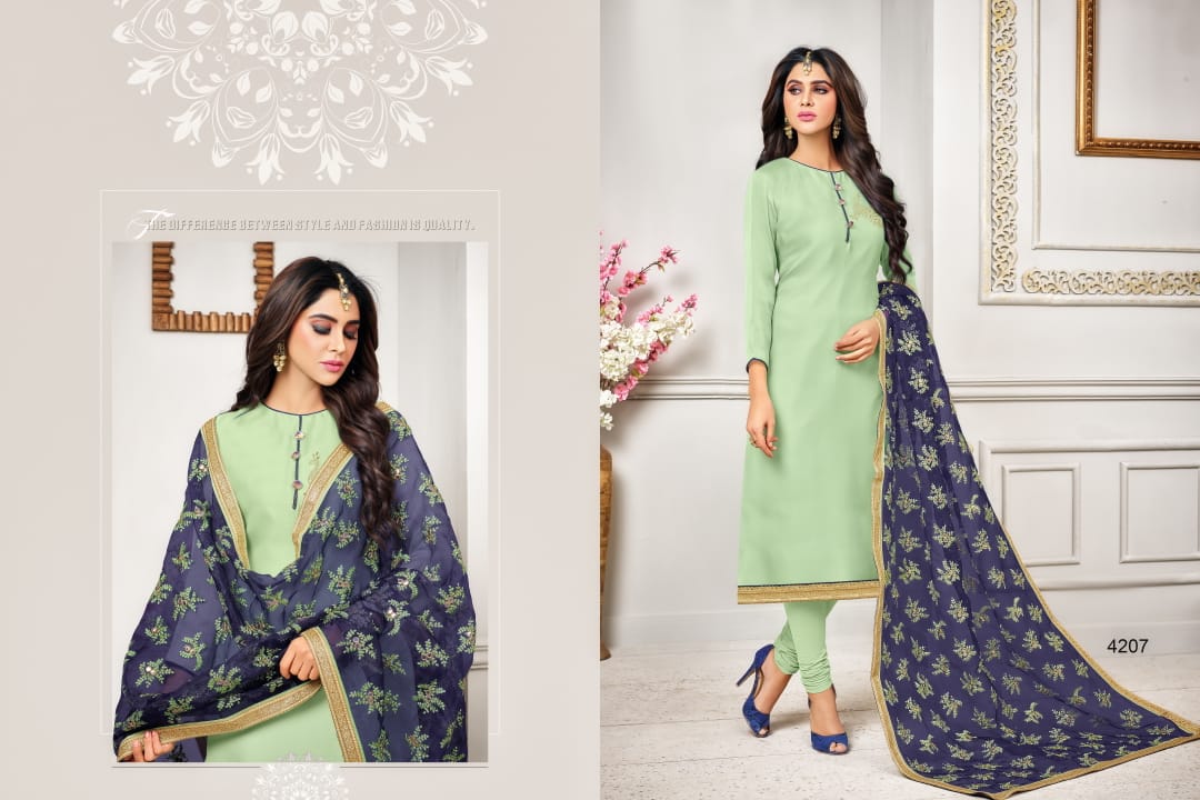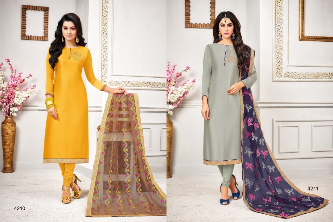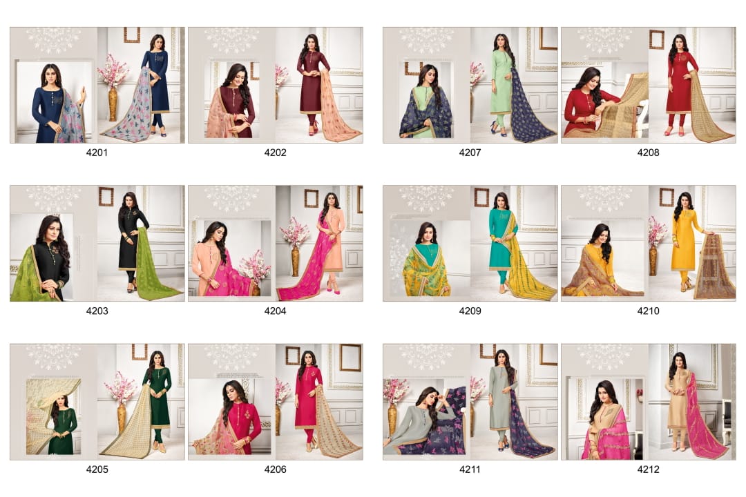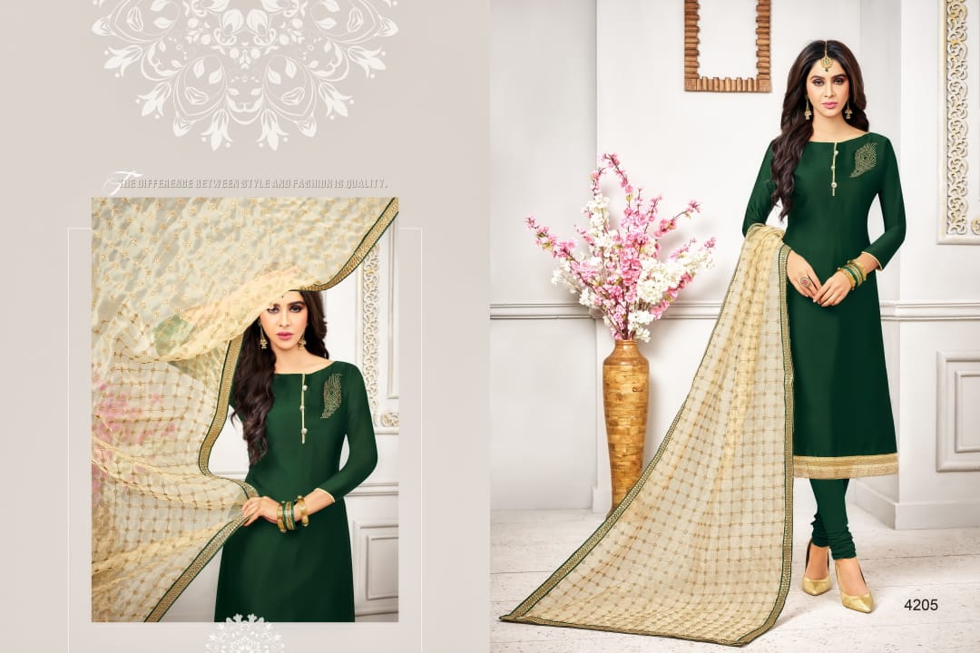 Buy Online Swarovski By Rr Fashion 4201 Series Fancy Satin Georgette Salwar Kameez Catlog Wholesale Dealer Surat 12 Pcs of Full Catalogue at Wholesale Price. Looking for Swarovski By Rr Fashion 4201 Series Fancy Satin Georgette Salwar Kameez Catlog Wholesale Dealer Surat Full Catalouge at Best Price? Buy Now Swarovski By Rr Fashion 4201 Series Fancy Satin Georgette Salwar Kameez Catlog Wholesale Dealer Surat at Wholesale Rate of Rs 7188 with Total 12 Pcs from authroized dealer and supplier of RR fashion Brand. Cost of Each piece is just only Rs 599 which is very low and affordable price to resale the product in your retail store ,This is Surat based Wholesale Supplier & Dealer of RR fashion Brand. Click on Brand name to Know more about RR fashion Brand's products.Call or Whatsapp on 9898838984 for booking or enquiry