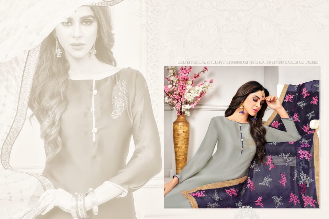 _R R FASHION_ *SWAROVSKI* TOP:- SATIN GEORGETTE ( WITH INNER SANTOON) BOTTOM :- SANTOON DUPATTA :- ORGANZA (HEAVY EMBROIDERY) RATE :- 599/- LIMITED STOCK |