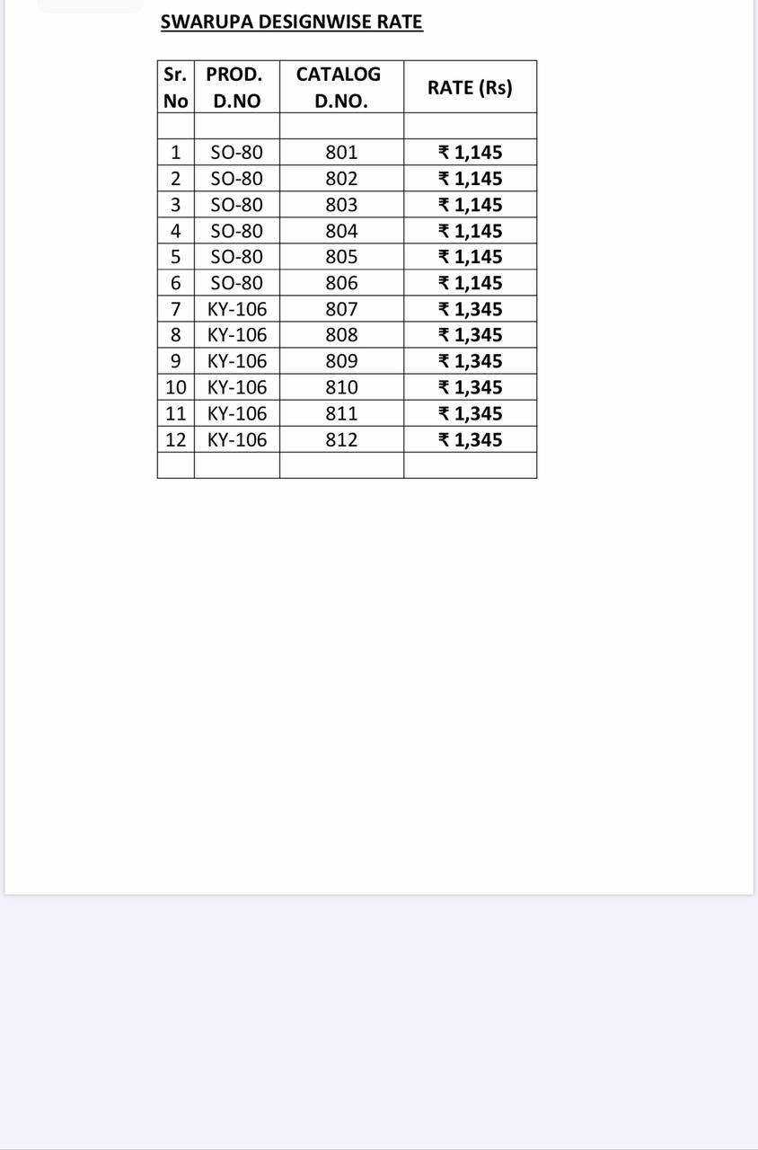 Buy Online Swarupa Series 801 To 812 By Shruti Single Available Manufacturer Traders Surat 12 Pcs of Full Catalogue at Wholesale Price. Looking for Swarupa Series 801 To 812 By Shruti Single Available Manufacturer Traders Surat Full Catalouge at Best Price? Buy Now Swarupa Series 801 To 812 By Shruti Single Available Manufacturer Traders Surat at Wholesale Rate of Rs 0 with Total 12 Pcs from authroized dealer and supplier of Brand. Cost of Each piece is just only Rs 0 which is very low and affordable price to resale the product in your retail store ,This is Surat based Wholesale Supplier & Dealer of Brand. Click on Brand name to Know more about Brand's products.Call or Whatsapp on 9898838984 for booking or enquiry