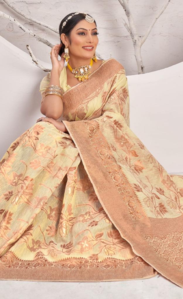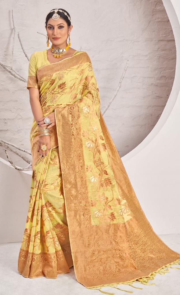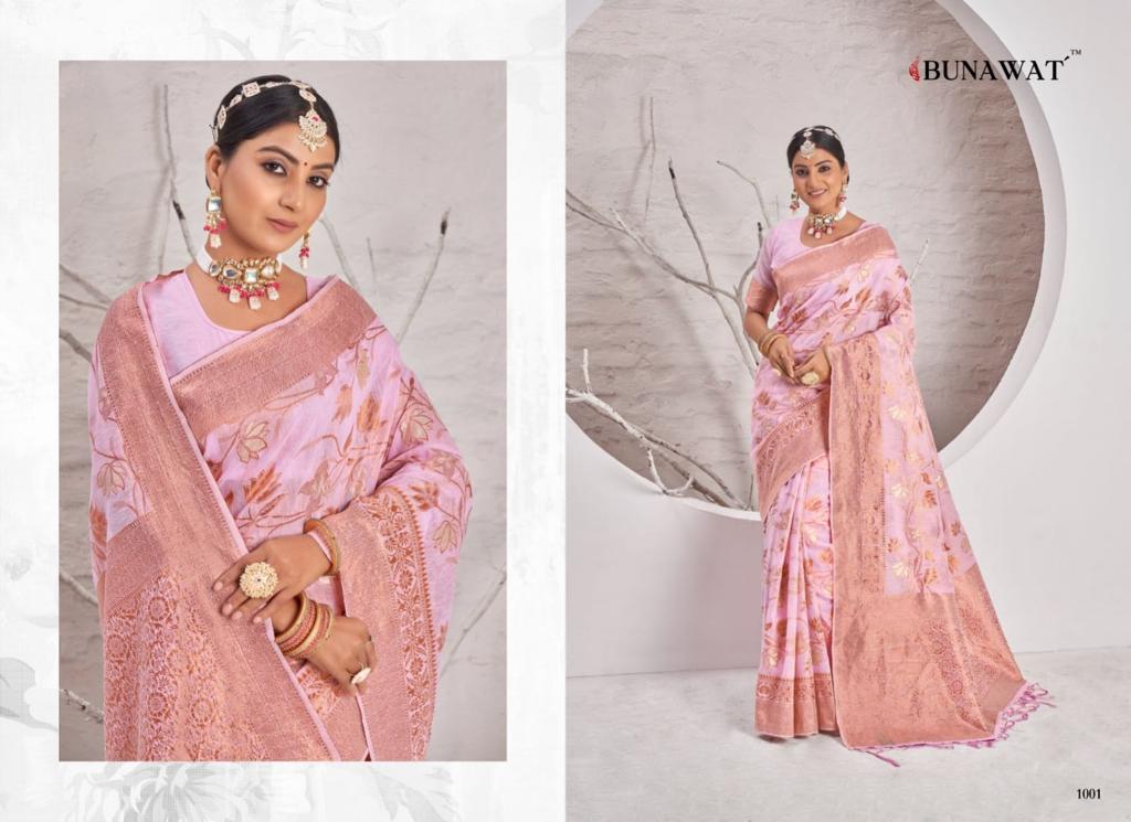 ? *New Catalog Exclusively Launching From Our Newly Launched Brand:- BUNAWAT* ? Catalog Name: *SWATI* Brand: *BUNAWAT* Product Type: Saree Fabric: Cotton Price Per Piece: 999/- Gst Extra: 5% SINGLE AVAILABLE Work: Woven Work Other Specifications: Tassels on Pallu Saree Mtr: 5.5 Mtr Blouse: 0.8 Mtr Total Pcs: 6 _*Book your orders now*_ 100+Singles |