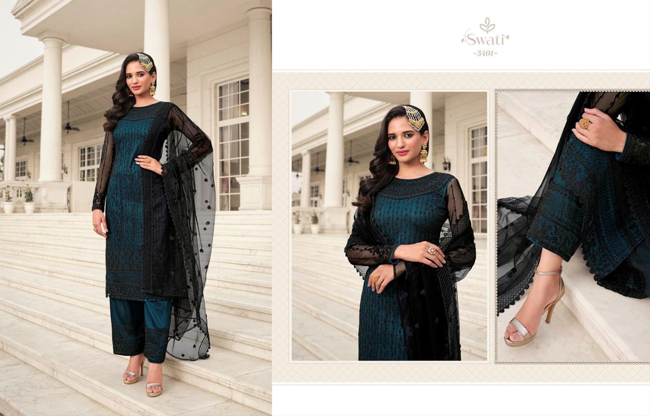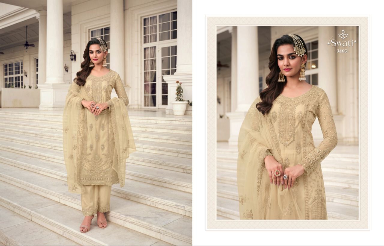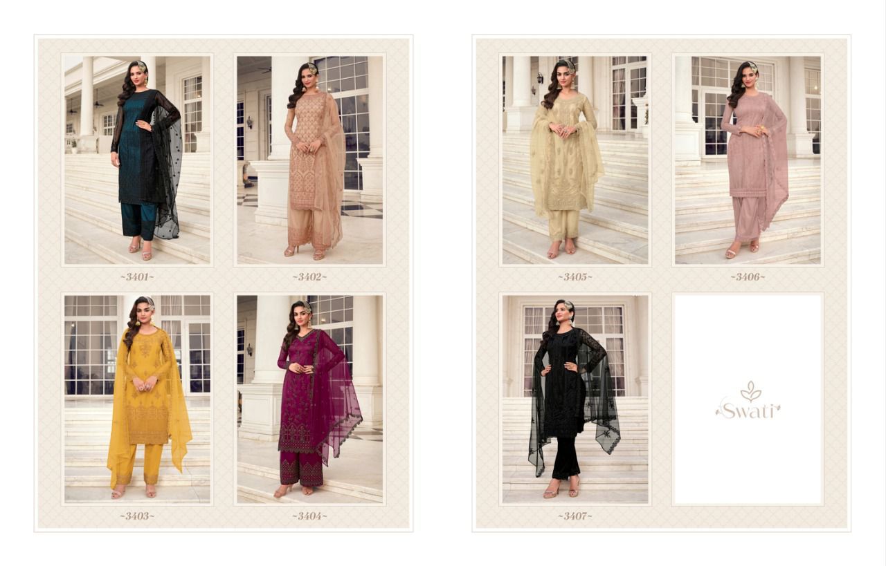 Swati Series 3401 To 3407 By Swagat Heavy Net Work Suit Designer Party Wear Collection Single And Set Stockiest And Supplier From Surat Gujarat