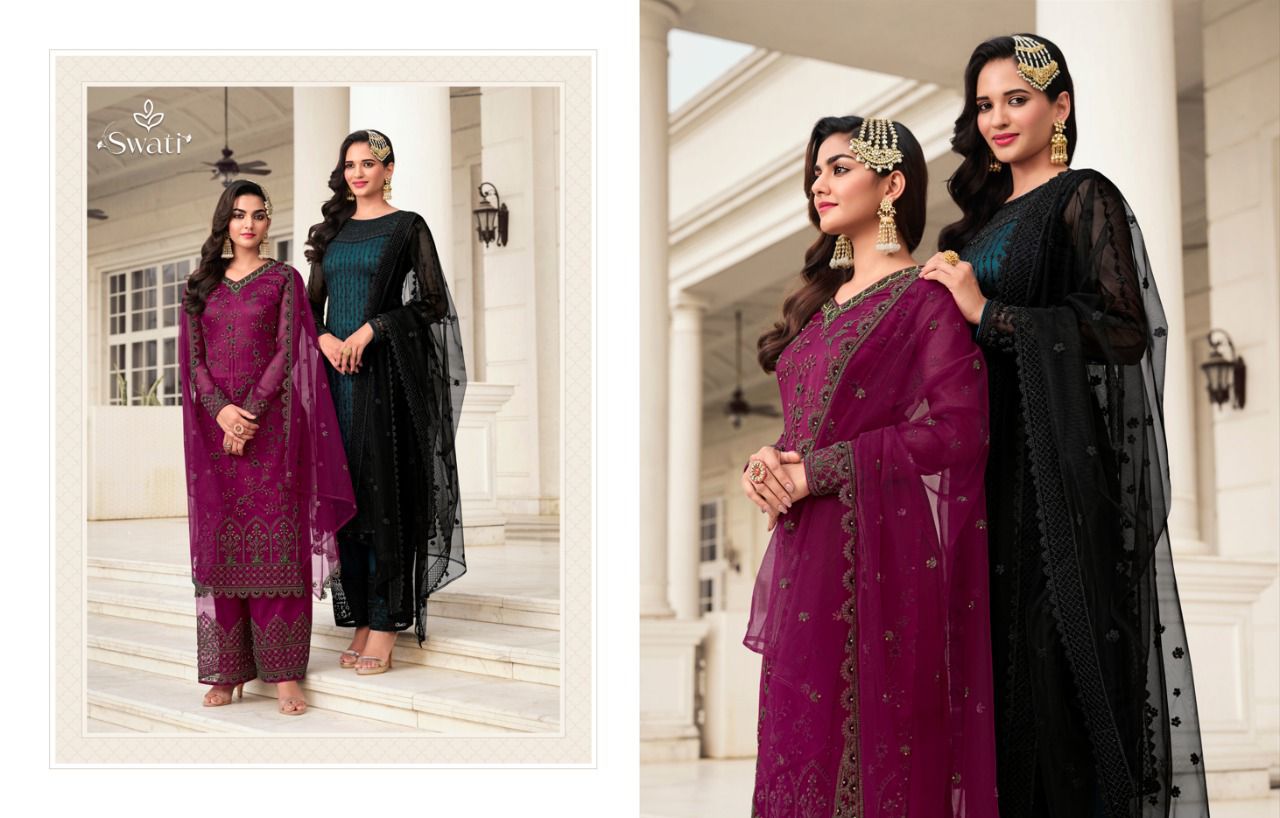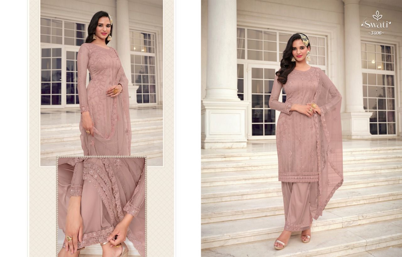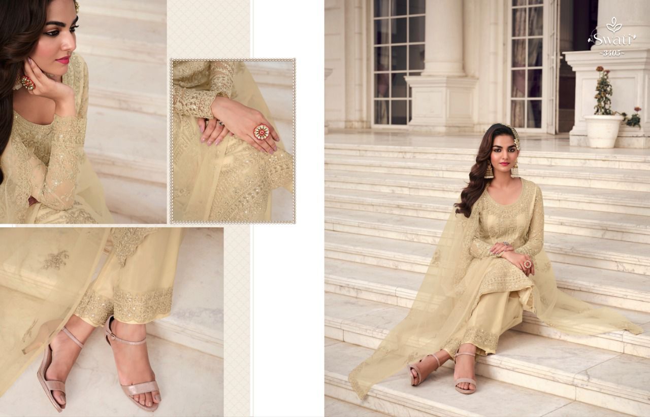 Swati Series 3401 To 3407 By Swagat Heavy Net Work Suit Designer Party Wear Collection Single And Set Stockiest And Supplier From Surat Gujarat