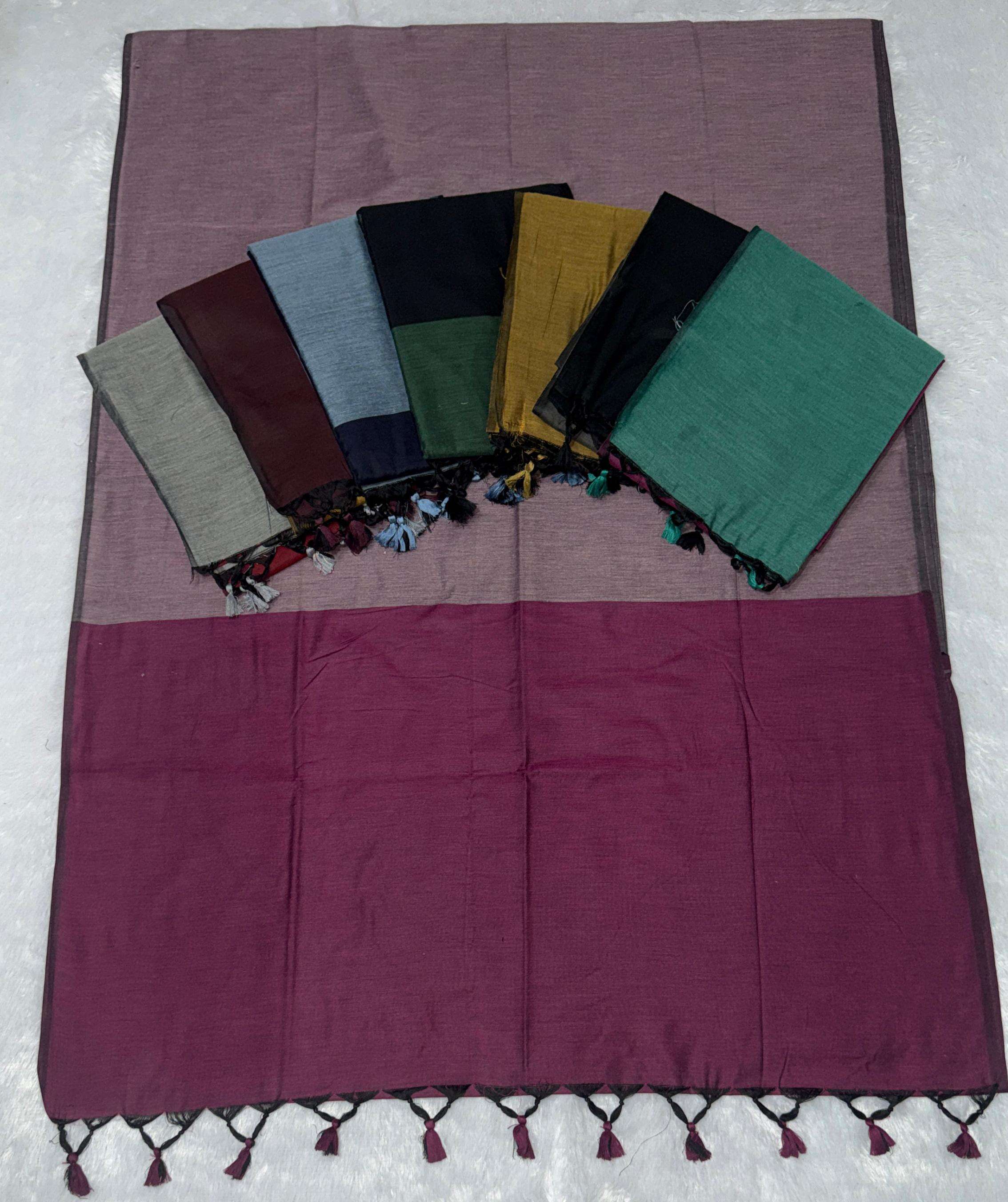 *Saree Fabric - Mal Cotton Contrast Pallu & Fancy Tassels*