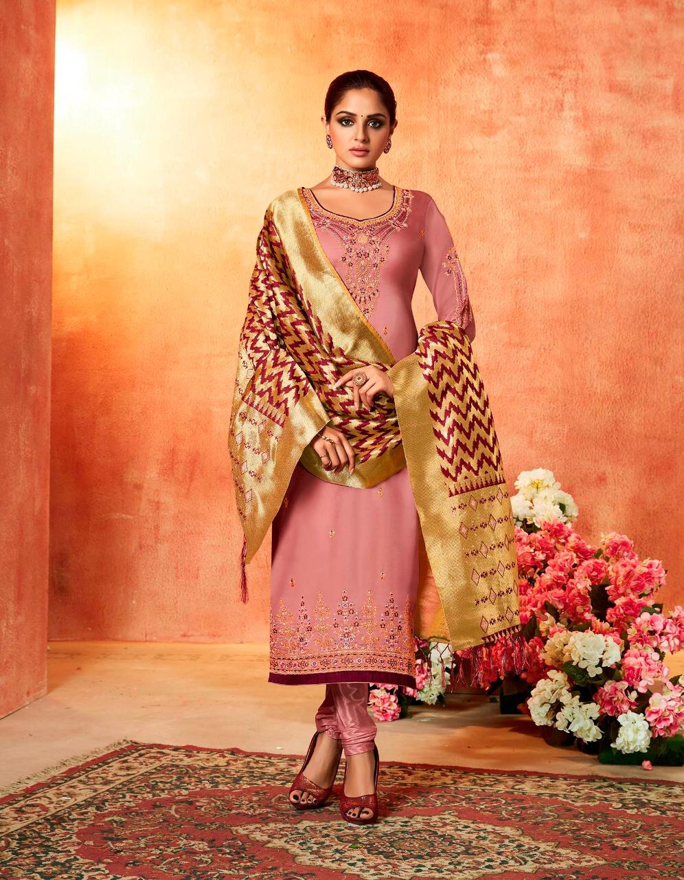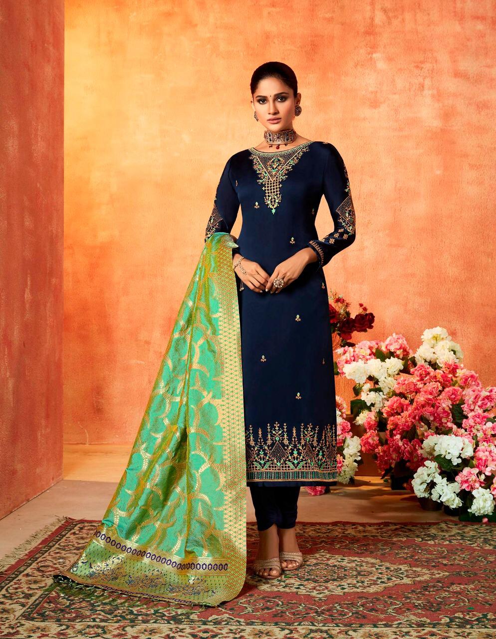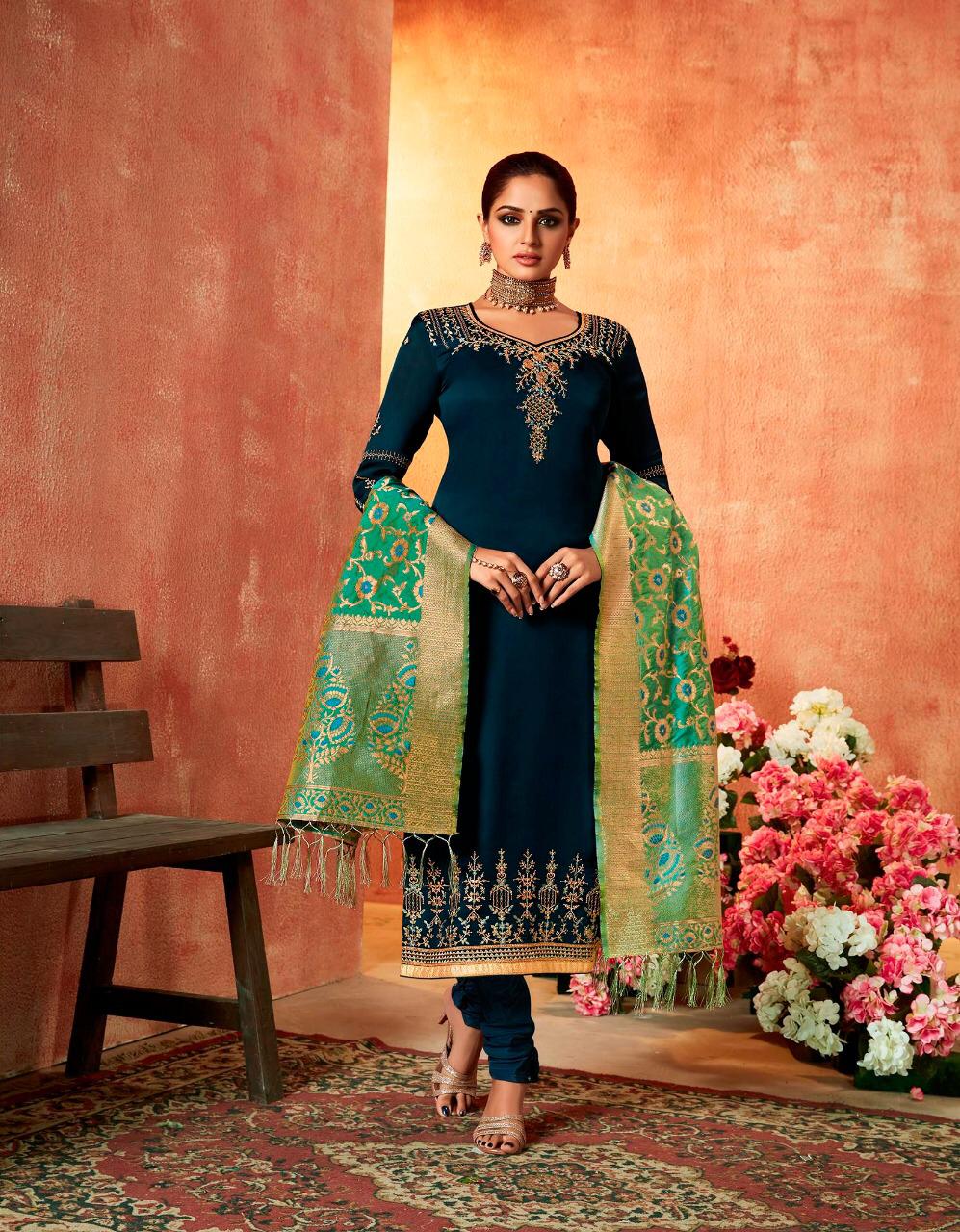 ? *Kessi Fabrics Pvt. Ltd.* has launched _Catalog name_ : *Swayamvar* ? _Fabric Details_ ? ?Top :- Satin Georgette with Embroidery & Diamond Work ?Bottom:- Dull Shantoon ?Dupatta:- Banarasi Silk ?Total Design :- 8 ? Rate - 1299/- Set To Set. GST 5 Percent Extra ?Dispatching 5 to 6 days later ?Booking started from now... ?Order yours soon.... |