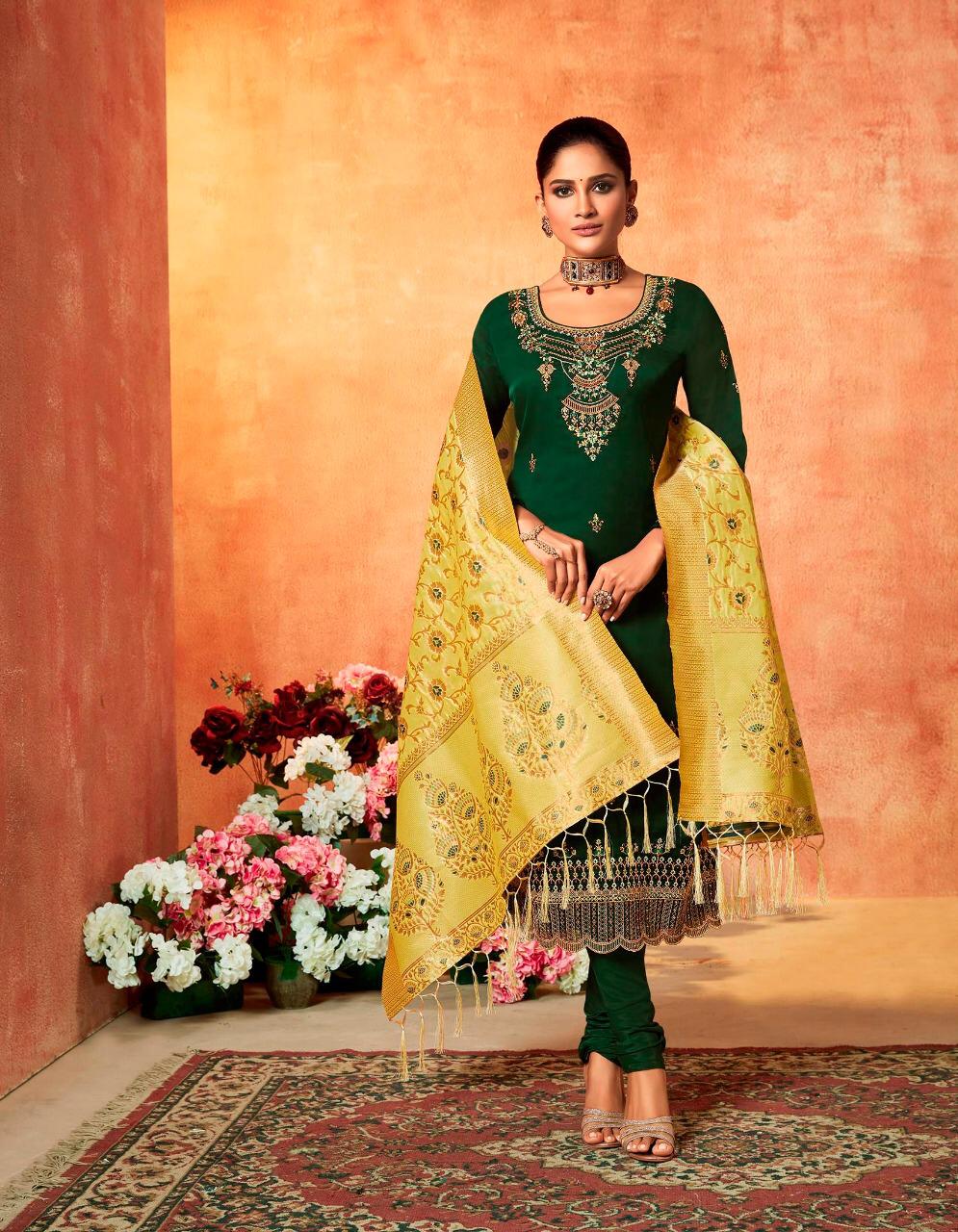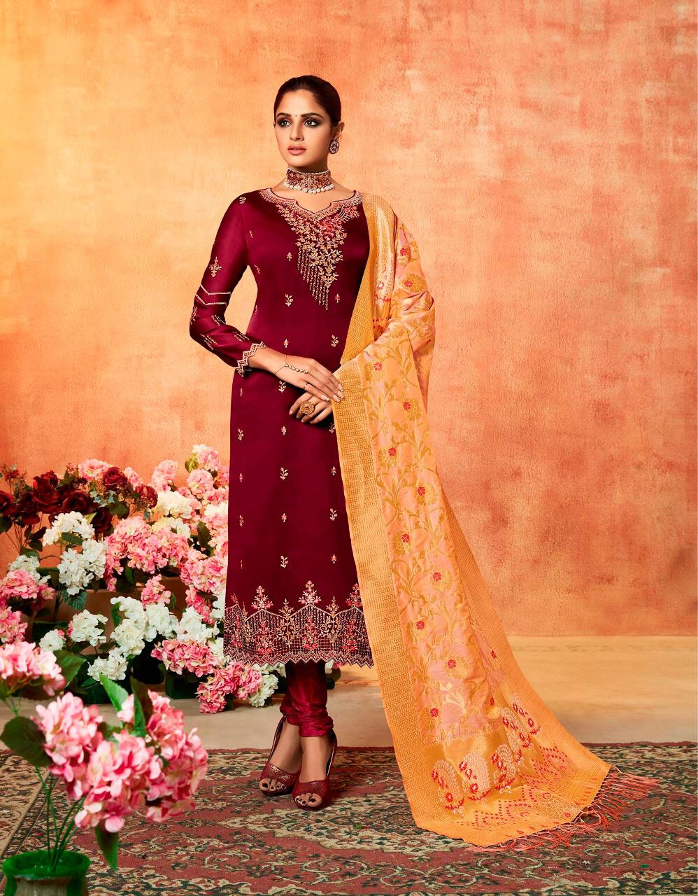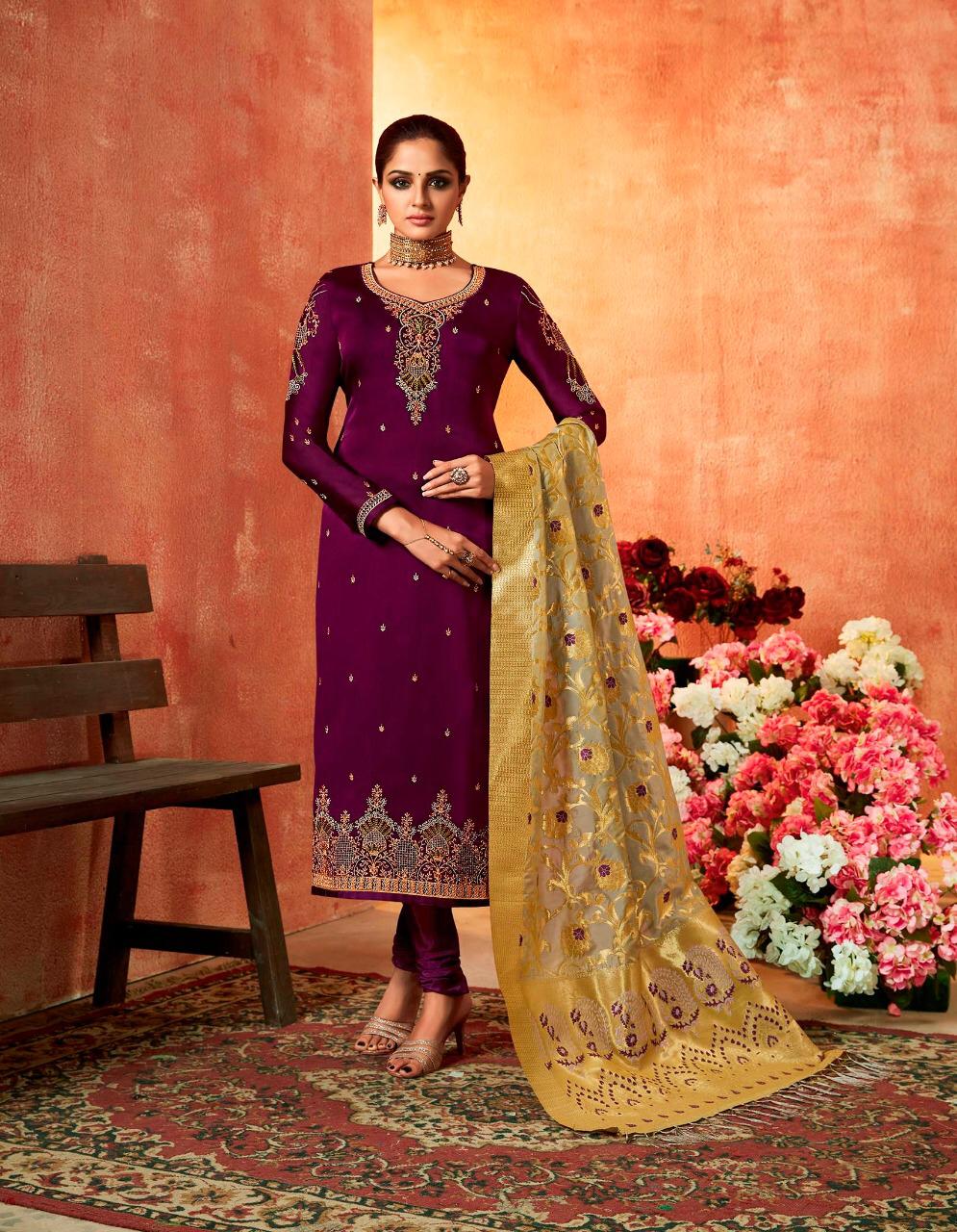 ? *Kessi Fabrics Pvt. Ltd.* has launched _Catalog name_ : *Swayamvar* ? _Fabric Details_ ? ?Top :- Satin Georgette with Embroidery & Diamond Work ?Bottom:- Dull Shantoon ?Dupatta:- Banarasi Silk ?Total Design :- 8 ? Rate - 1299/- Set To Set. GST 5 Percent Extra ?Dispatching 5 to 6 days later ?Booking started from now... ?Order yours soon.... |