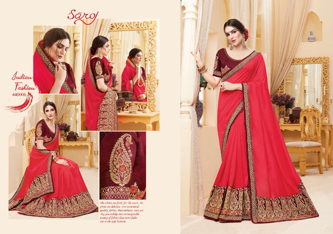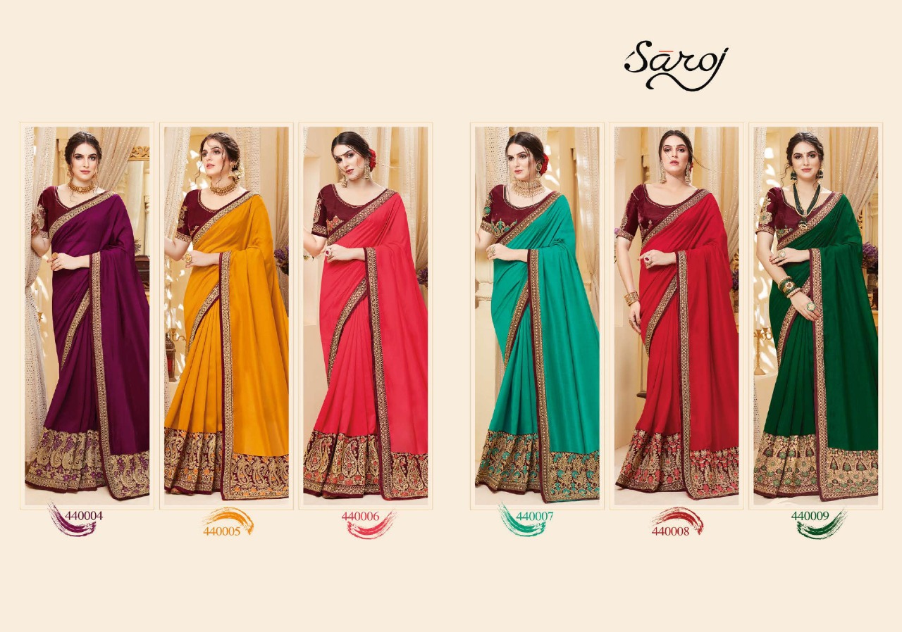 Buy Online Swayamwar By Saroj Silk Sarees Wholesale Supplier And Dealer Surat 6 Pcs of Full Catalogue at Wholesale Price. Looking for Swayamwar By Saroj Silk Sarees Wholesale Supplier And Dealer Surat Full Catalouge at Best Price? Buy Now Swayamwar By Saroj Silk Sarees Wholesale Supplier And Dealer Surat at Wholesale Rate of Rs 9060 with Total 6 Pcs from authroized dealer and supplier of SAROJ SAREE Brand. Cost of Each piece is just only Rs 1510 which is very low and affordable price to resale the product in your retail store ,This is Surat based Wholesale Supplier & Dealer of SAROJ SAREE Brand. Click on Brand name to Know more about SAROJ SAREE Brand's products.Call or Whatsapp on 9898838984 for booking or enquiry