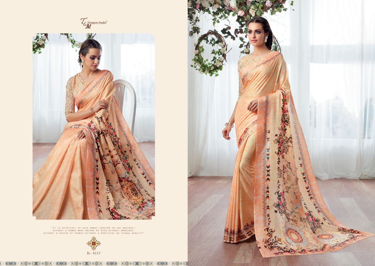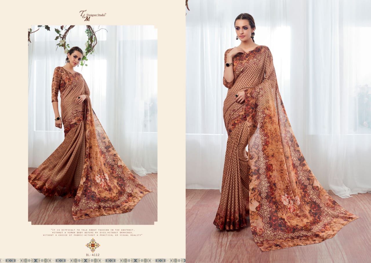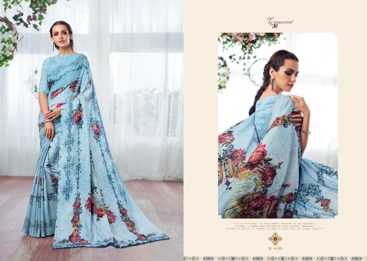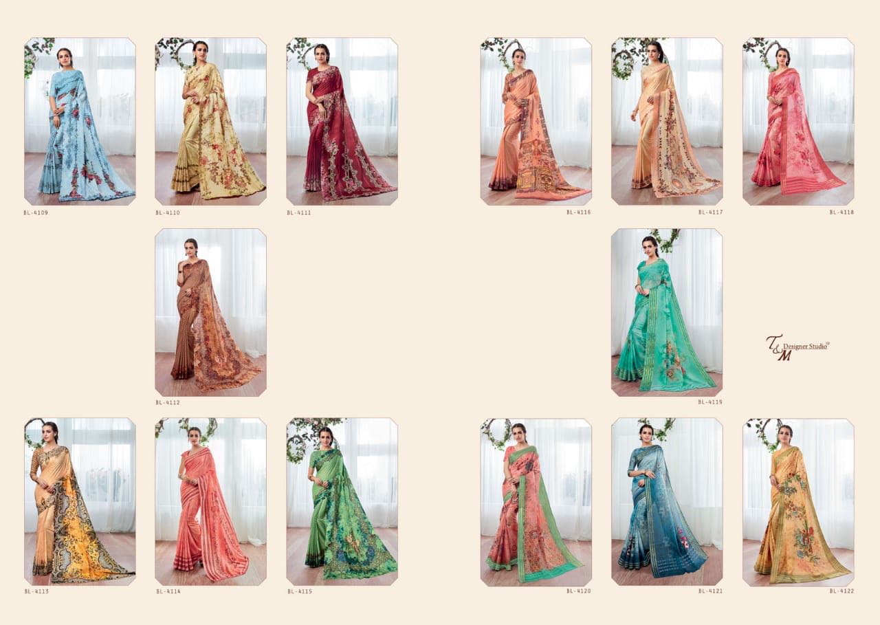 T And M Saree Blossom 4109 Series Deaigner Printed Saree Catlog Wholesale Dealer And Supplier Surat