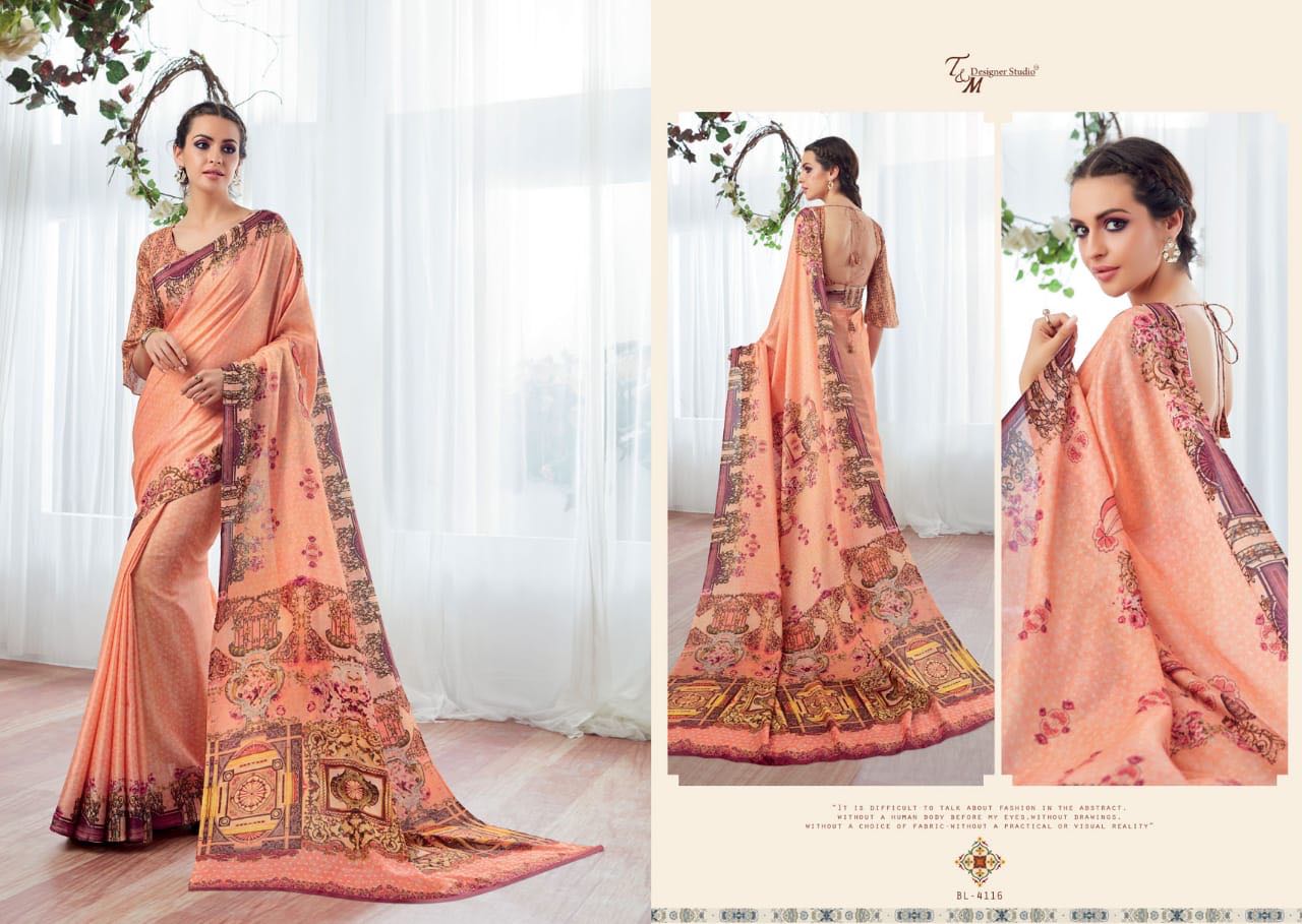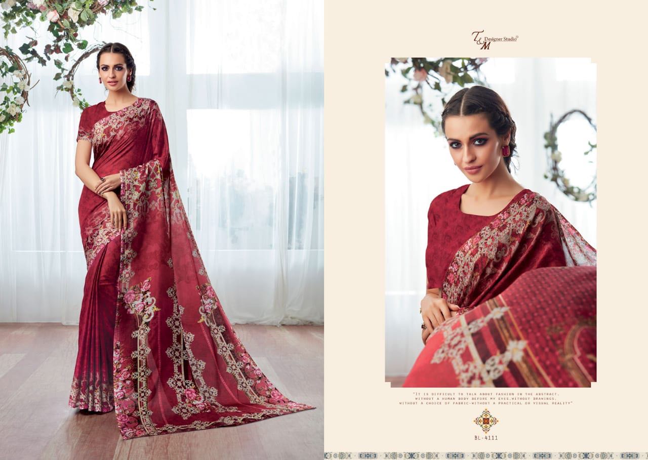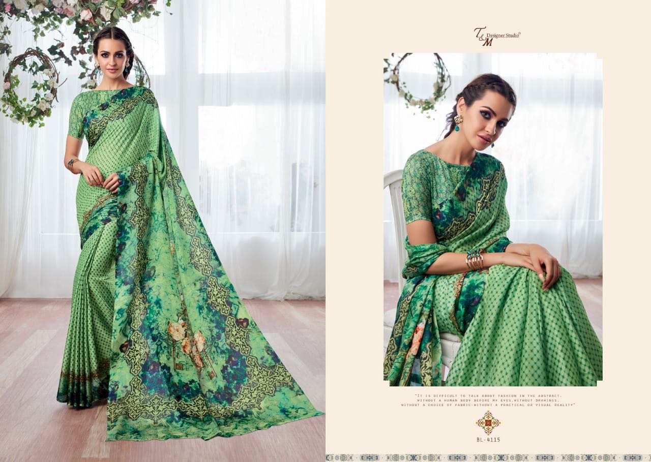 T And M Saree Blossom 4109 Series Deaigner Printed Saree Catlog Wholesale Dealer And Supplier Surat