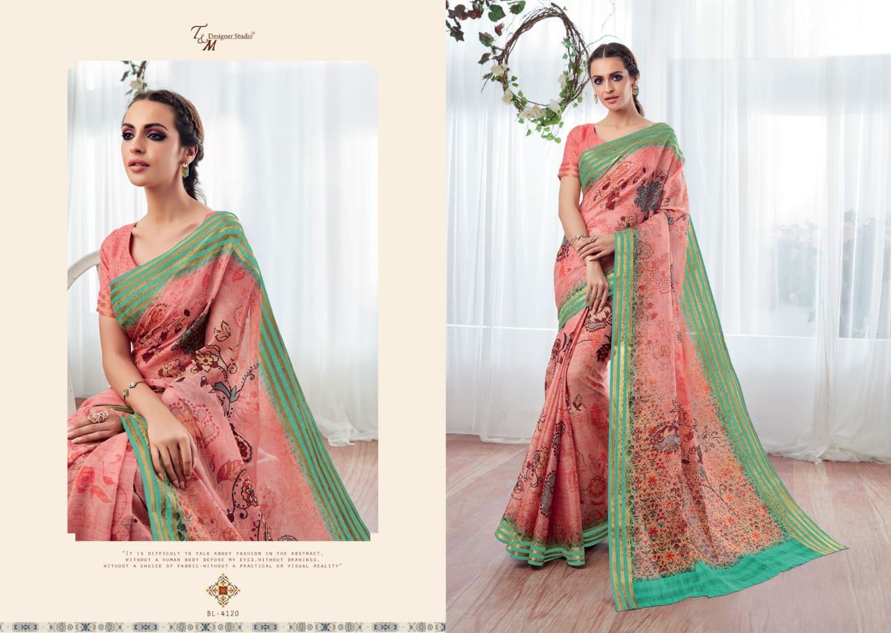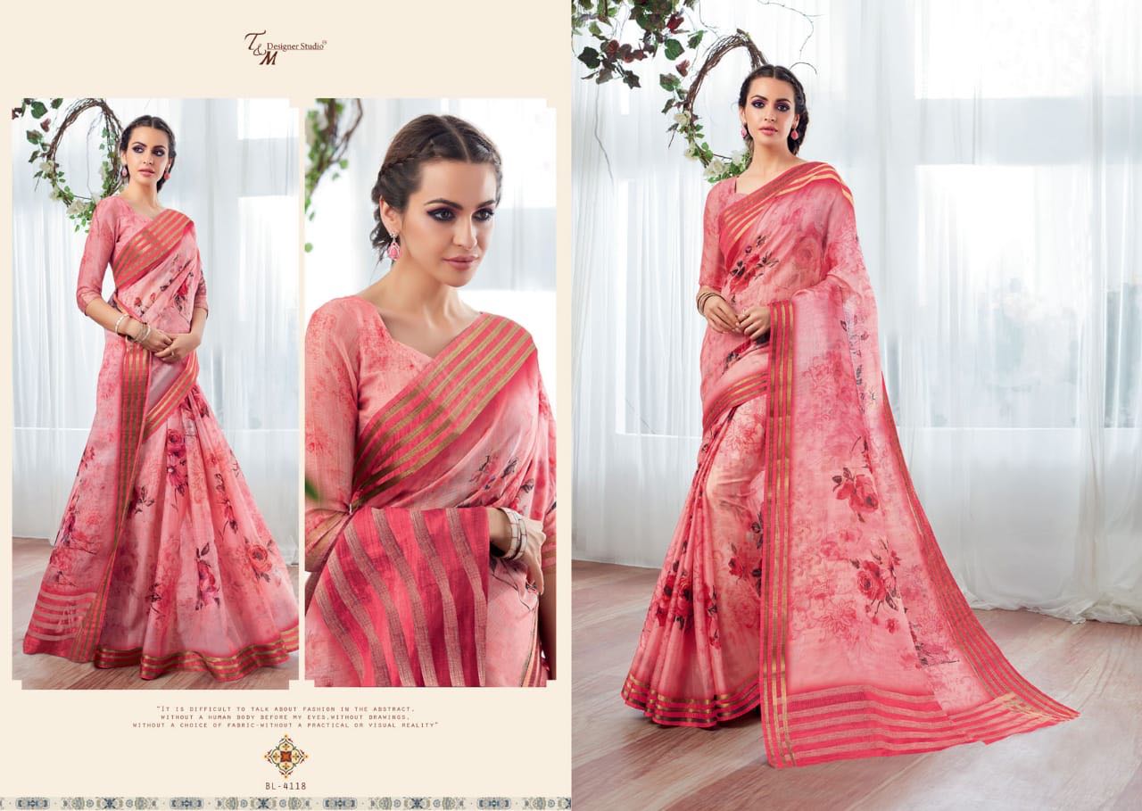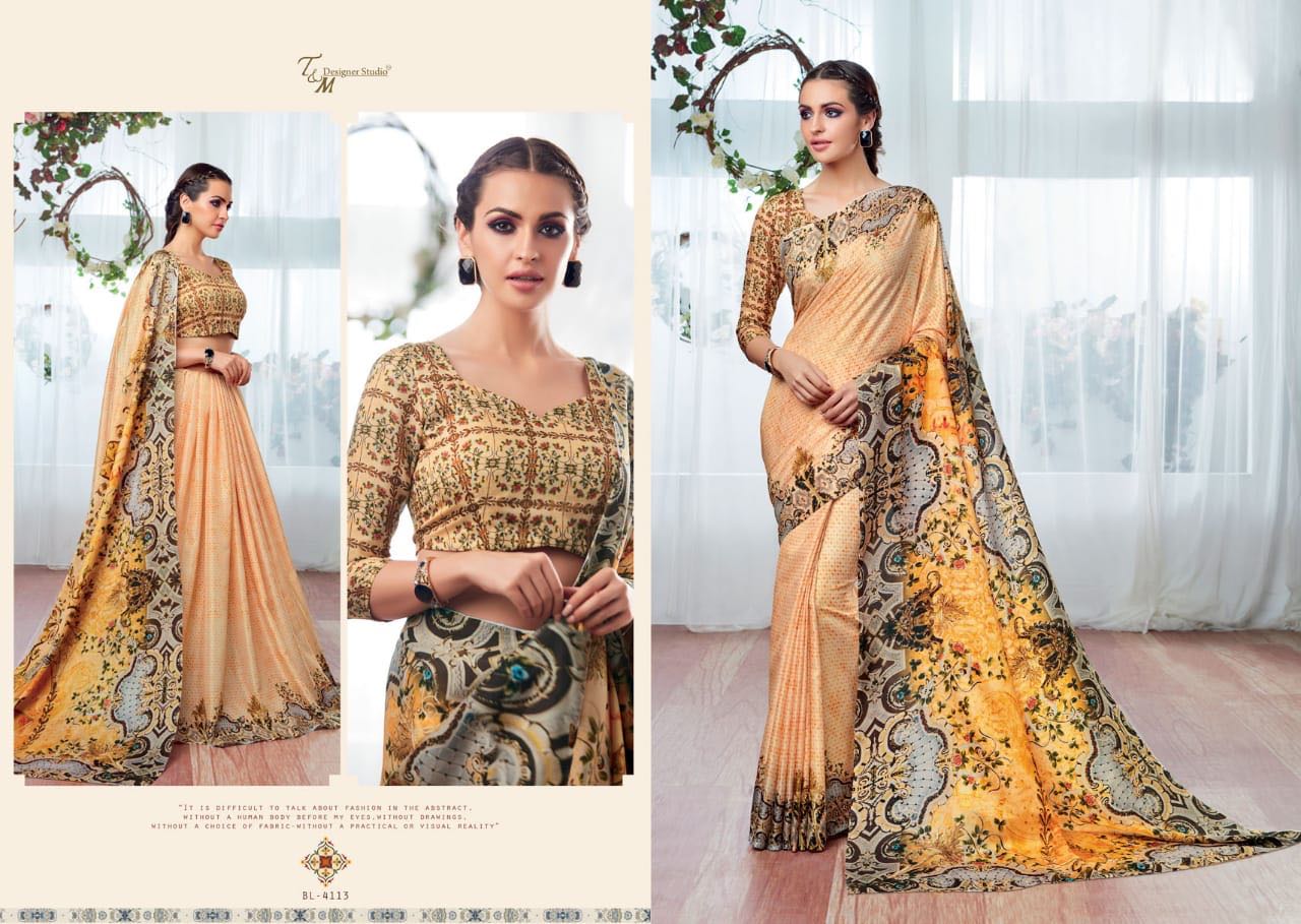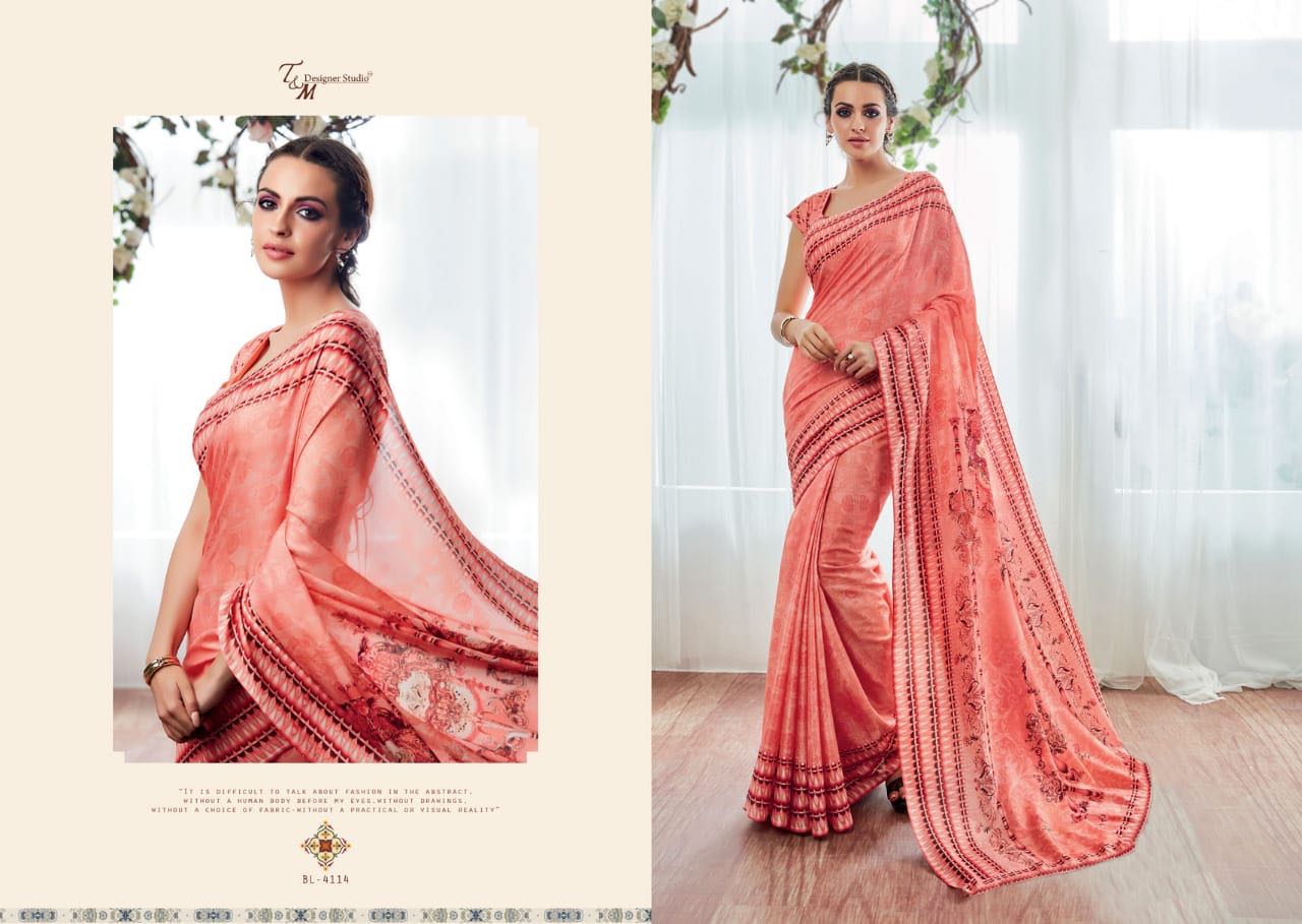 T And M Saree Blossom 4109 Series Deaigner Printed Saree Catlog Wholesale Dealer And Supplier Surat