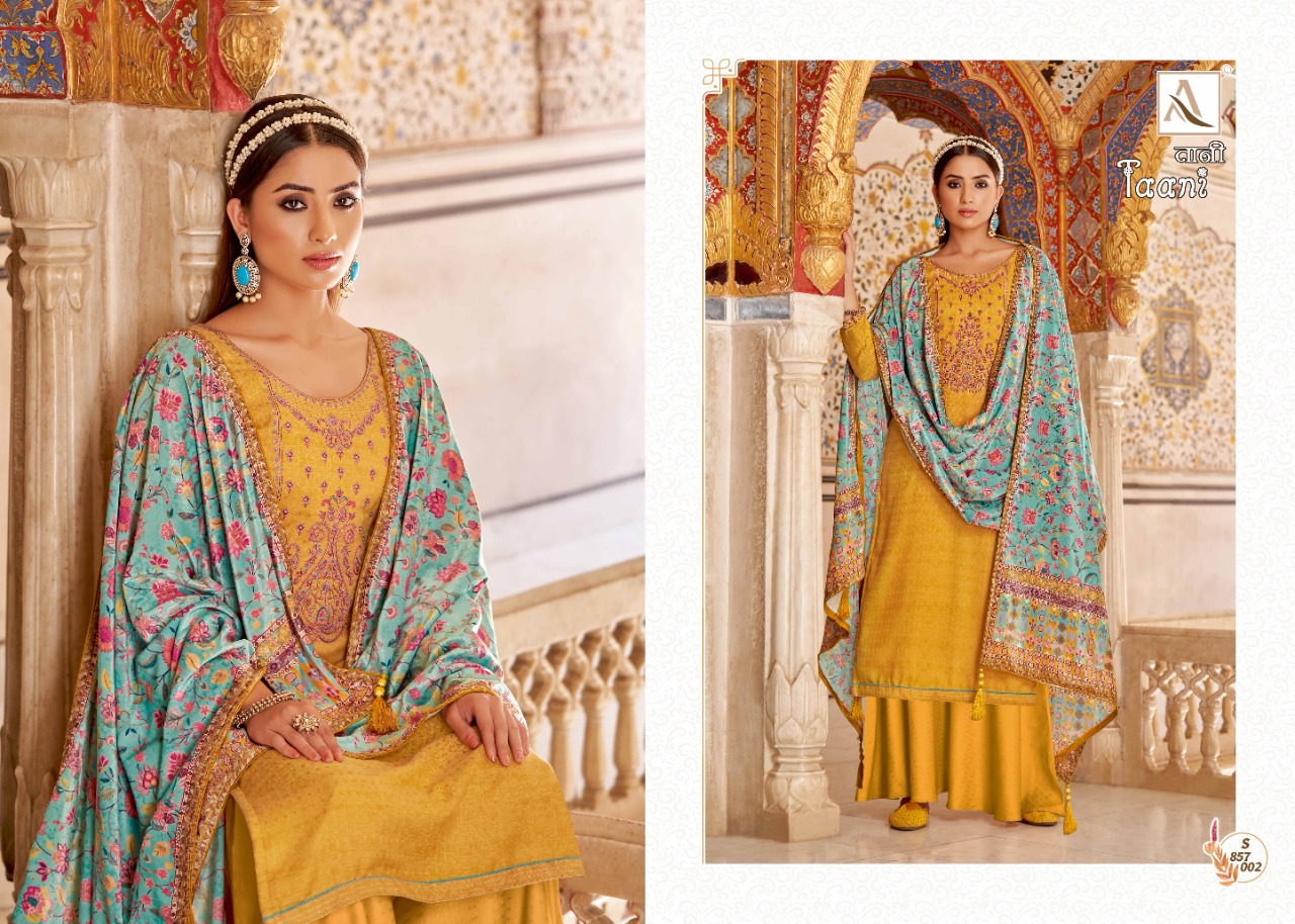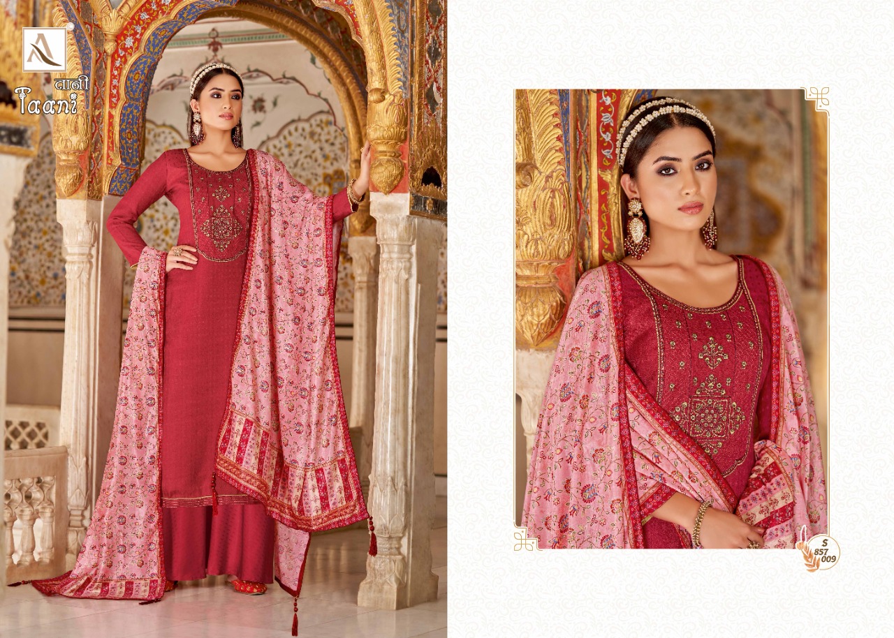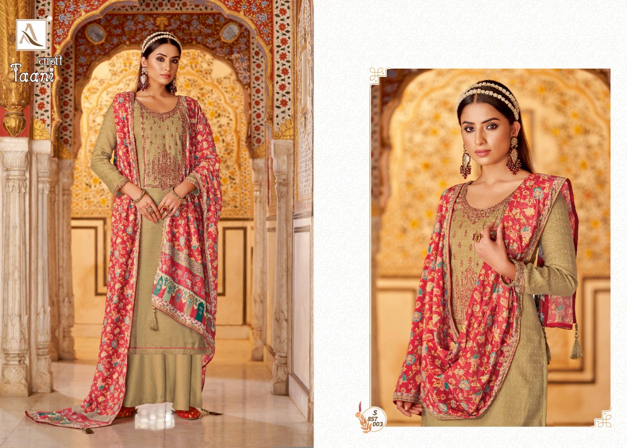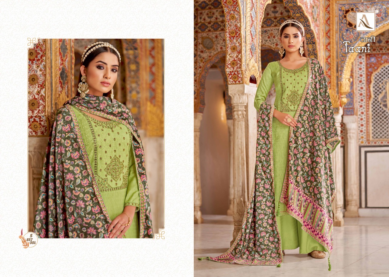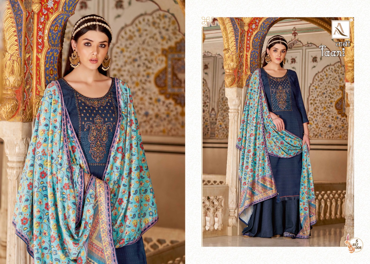 Buy Online Taani By Alok Suit Wholesale Supplier Traders In Surat 10 Pcs of Full Catalogue at Wholesale Price. Looking for Taani By Alok Suit Wholesale Supplier Traders In Surat Full Catalouge at Best Price? Buy Now Taani By Alok Suit Wholesale Supplier Traders In Surat at Wholesale Rate of Rs 7990 with Total 10 Pcs from authroized dealer and supplier of Brand. Cost of Each piece is just only Rs 799 which is very low and affordable price to resale the product in your retail store ,This is Surat based Wholesale Supplier & Dealer of Brand. Click on Brand name to Know more about Brand's products.Call or Whatsapp on 9898838984 for booking or enquiry