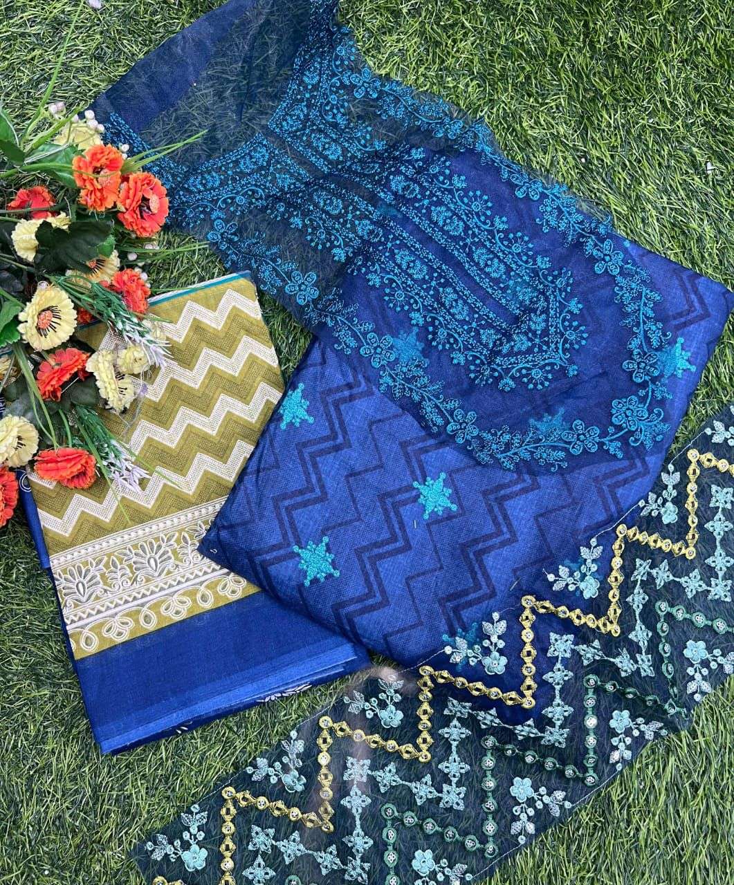 Top: Pure Cotton Print with heavy embroidery (Two patches) Bottam: cotton